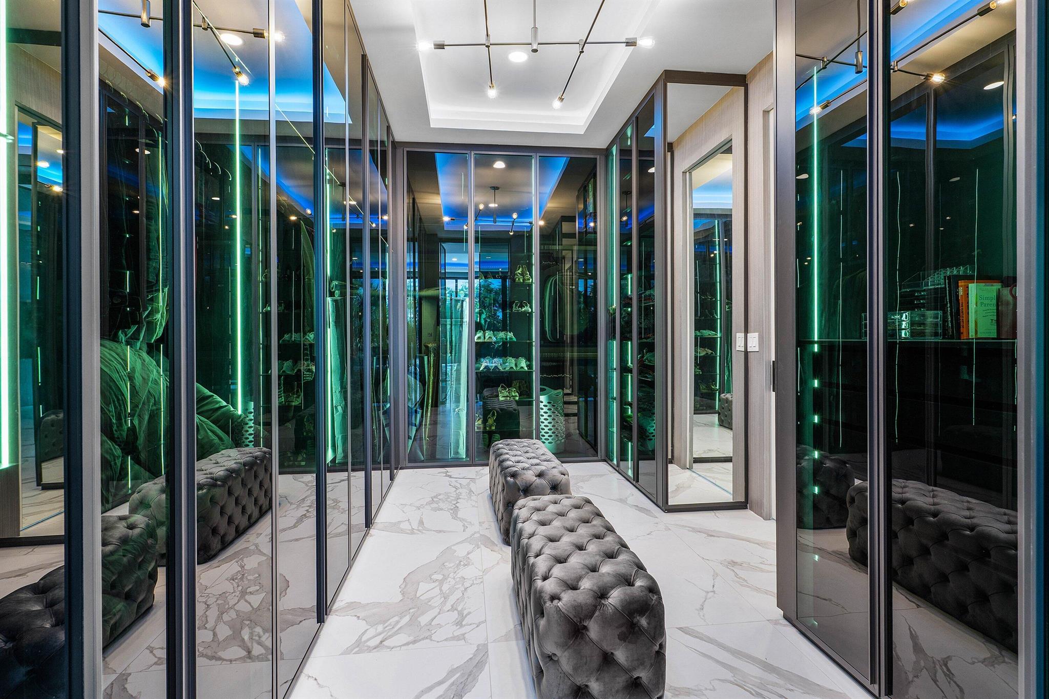 Built in 2023 by Primo Construction, this striking three-story modern estate in Boca Villas offers 6 bedrooms, office, 6.1 baths, and 4,916 sq. ft. of exceptional design and craftsmanship. Constructed entirely of concrete on every level with no wood, the home features porcelain flooring, 24-foot ceilings, and floor-to-ceiling glass walls.The chef's kitchen showcases white lacquered cabinetry, Wolf 60'' range with double ovens, Sub-Zero refrigerator and freezer, a commercial exhaust system, and massive walk-in pantry. A glass elevator, custom 600-piece hand-blown glass installation, and glass railings elevate the interiors. Full house generator, Smart-home technology includes Leviton & Home Assistant integration, Ubiquity Wi-Fi, and five Mitsubishi ultra-quiet commercial A/C zone