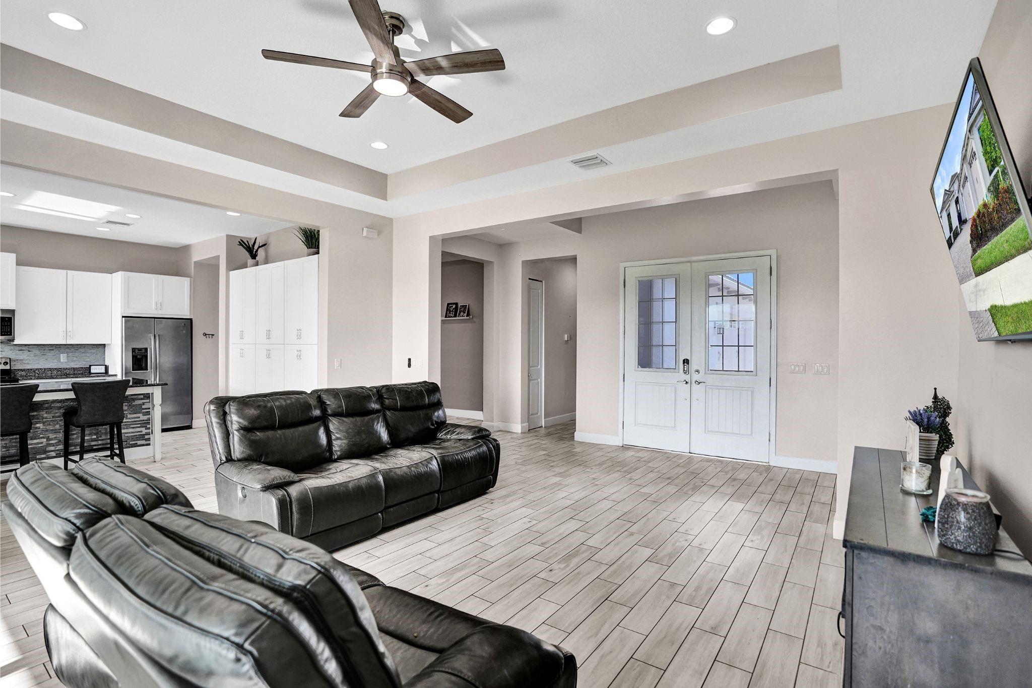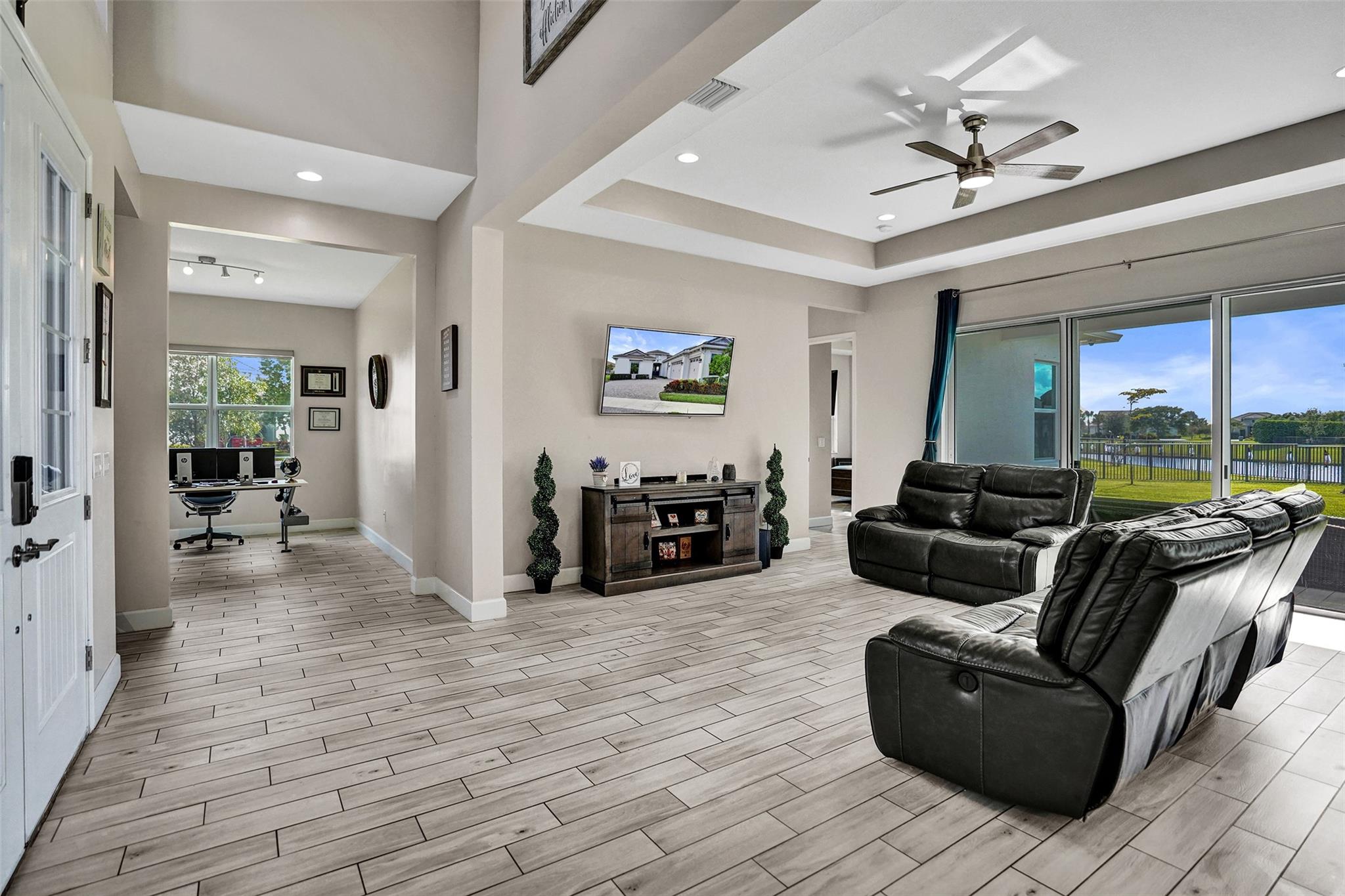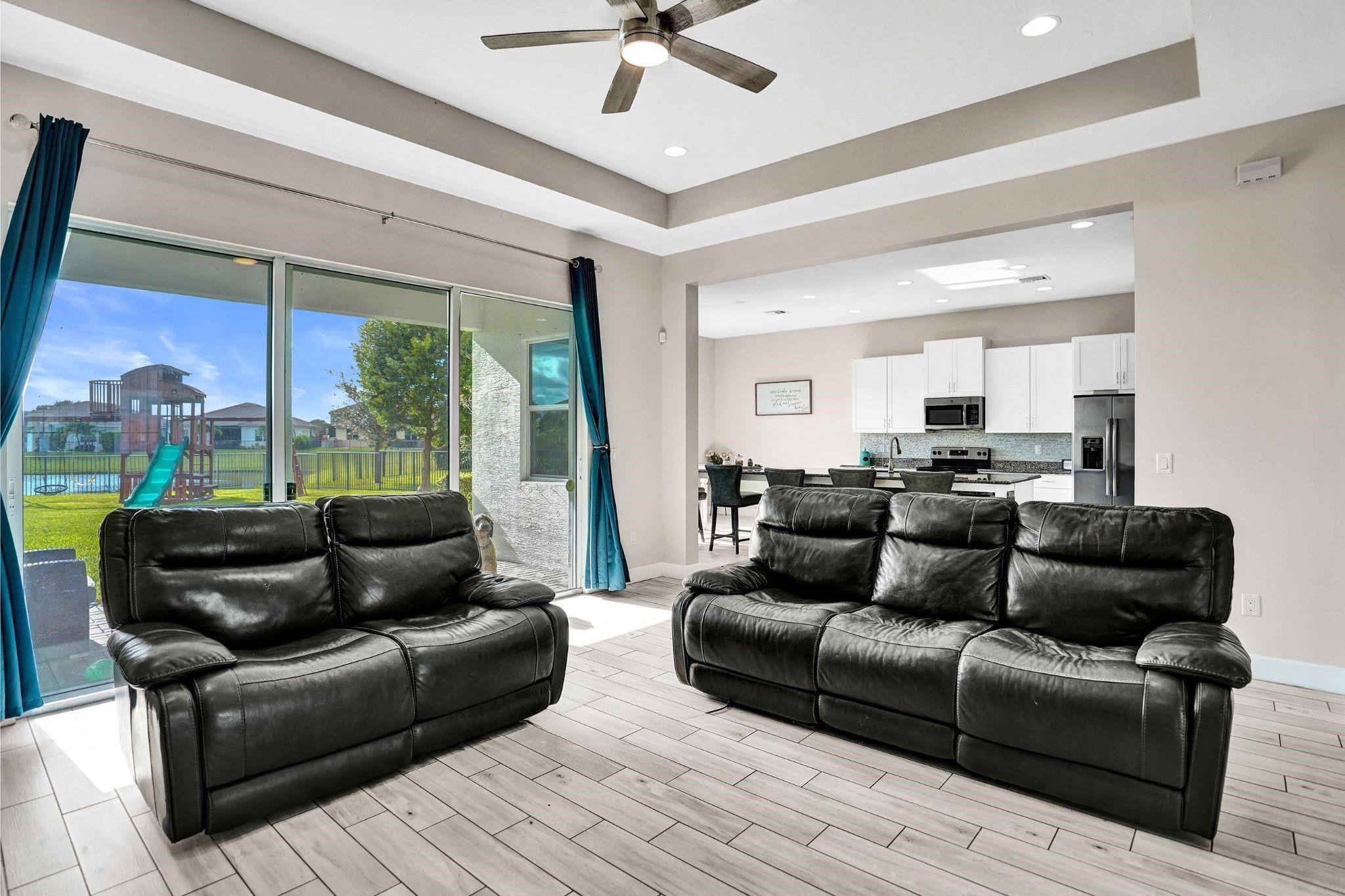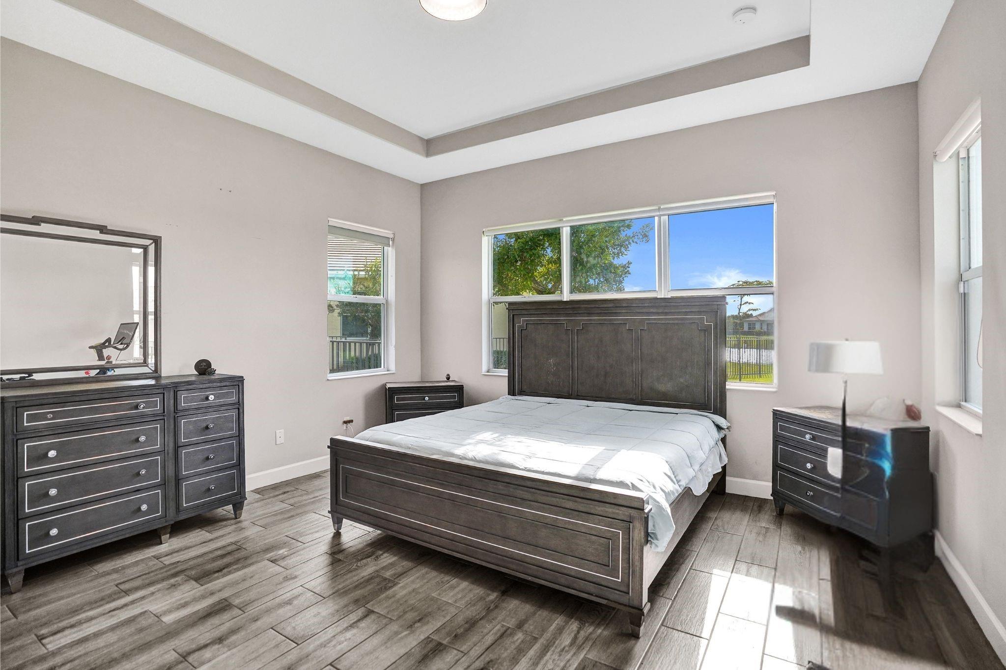 Welcome To The Best Priced Home In The Hammocks On Over 1/4 Acre Pie Lot! This Isn't Your Typical Builder Grade Home, w/ Optimum Features Such As Premium Tile Flooring, Extended Kitchen Island & Custom Window Shades Its Just The Beginning! Step Inside This Triple Split Beauty & You'll Enjoy A Stunning Sightline Through The 3 Panel Pocket Sliders Of Sparkling Lake Views! Abundance Of Premium Kitchen Cabinets & Island w/ Seating For 10! Bonus Flex Rm/ Den Is Easily 4th Bedrm. Guest Wing Complete w/ EnSuite & Walk-In Closet. Spacious Primary Suite w/ More Water Views, Spa-Like Bath w/ Dual Sinks, Massive Shower & TWO Walk-In Closets. Newer Paint. Reallink Security Sys. Smarts Fans & Garage Doors. Exterior Smart Lighting. Floor Attic Space w/ Lighting For Bonus Storage. 3.25% VA Assumable