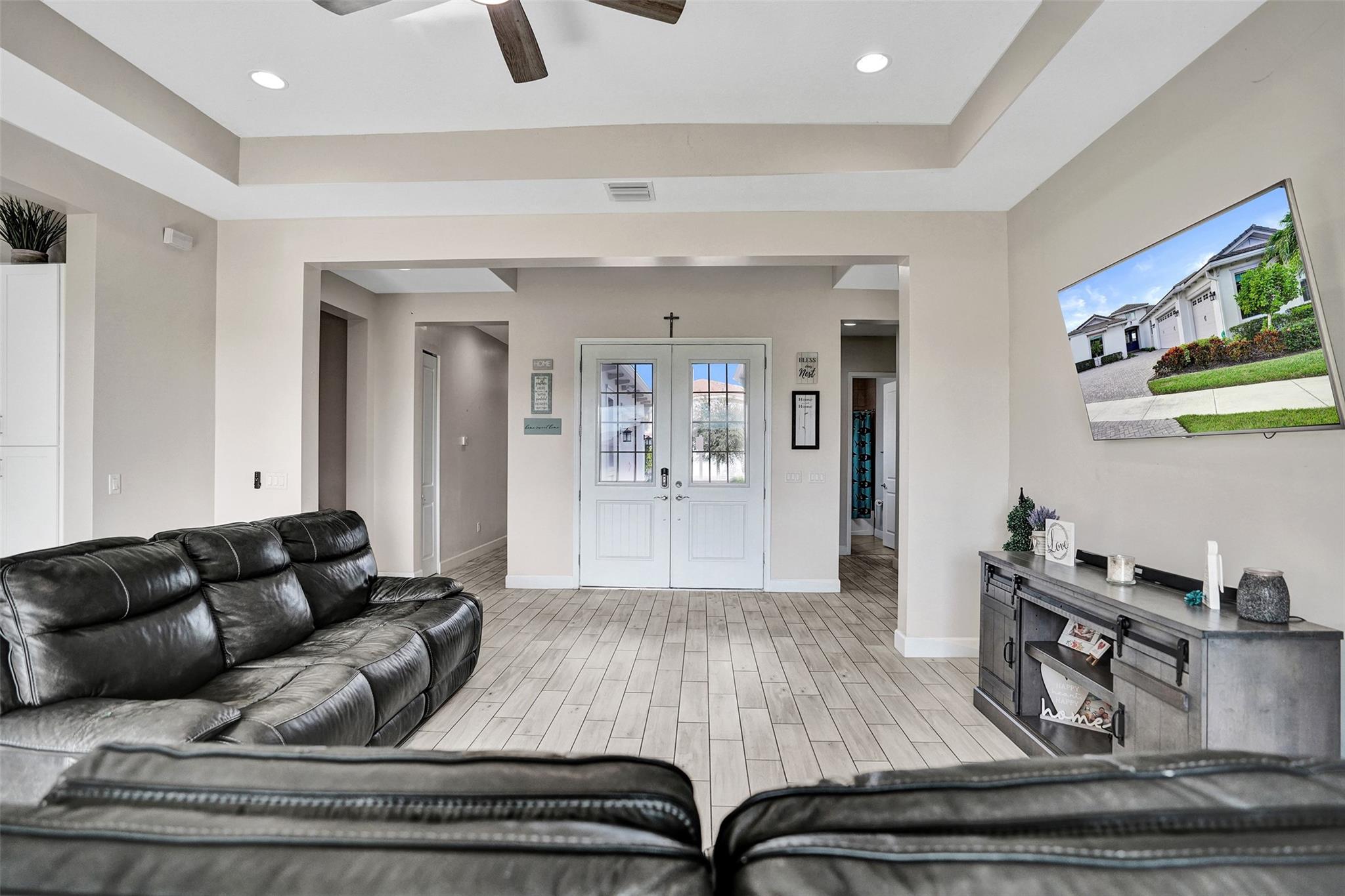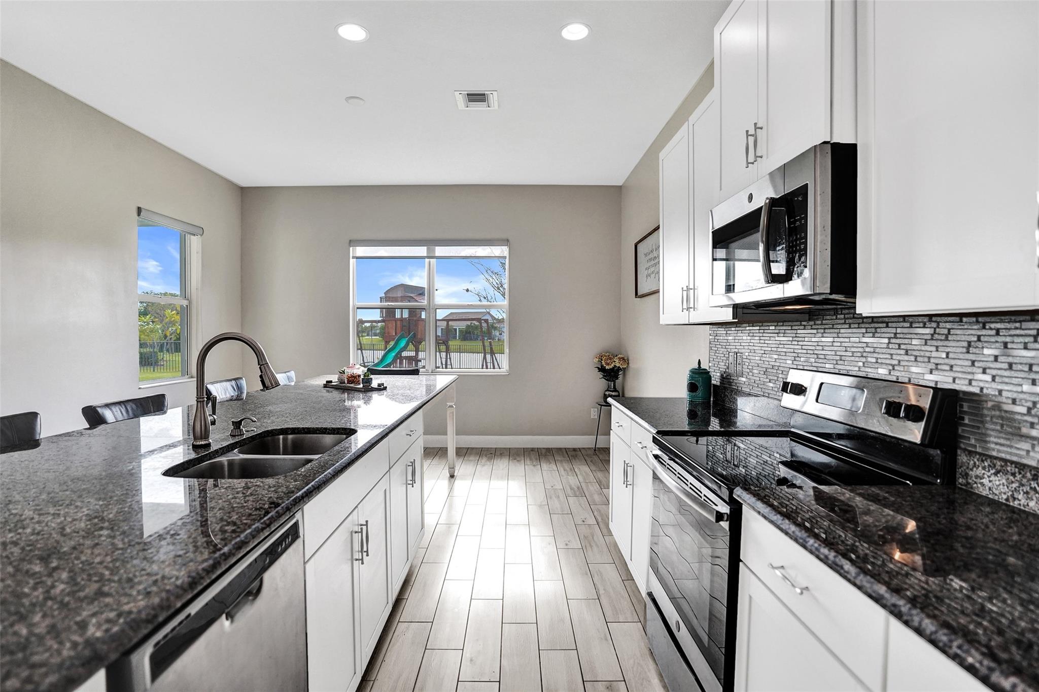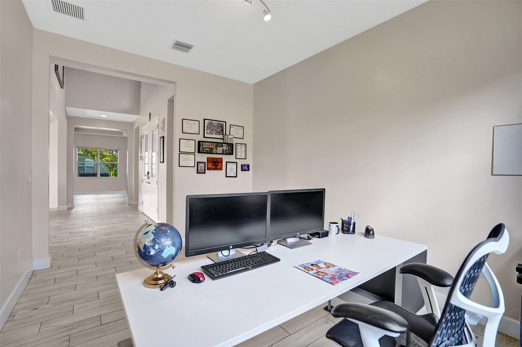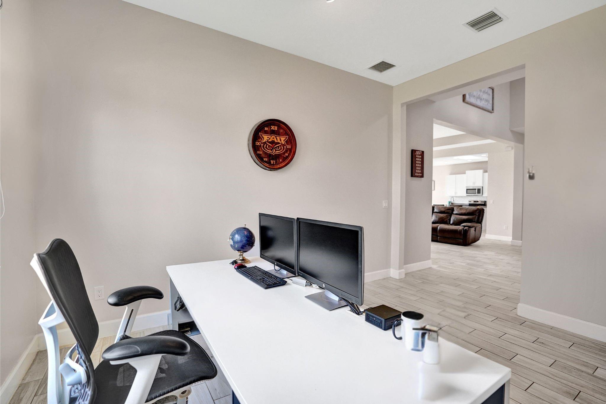 Welcome To The Best Priced Home In The Hammocks On Over 1/4 Acre Pie Lot! This Isn't Your Typical Builder Grade Home, w/ Optimum Features Such As Premium Tile Flooring, Extended Kitchen Island & Custom Window Shades Its Just The Beginning! Step Inside This Triple Split Beauty & You'll Enjoy A Stunning Sightline Through The 3 Panel Pocket Sliders Of Sparkling Lake Views! Abundance Of Premium Kitchen Cabinets & Island w/ Seating For 10! Bonus Flex Rm/ Den Is Easily 4th Bedrm. Guest Wing Complete w/ EnSuite & Walk-In Closet. Spacious Primary Suite w/ More Water Views, Spa-Like Bath w/ Dual Sinks, Massive Shower & TWO Walk-In Closets. Newer Paint. Reallink Security Sys. Smarts Fans & Garage Doors. Exterior Smart Lighting. Floor Attic Space w/ Lighting For Bonus Storage. 3.25% VA Assumable
