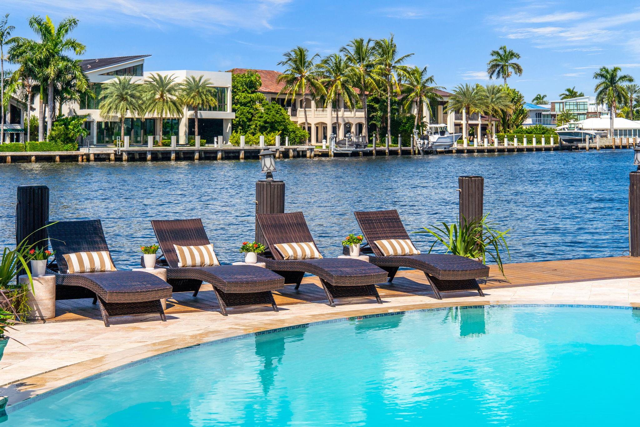 A vision of coastal grandeur, this palatial estate graces one of Fort Lauderdale’s most coveted point-lot settings w/ over 200ft on the water. Tucked away at the end of a peaceful cul-de-sac, moments from the beach. Soaring ceilings and walls of glass illuminate a two-story great room w/ dual living areas, formal dining, & a gourmet kitchen w/ double appliances designed for both family living and effortless entertaining at scale. Each bedroom is complemented by an en-suite bath and walk-in wardrobe, blending comfort and sophistication. The wrap-around terrace frames mesmerizing sunset views over calm waters, while manicured grounds invite lounging, dining, & boating from your private dock — minutes from Ocean Blvd (A1A), Lauderdale-by-the-Sea, and Downtown Fort Lauderdale (Las Olas)