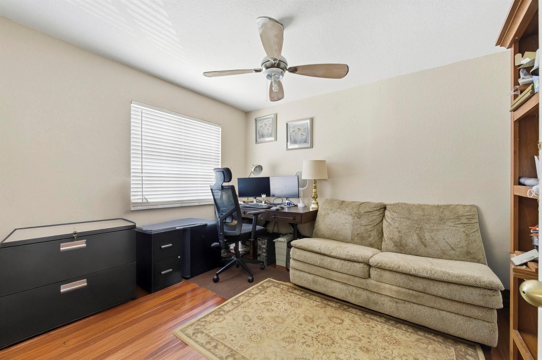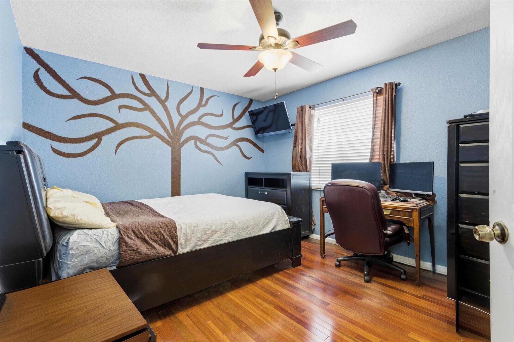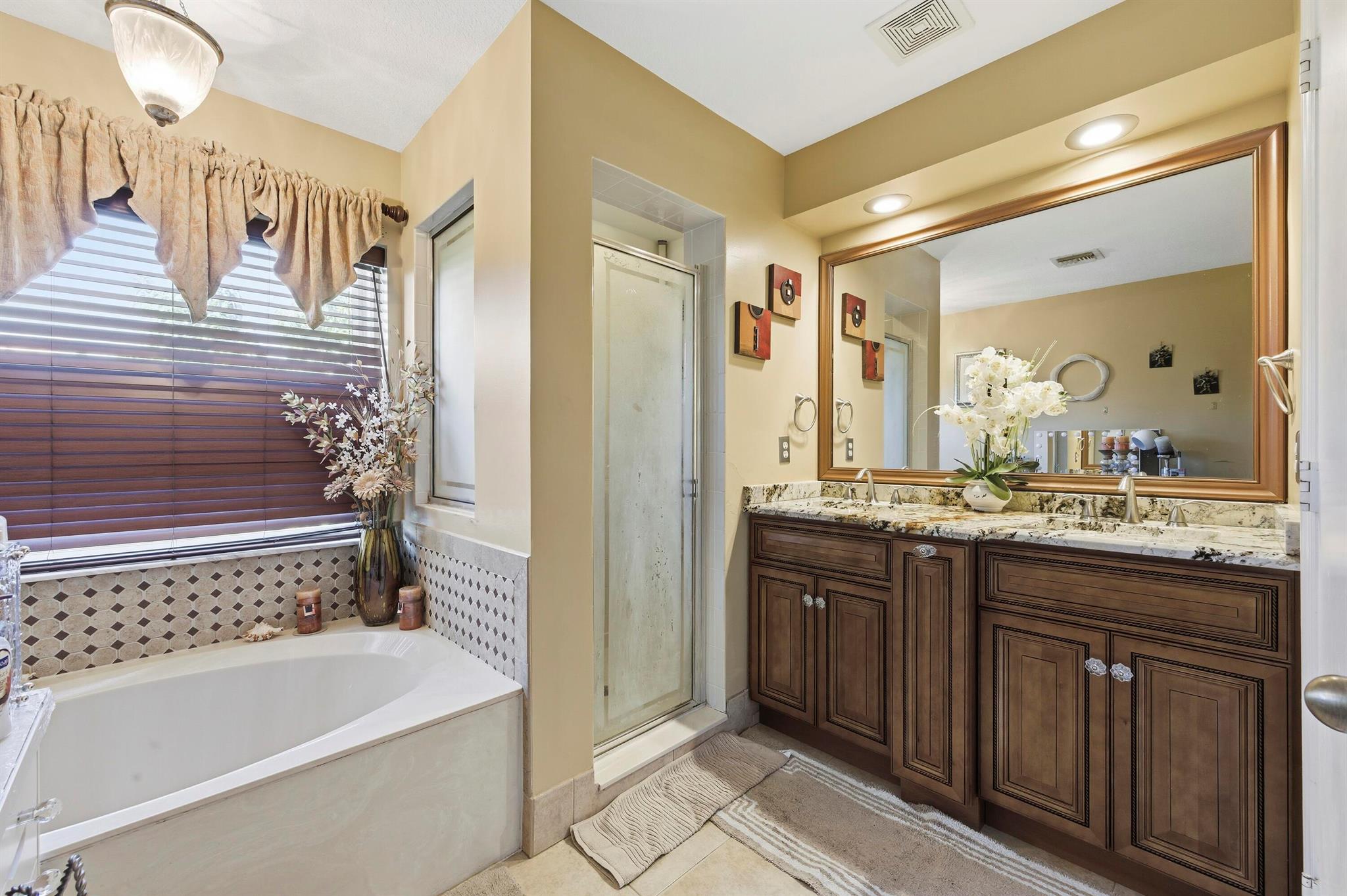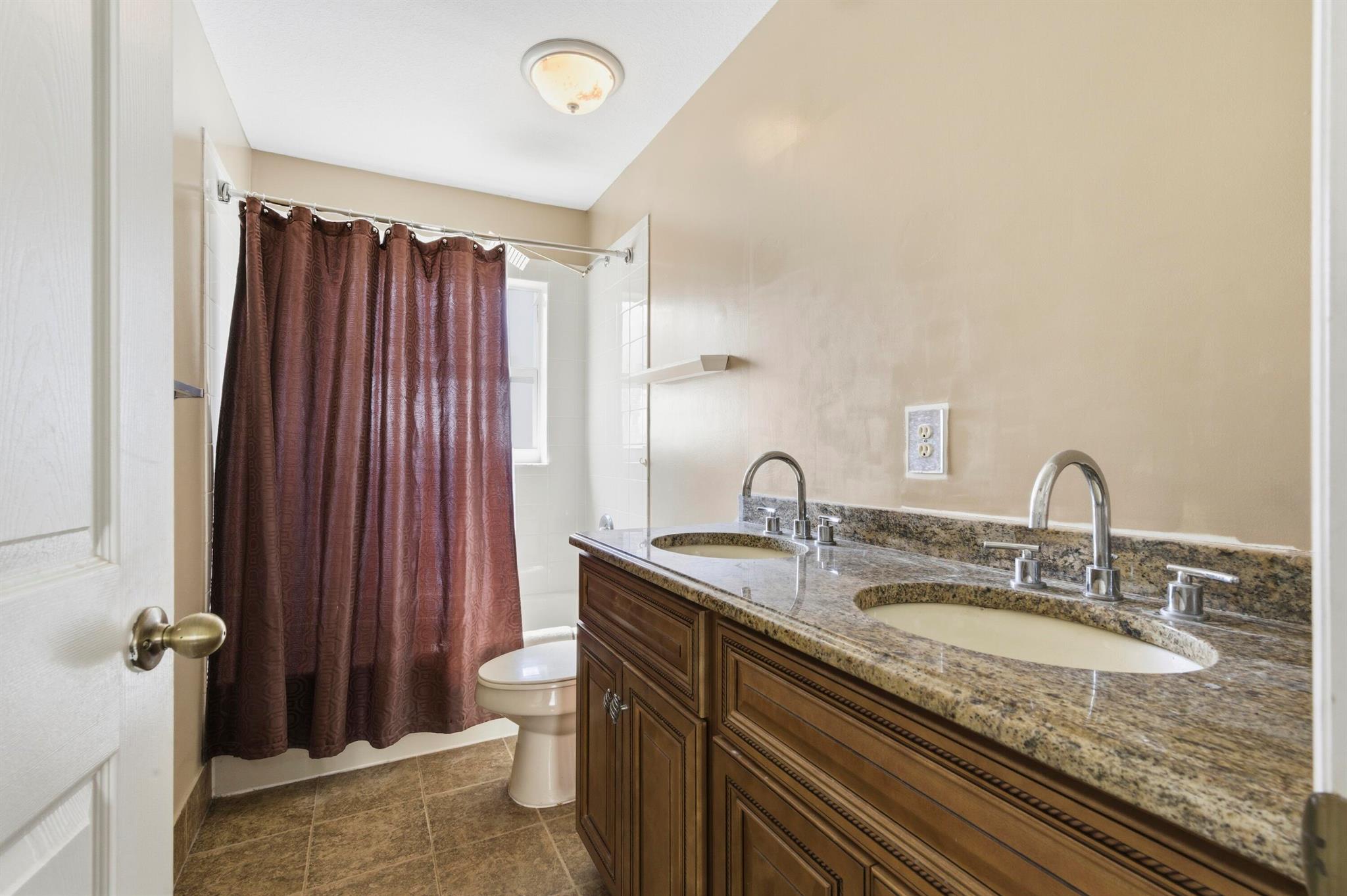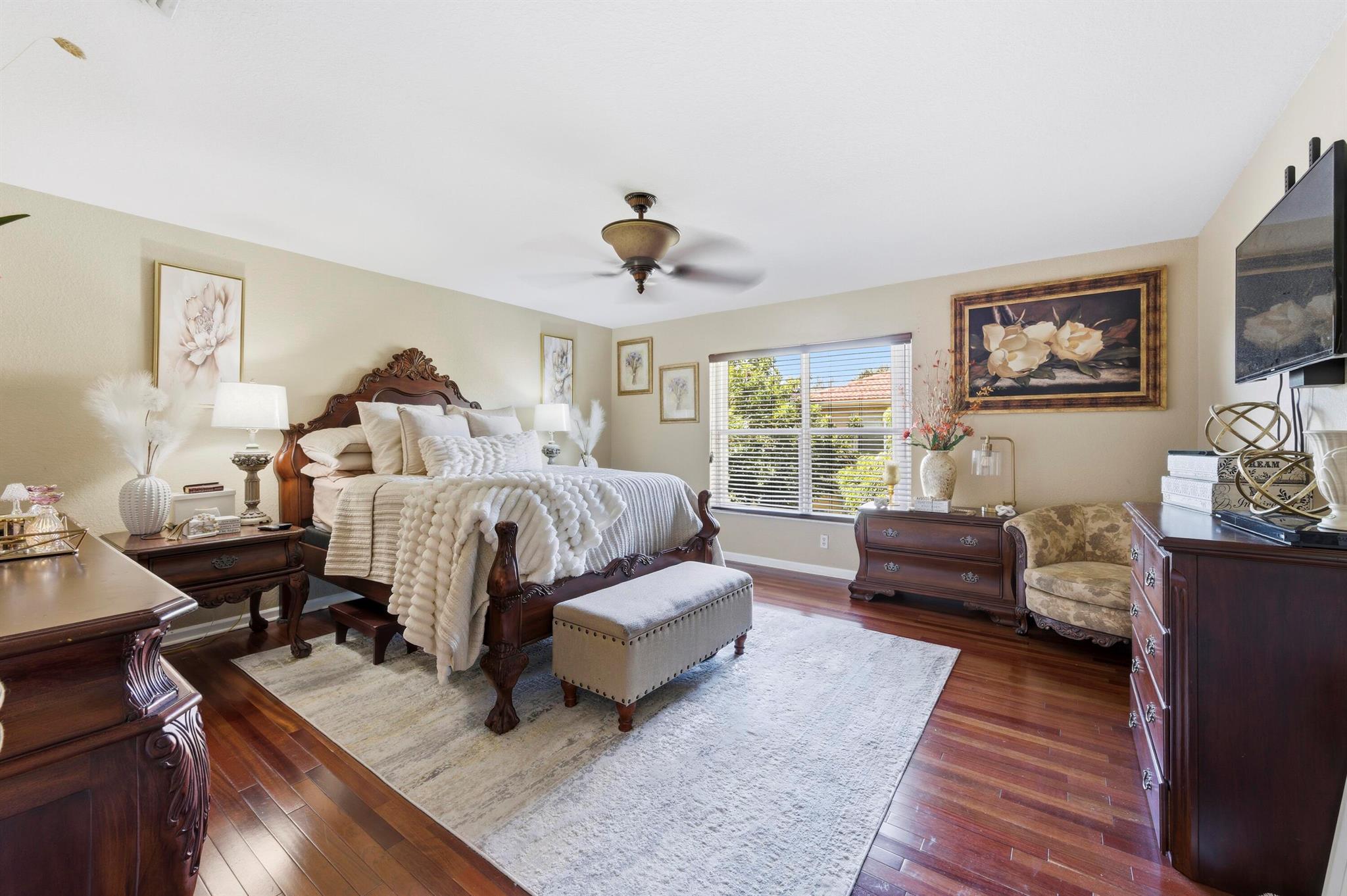 NEW ROOF 2024! This beautifully updated home features accordion shutters, classic crown molding, and a modern design throughout. The kitchen and bathrooms have been upgraded with premium granite countertops, elegant cabinetry, and stainless steel appliances. Enjoy tile flooring downstairs and wood flooring upstairs, large windows with plenty of natural light, and a private fenced yard. The home includes a garage, freshly painted exterior, and outdoor security cameras that stay with the property. One bedroom and a full bathroom are conveniently located downstairs. The spacious master suite offers a gorgeous updated bathroom, and all bedrooms are generously sized.Located in the desirable Lakes of Laguna gated community with very low HOA fees, residents enjoy resort-style amenities