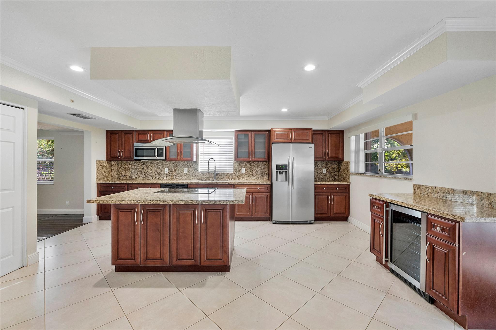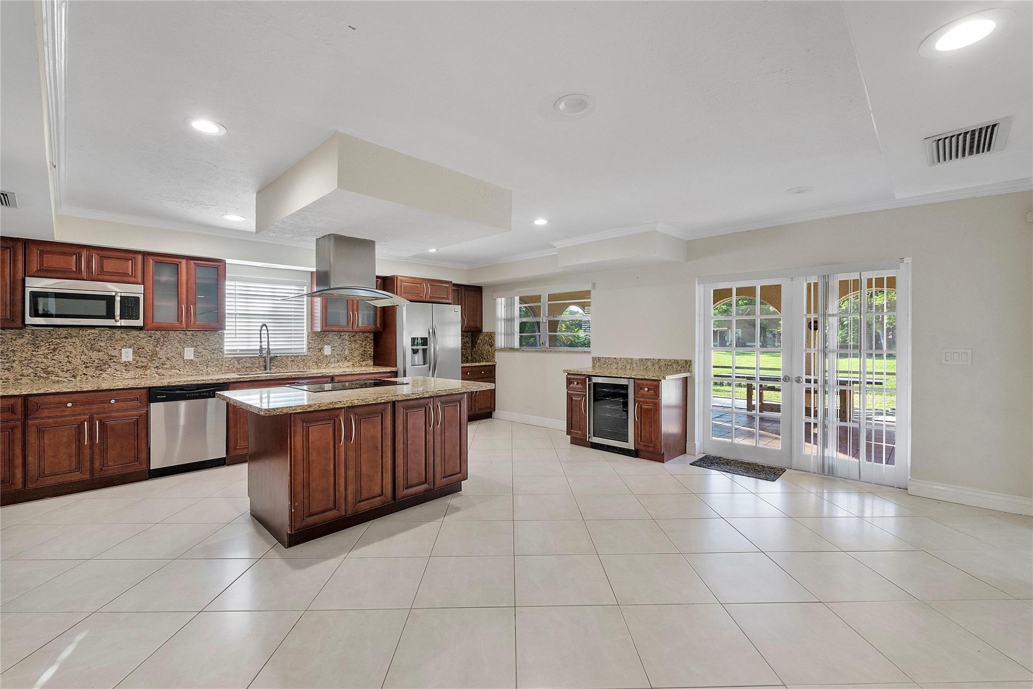 Fabulously & Beautifully Large home with a welcoming front courtyard. Sited on an expansive waterfront lot featuring an intensive variety of mature exotic fruit trees. Oversize living areas can accommodate a family who needs space. The Updated Island kitchen is impressive with its size & is perfect for large gatherings. Master Suite is a private retreat & offers a spa-like bathroom with a separate shower & whirlpool tub/balcony overlooking the grounds & pool area. Secondary bedrooms are on the first floor & are spacious. Huge screen porch with a full summer kitchen/newly resurfaced saltwater pool/large deck/tropical landscape & water frontage. Located in a quiet community in the heart of Coral Springs. Shopping, Dining, Schools & Places of Worship are within walking distance. NO HOA!!!