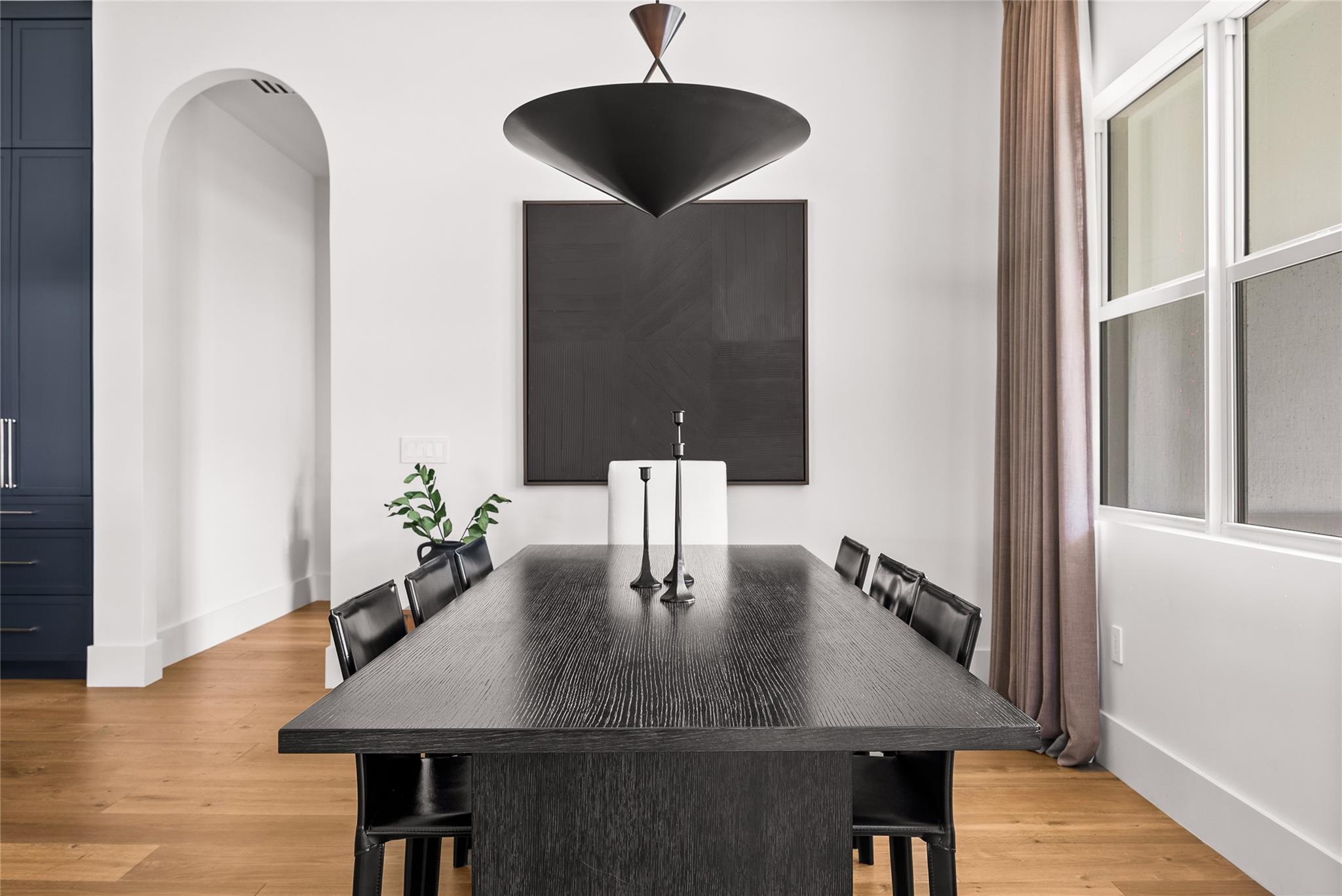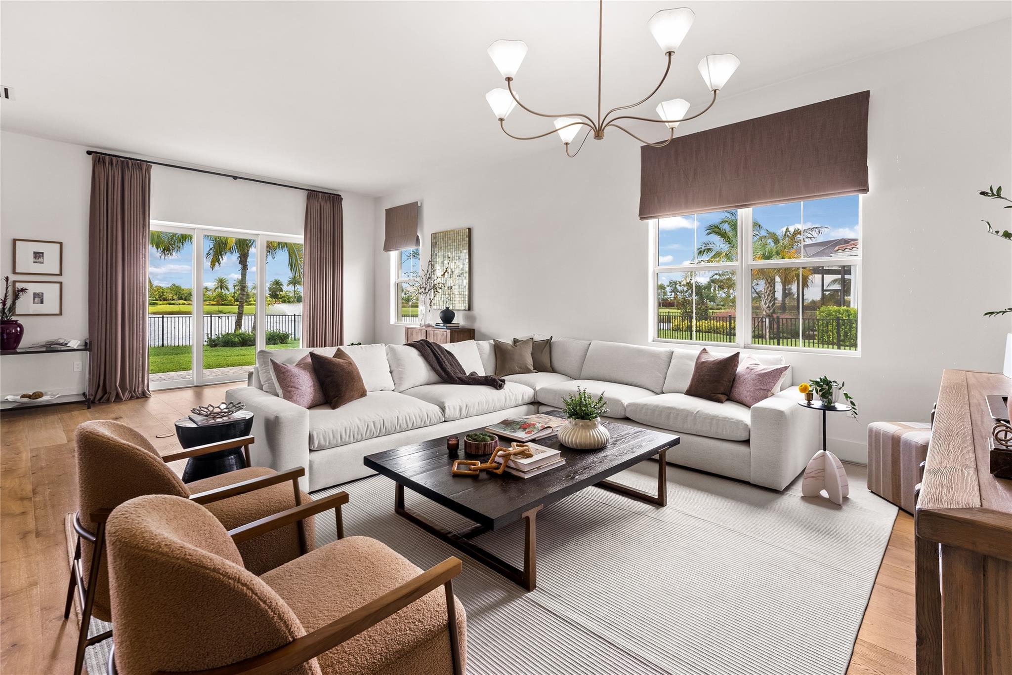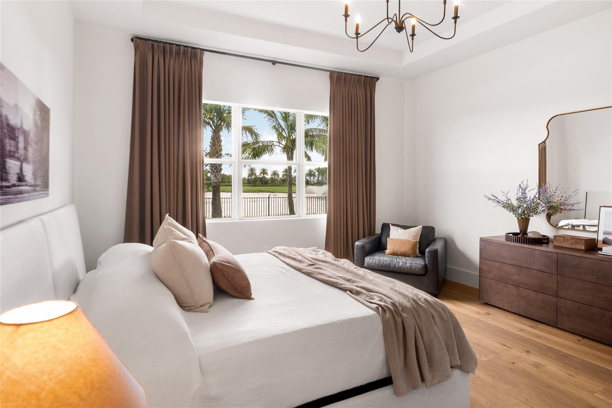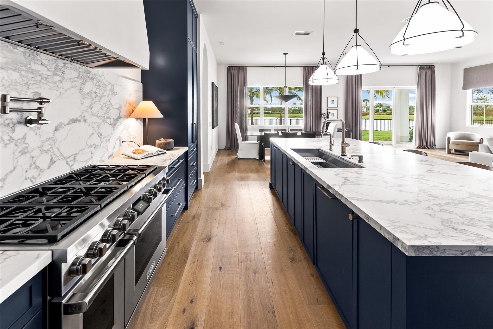 Step into a residence where every detail has been thoughtfully curated to balance modern functionality with timeless design. At its heart lies a bespoke kitchen, enveloped in Italian Statuario Belgia marble with a striking three-foot backsplash, complemented by a Sub-Zero/Wolf appliance suite, handcrafted custom cabinetry, and European white oak hardwood floors that flow seamlessly throughout the home. The primary suite offers a serene retreat, complete with travertine floors, custom dolomite vanities, walk-in rainfall shower elegantly enclosed by a tailored single pane of low-iron glass, and a two-person soaking tub reminiscent of a luxury spa experience. Outside, enjoy panoramic lake views, a fully fenced yard, and the privacy of a generous one-third-acre homesite.