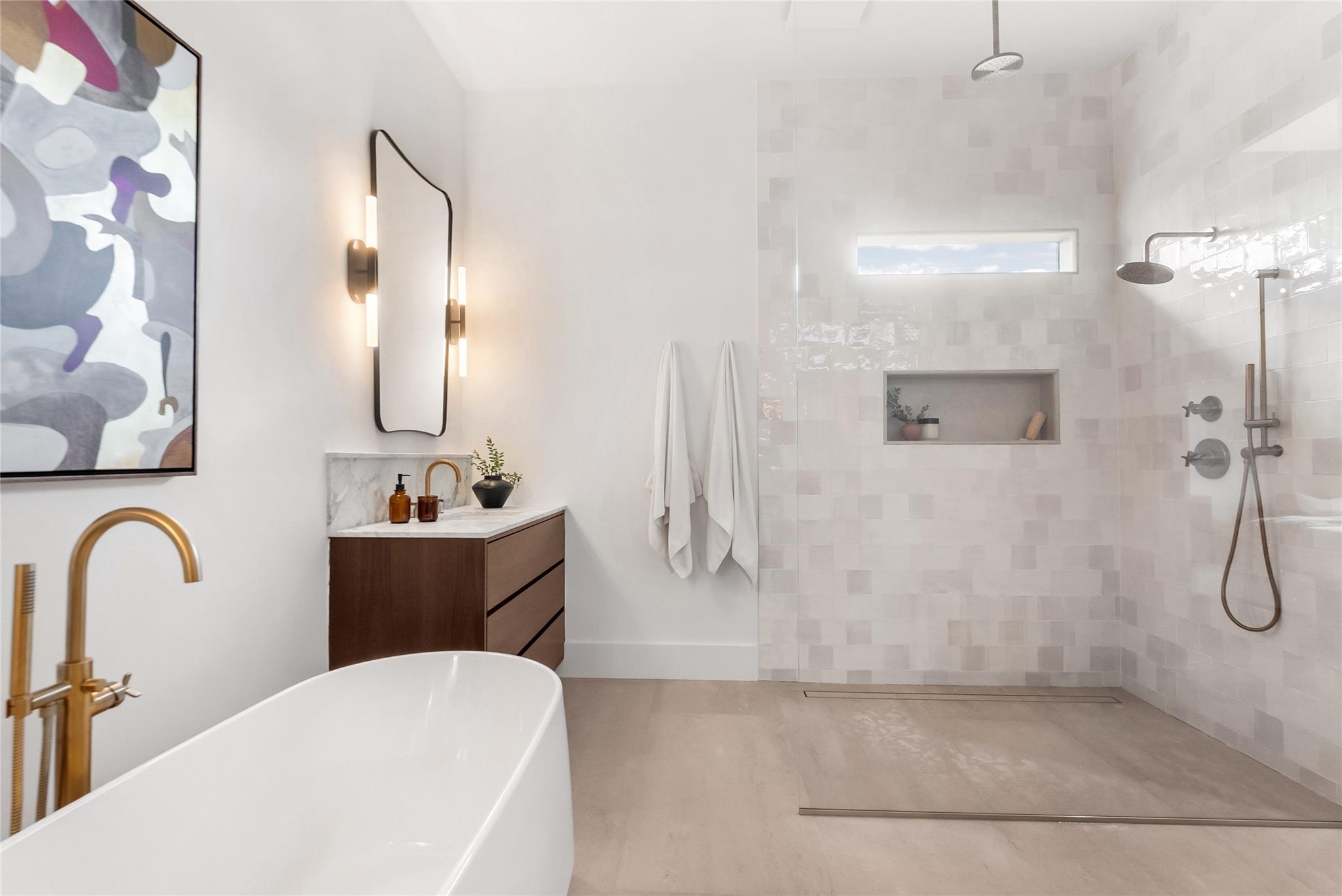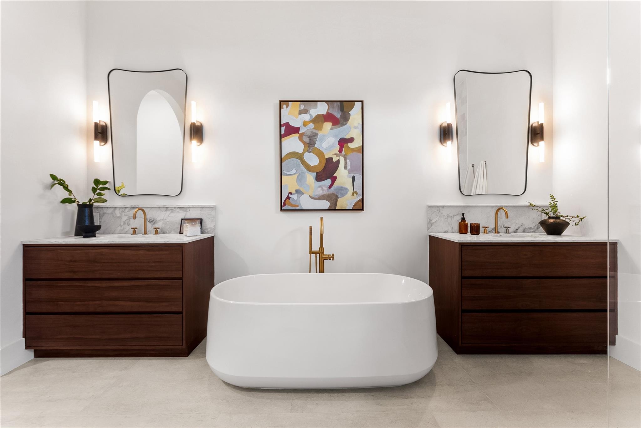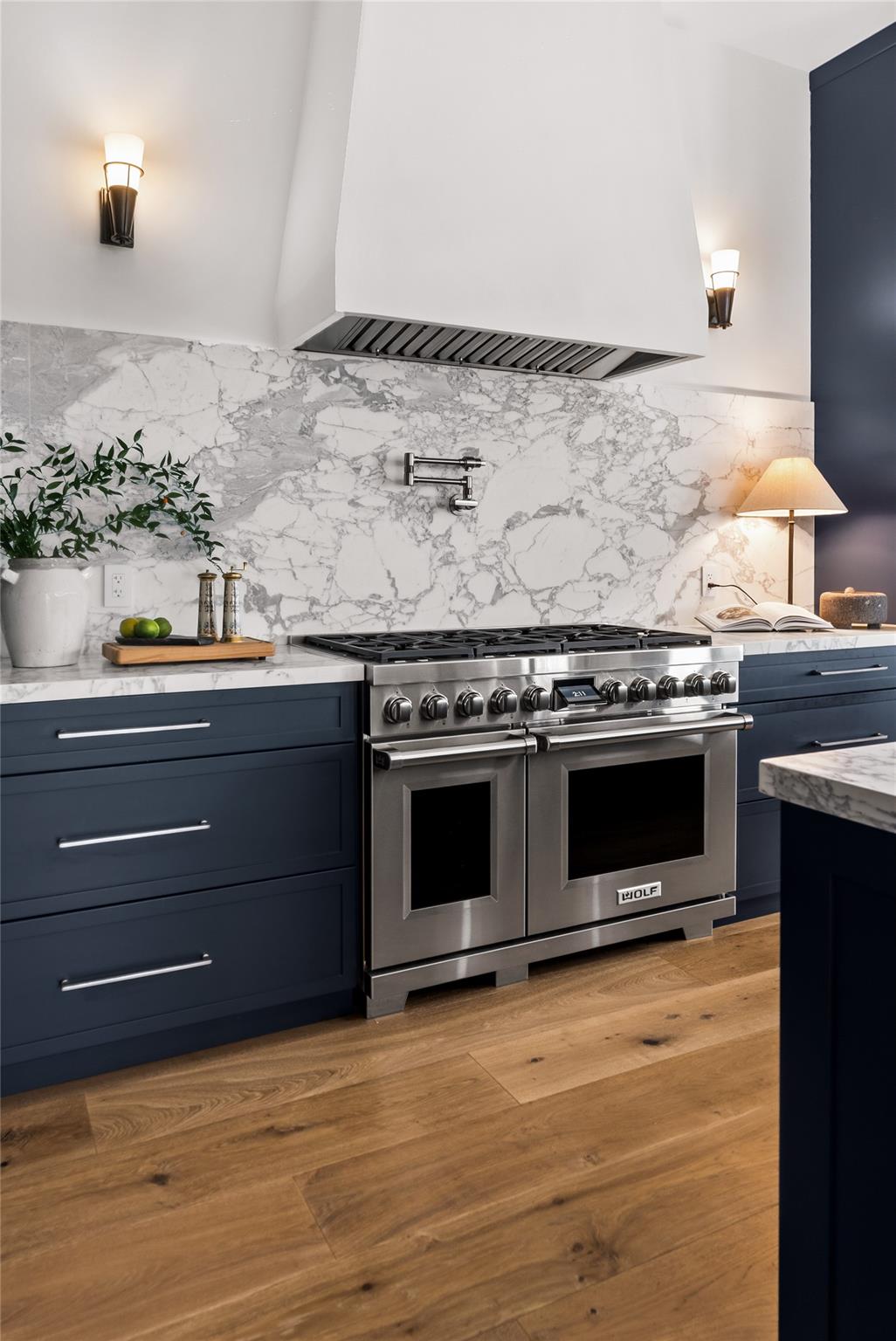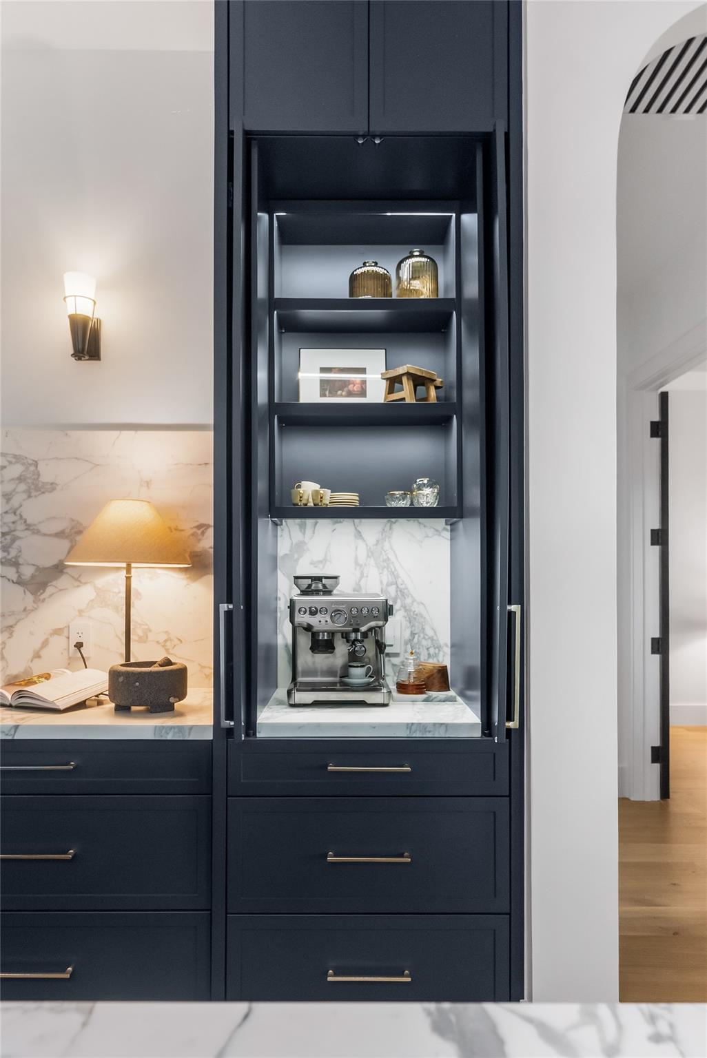 Step into a residence where every detail has been thoughtfully curated to balance modern functionality with timeless design. At its heart lies a bespoke kitchen, enveloped in Italian Statuario Belgia marble with a striking three-foot backsplash, complemented by a Sub-Zero/Wolf appliance suite, handcrafted custom cabinetry, and European white oak hardwood floors that flow seamlessly throughout the home. The primary suite offers a serene retreat, complete with travertine floors, custom dolomite vanities, walk-in rainfall shower elegantly enclosed by a tailored single pane of low-iron glass, and a two-person soaking tub reminiscent of a luxury spa experience. Outside, enjoy panoramic lake views, a fully fenced yard, and the privacy of a generous one-third-acre homesite.