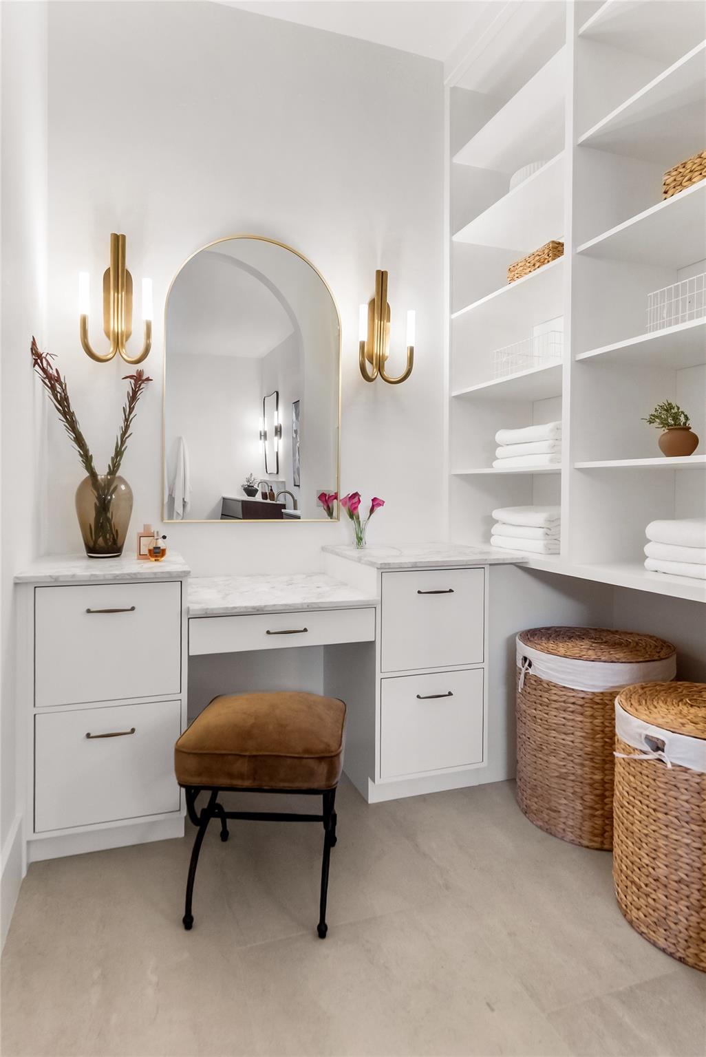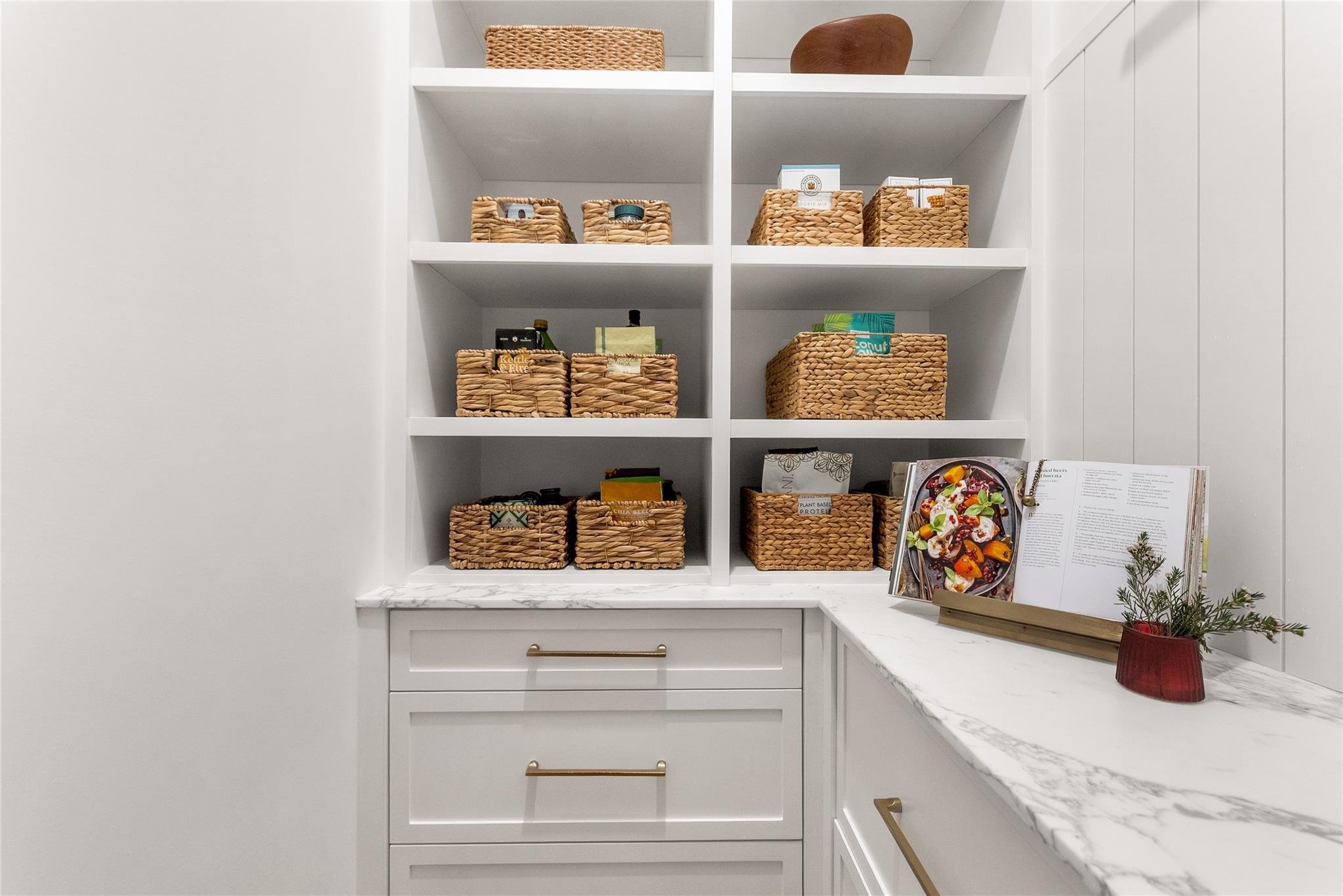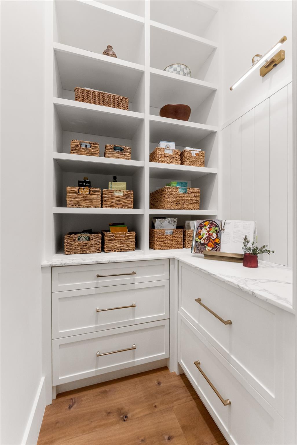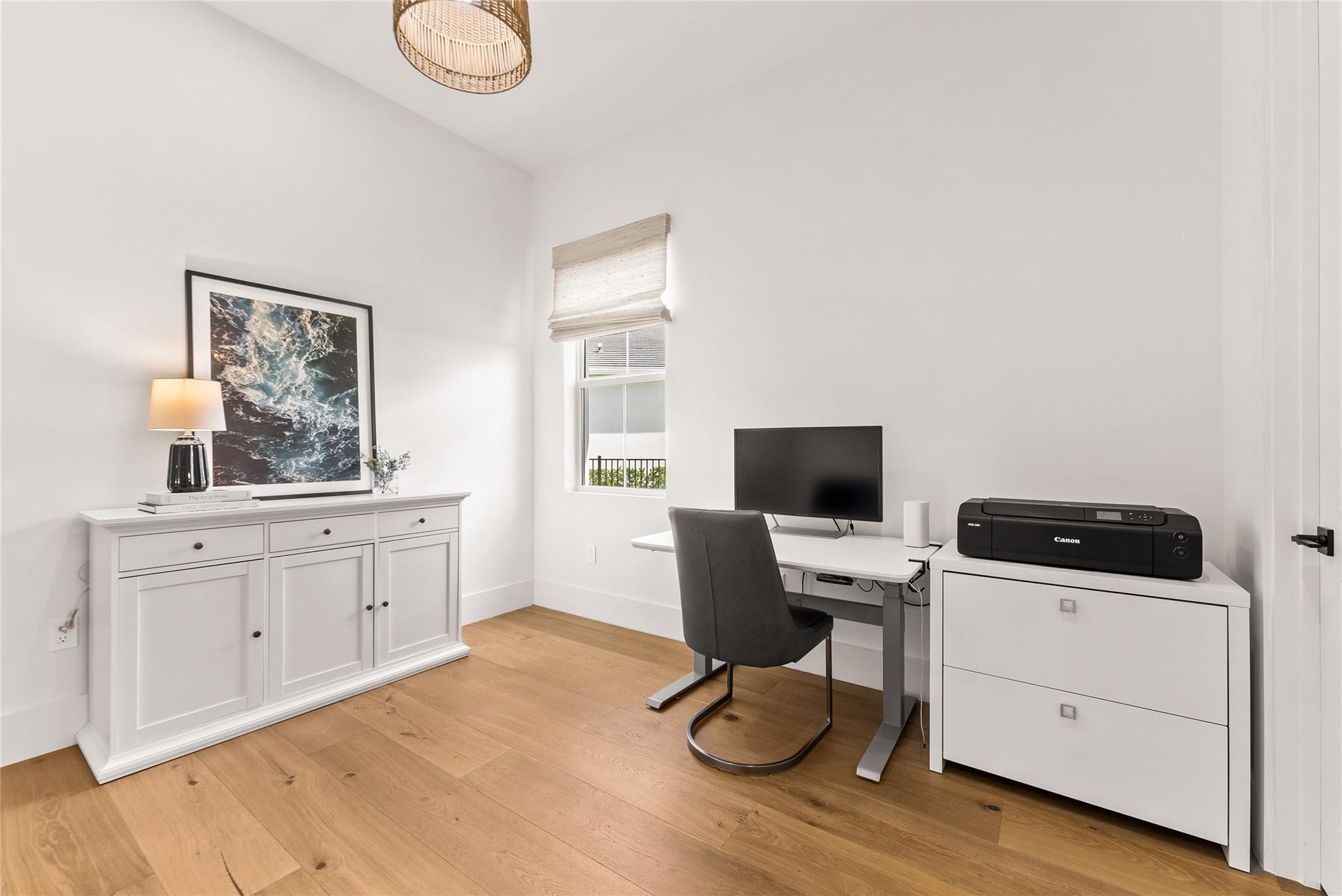 Step into a residence where every detail has been thoughtfully curated to balance modern functionality with timeless design. At its heart lies a bespoke kitchen, enveloped in Italian Statuario Belgia marble with a striking three-foot backsplash, complemented by a Sub-Zero/Wolf appliance suite, handcrafted custom cabinetry, and European white oak hardwood floors that flow seamlessly throughout the home. The primary suite offers a serene retreat, complete with travertine floors, custom dolomite vanities, walk-in rainfall shower elegantly enclosed by a tailored single pane of low-iron glass, and a two-person soaking tub reminiscent of a luxury spa experience. Outside, enjoy panoramic lake views, a fully fenced yard, and the privacy of a generous one-third-acre homesite.
