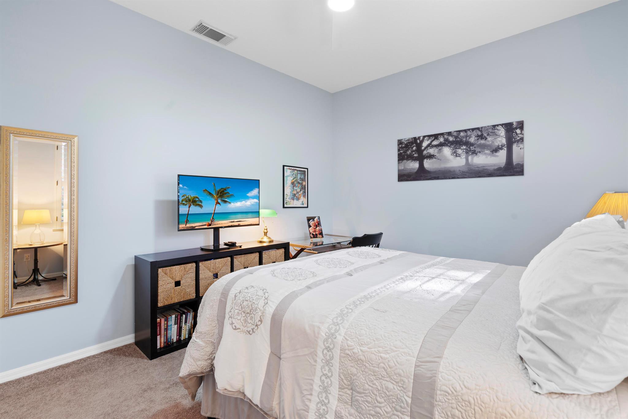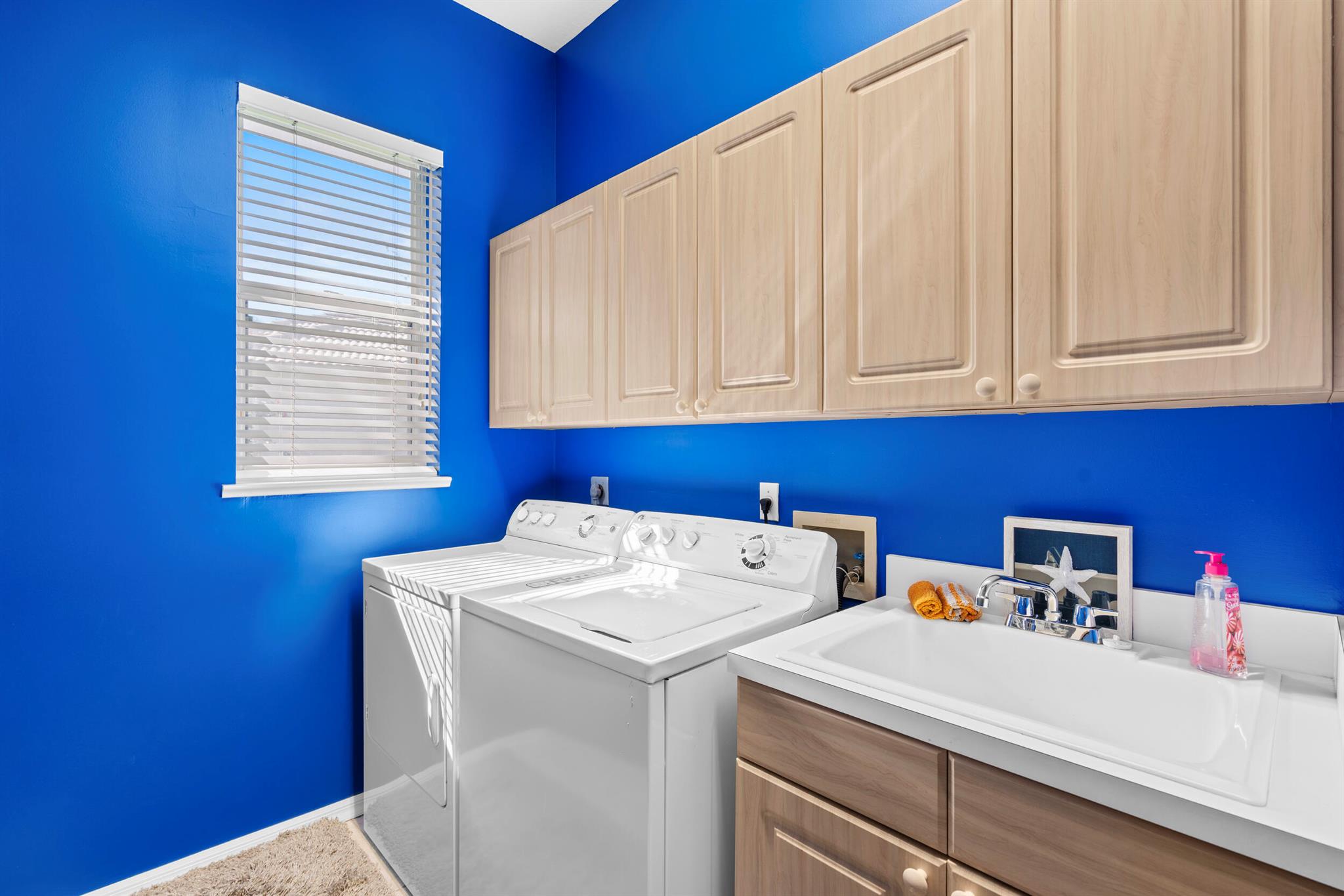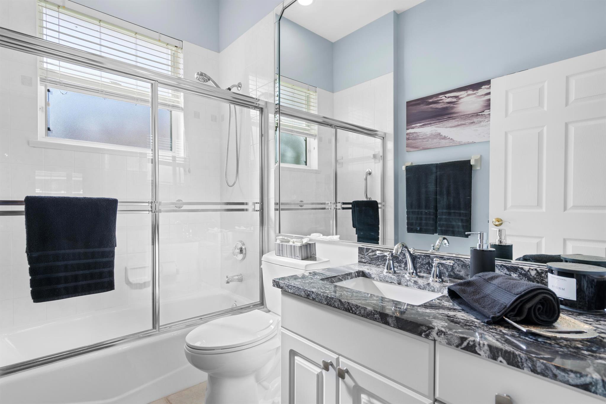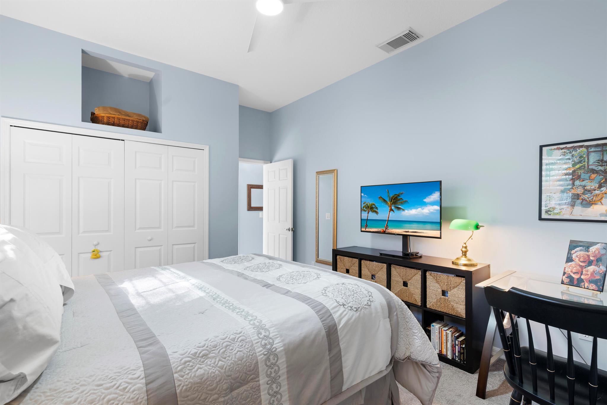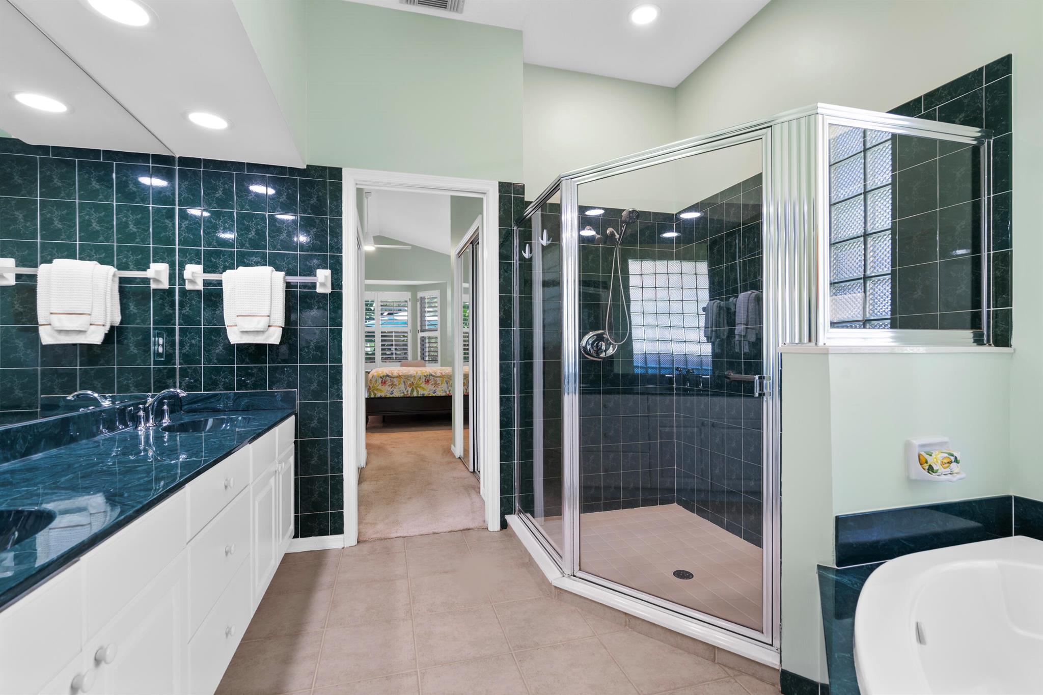 Beautiful Pool home with Lake View in ''Mystic Pines'' at PGA Village. This home offers fabulous Sunsets & tropical landscaping. Features CBS Construction, front gate entrance, tile flooring in main areas, vaulted ceilings, updated lights, fans & Plantation Shutters. Hosts 2 BR's, Large Den, 2 BA's, 2 Car Garage & Golf cart negotiable. Stunning Eat in Updated Kitchen boasts gorgeous quartz counter tops & backsplash, stainless steel appliances, wine cooler, under counter lighting & Island. Split floor plan with spacious Master Suite, sitting area overlooking the lake, walk in closets with built in's, decorative fireplace & Master Bath w/ LG shower & Roman Tub. Screen enclosed heated pool w/ new pump & heater, waterfall pond & summer kitchen. Perfect To entertain!