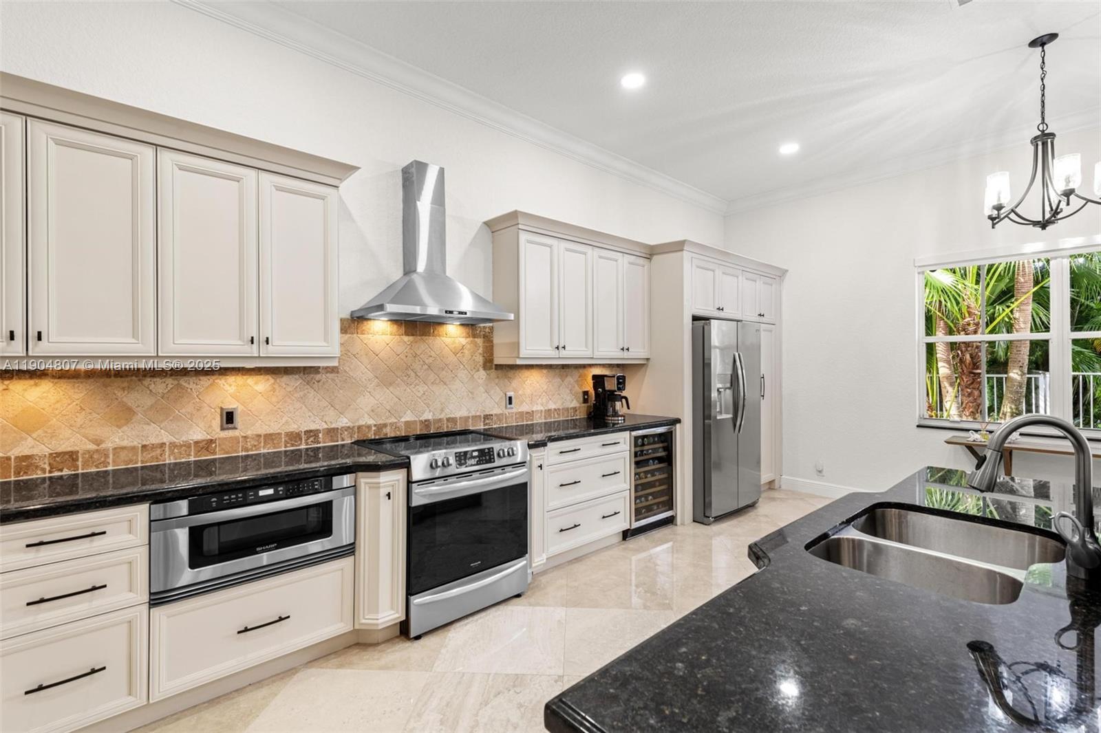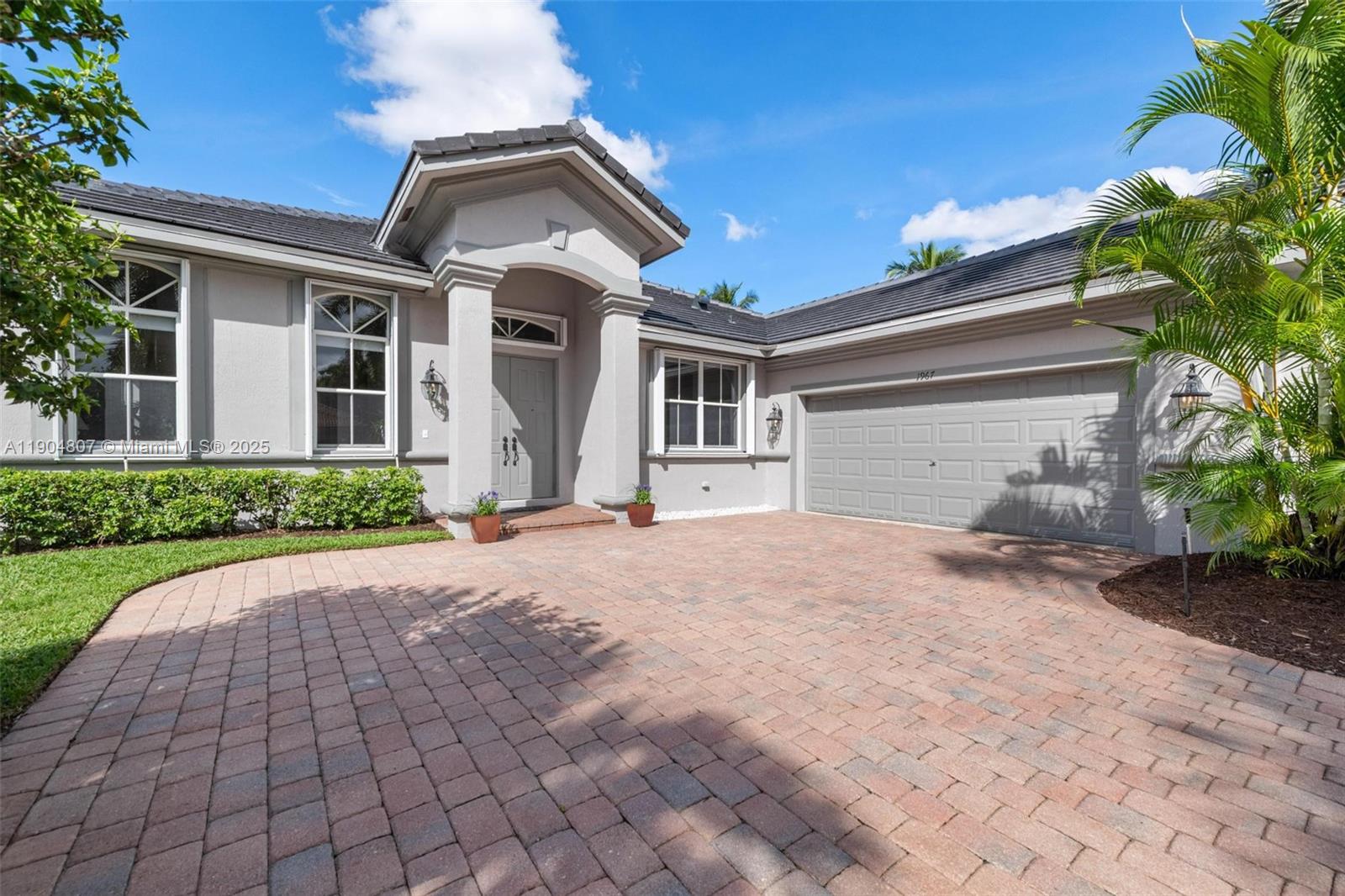 Live the Weston Hills lifestyle! This bright, stylish one-story home blends luxury and comfort in the coveted Hunters Pointe II community. Enjoy peace of mind with a BRAND NEW 2025 ROOF, soaring 14’ ceilings, marble floors, and a freshly updated interior that feels effortlessly modern. The open kitchen wows with updated kitchen cabinets, new stainless appliances, granite counters, and a built-in wine fridge—perfect for entertaining! Step outside to your private paradise with a screened patio + sparkling heated pool surrounded by lush tropical landscaping. Freshly painted exterior! Additional upgrades include new A/C, accordion shutters, and an extended paver driveway. Set on a quiet Royal Palm-lined street, just a stroll from parks & fields, and zoned for Weston’s award-winning A+ schools.