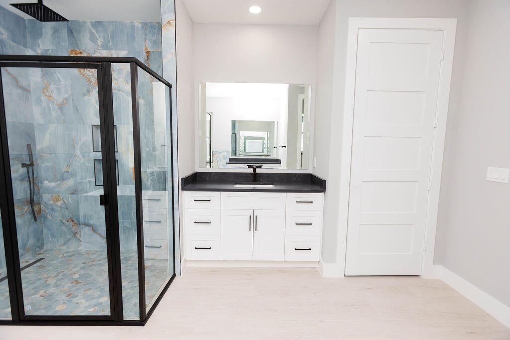 Step inside and fall in love! This brand-new corner lot home features not only 4 bedrooms and 3 bathrooms but also come equipped with a separate ''flex room.'' the open layout flows effortlessly, with quartz countertops throughout, sleek stainless steel appliances, and plenty of cabinet space in the kitchen. The owner's suite is your personal retreat with two walk-in closets and a spa-styled bath featuring a stand-alone soaking tub, waterfall shower complete with side jets. Step out into the spacious covered porch, perfect for morning coffee or evening gatherings. The hurricane impact windows offer peace of mind all year round. This is truly a home that blends elegance, warmth, and thoughtful craftsmanship-inside and out!