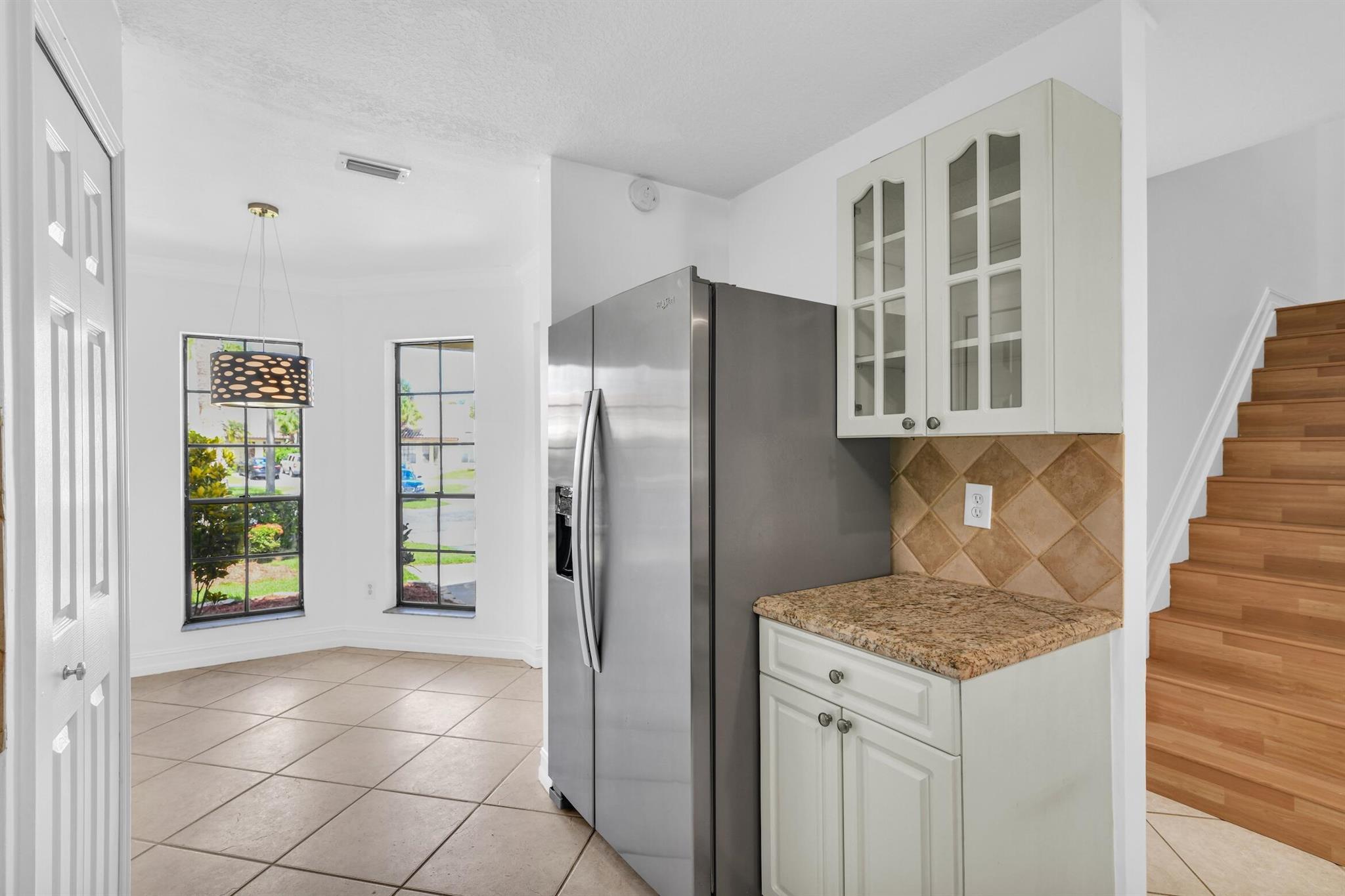 Fabulous Townhome in Woodstream at Lakes of Boca Raton! Seldom available, this nicely updated residence features an open kitchen w/ granite countertops, stainless -steel appliances & a breakfast bar plus eat in area. Freshly painted Chantilly Lace White. This home offers volume ceilings, 2 Master Suites, & a spacious Enclosed Patio. The primary bedroom includes wood-like floors, large fitted closet w/ ample natural light & impact glass. Improvements include Roof & Hurricane-Rated Garage door (2019) AC replaced in 2021. Enjoy Resort-Style living in this sought after Community. Offering LOW HOA & fabulous amenities: Fitness Center, Tennis & Pickleball Cts, Basketball, Soccer Field, Sparkling Pool, & Playground. A+ rated schools & convenient located close to shops, restaurants & much more