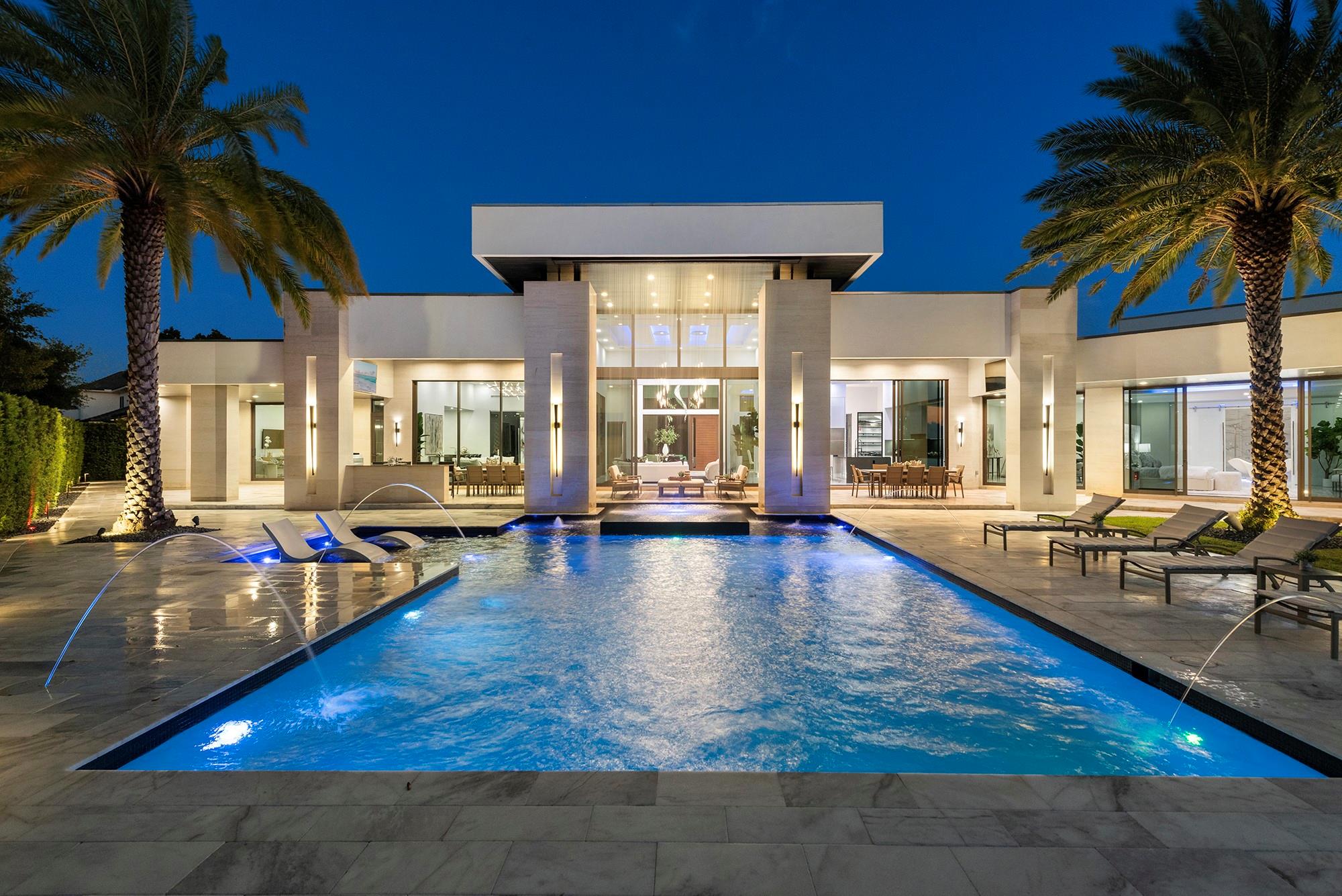 State-of-the-art custom estate, located within the prestigious Enclave at Coral Ridge Country Club in East Ft Lauderdale. This exclusive, guard-gated community of 32 homes with 24/7 manned security, ensuring ultimate seclusion & privacy while being a short distance to fine dining, shopping, 2 golf courses, the beach & private executive airport. Perfectly positioned on an oversized corner 26,580SF lot, the home ensures total privacy & tranquility. This single-story architectural masterpiece showcases soaring ceilings and walls of glass framing sweeping golf course views, seamlessly blending indoor and outdoor living. The grandeur of this custom-built home features 5BR, 6.5BA, executive office, media/club room, and an A/C 5-car garage with a stunning glass wall to inspire any car enthusiast