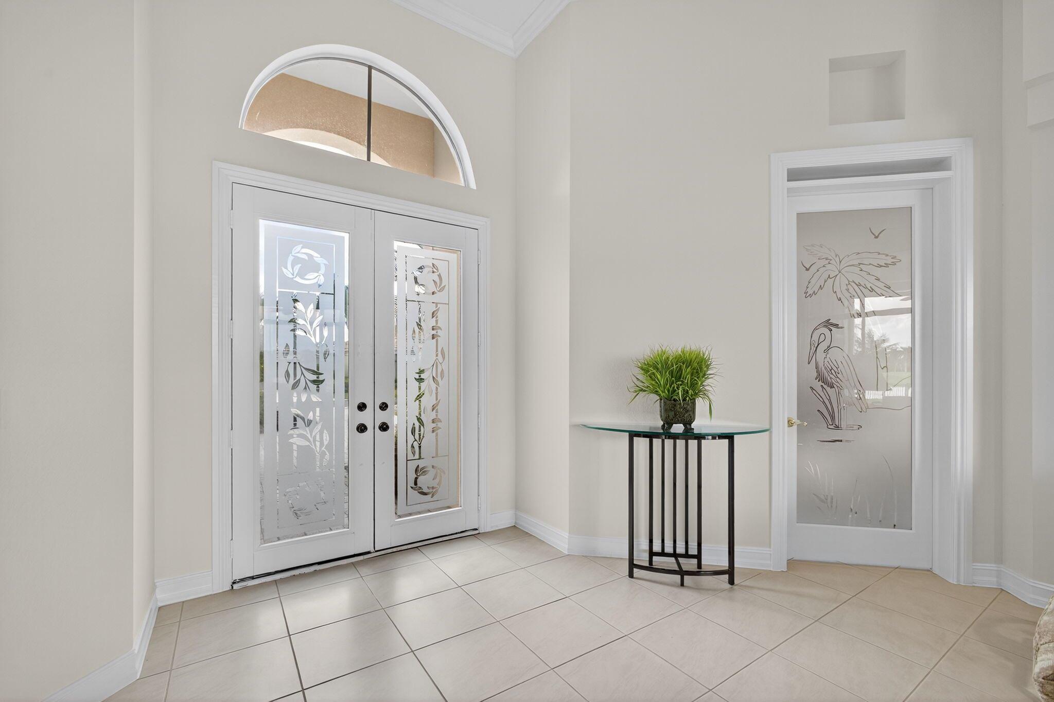 PREMIER GOLF MEMBERSHIP AVAILABLE! Enjoy spectacular water and golf course views from this bright and spacious 3 bedroom, 3 bath home featuring a private pool and spa. High ceilings, large windows and the desirable eastern exposure fills the living spaces with morning light, enhancing the home's open and airy feel. Step outside to the oversized patio & backyard...offering plenty of space for outdoor living, dining, and enjoying the serene lake and fairway views. Roof was replaced in 2018, freshly painted interior and the home is protected with accordion hurricane shutters. Beautiful home, spectacular views and Premier Golf Membership!