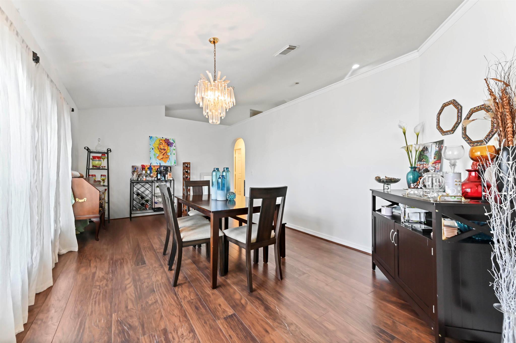 Welcome to this inviting 1-story home featuring 2,678 sq ft of living space, NEW ROOF and no HOA. This property offers 5 bedrooms and 2 newly updated baths, including an office and an entertainment room. The living room fireplace creates a cozy ambiance, complemented by an open layout ideal for gatherings. The kitchen boasts a large island, high-end appliances, and ample cabinetry, with both an eat-in area and a formal dining room perfect for family meals.The split-bedroom design enhances privacy, while the entertainment room features a bar and lounge area for relaxation or hosting guests. The master suite, offers a fully updated en-suite bathroom and a bonus room that can be used as an office, nursery, large closet or a 5th bedroom.