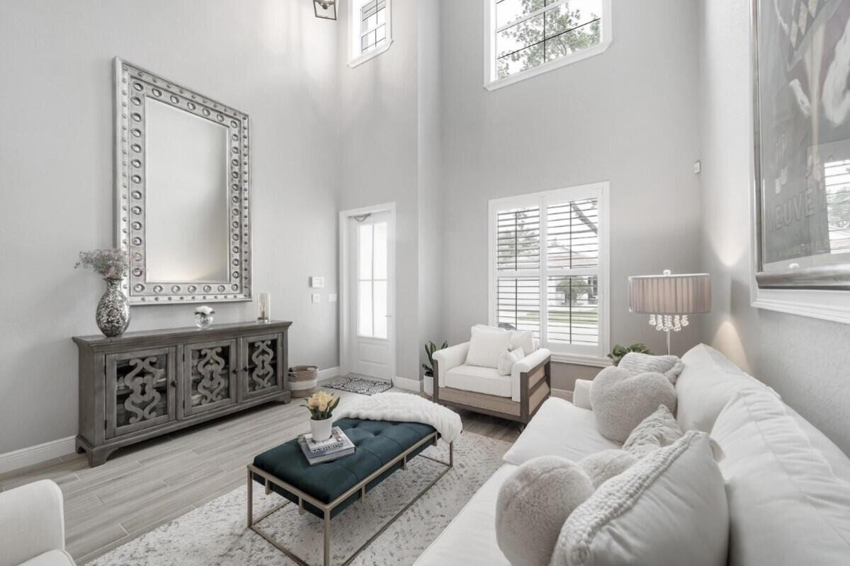 This 5-bedroom, 3-bath home with oversized Florida room offers more than 2800 sq. ft. of living space just steps away from the clubhouse and gigantic community pool.House features boasting volume ceilings throughout and soaring two-story living room. The gourmet kitchen features wood cabinetry, stainless steel appliances and spacious walk-in pantry. Massive kitchen island with top quality natural quartzite countertops is perfect for gathering and entertaining! The oversized owner's suite offers tray ceilings, dual walk-in closets with custom built-ins. Master bath features soaking tub, spacious shower, marble bathroom vanity. This beautifully maintained home features brand new premium flooring downstairs. Updated air-conditioner, water heater, LG washer & dryer.