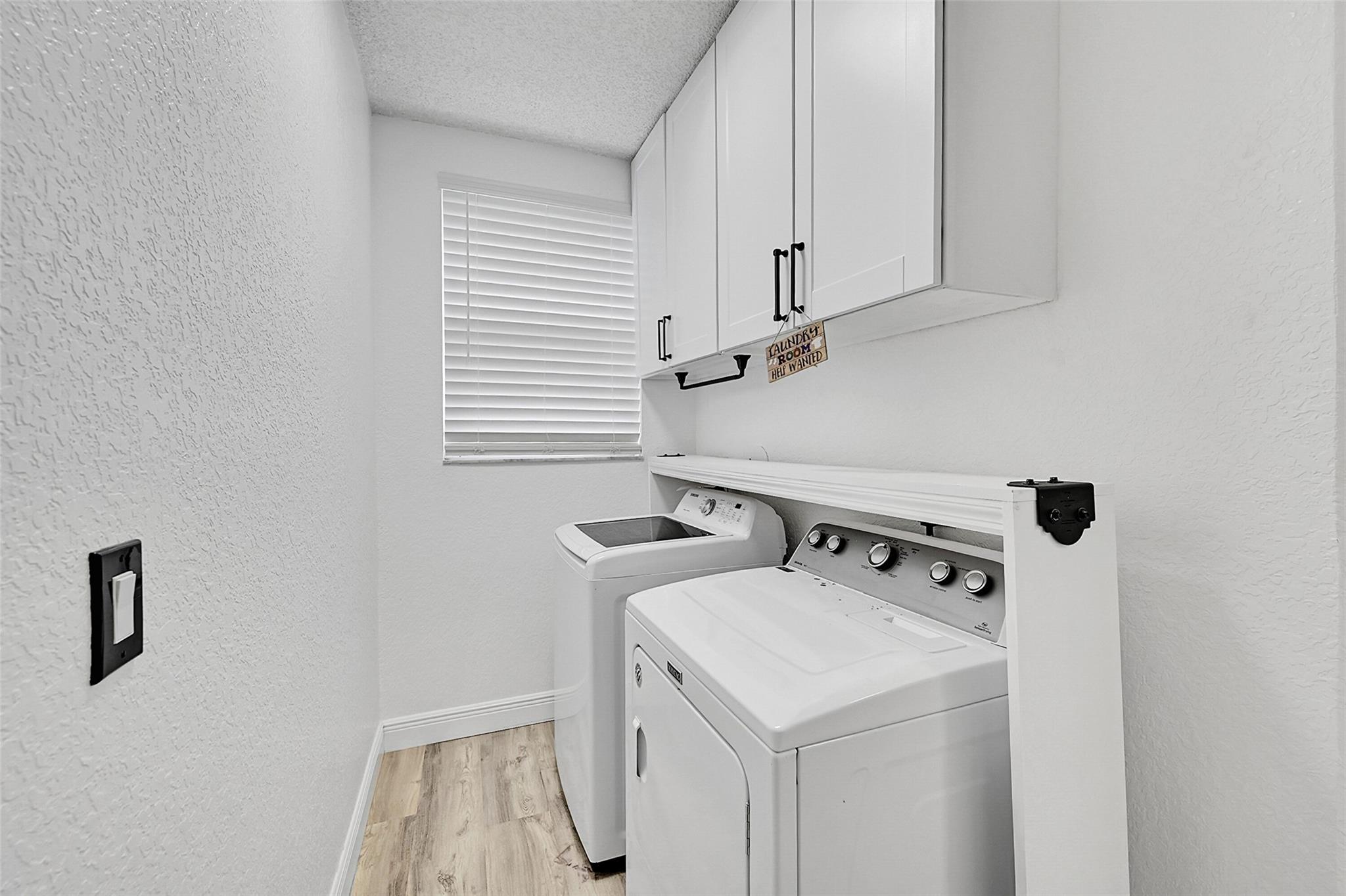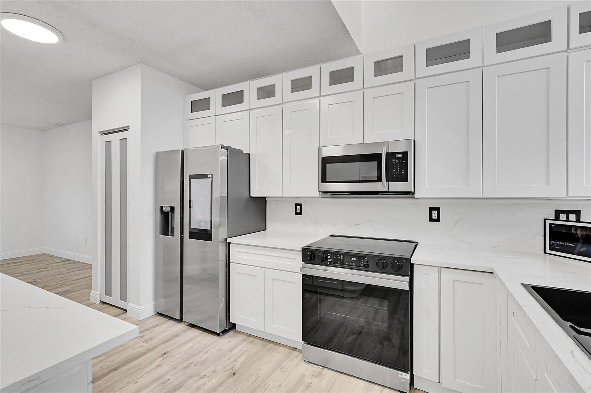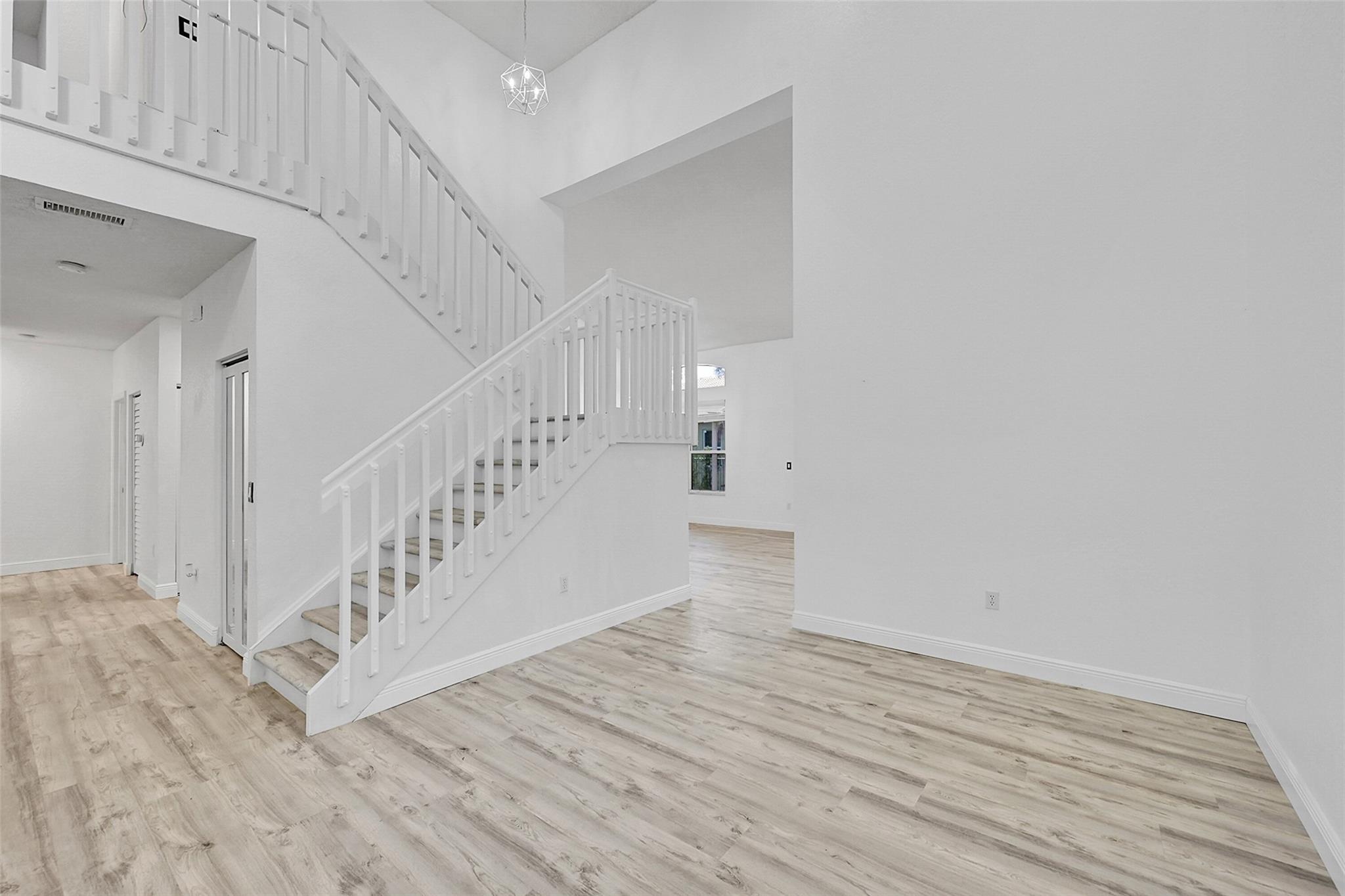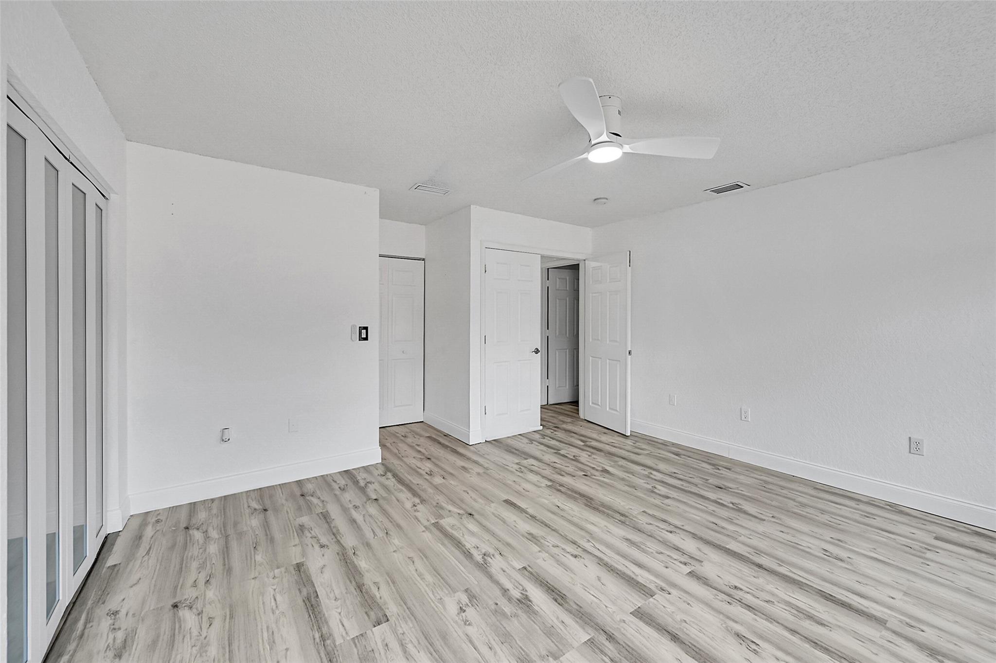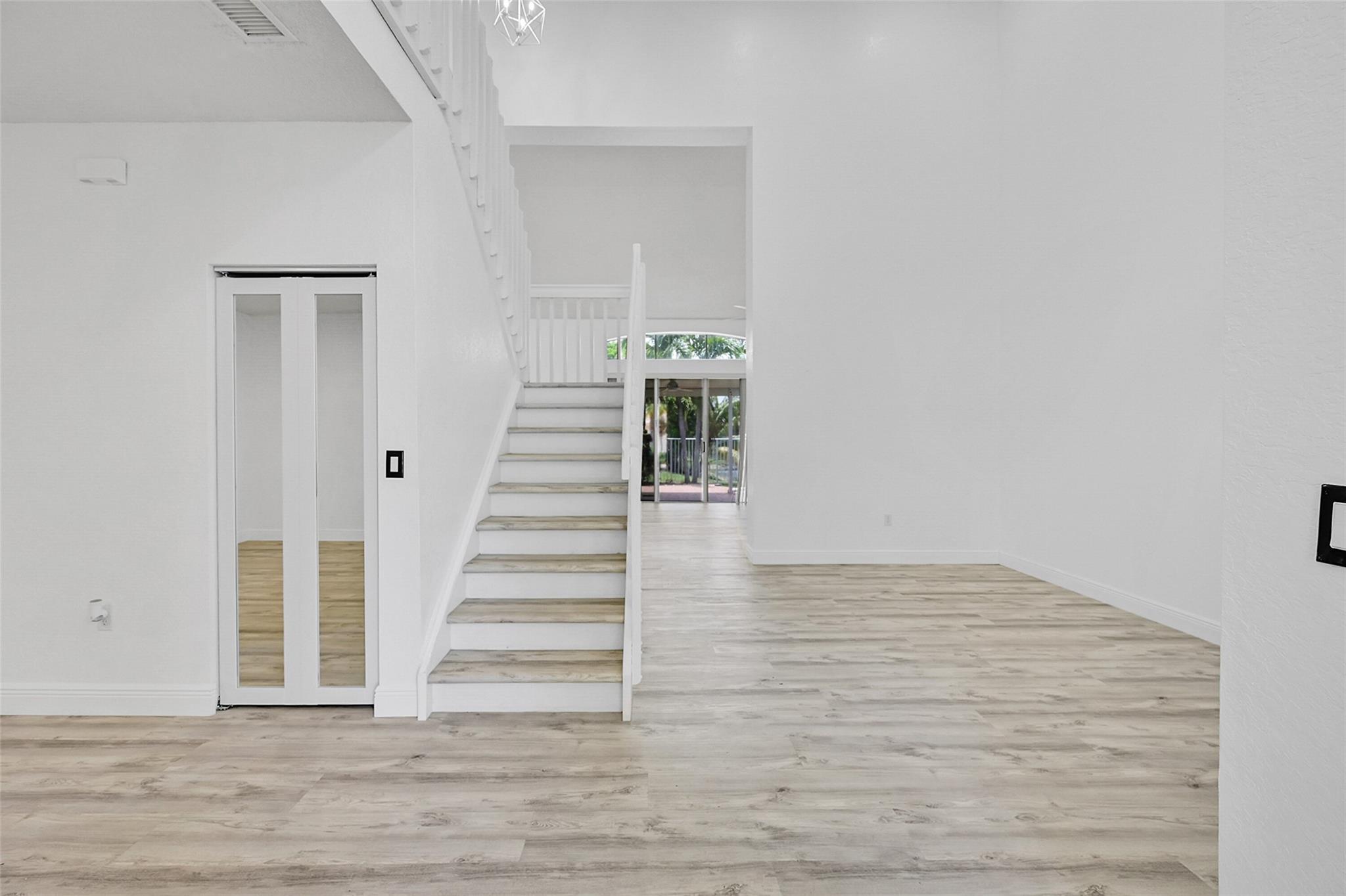 Live the dream in this beautifully updated 4/3.5 home in a gated community with a 3-car garage & lake views. 2 Primary bedrooms with bathrooms. Enjoy a first-floor primary suite, newly remodeled modern white kitchen with quartz counters and brand-new SS Samsung Bespoke appliances. Soaring ceilings, luxury waterproof laminate flooring throughout with lifetime warranty. Completely upgraded bathrooms, & hurricane shutters. Perfect for multigenerational living with a 2nd primary like En suite upstairs. Relax in the fenced backyard with your covered patio & room for a pool. Backyard lawn is professional artificial turf with lifetime warranty. Located on a quiet cul-de-sac with access to community pool, gym, fast 2Gig internet & more. Not in a flood zone! Accordion Shutters for your protection.