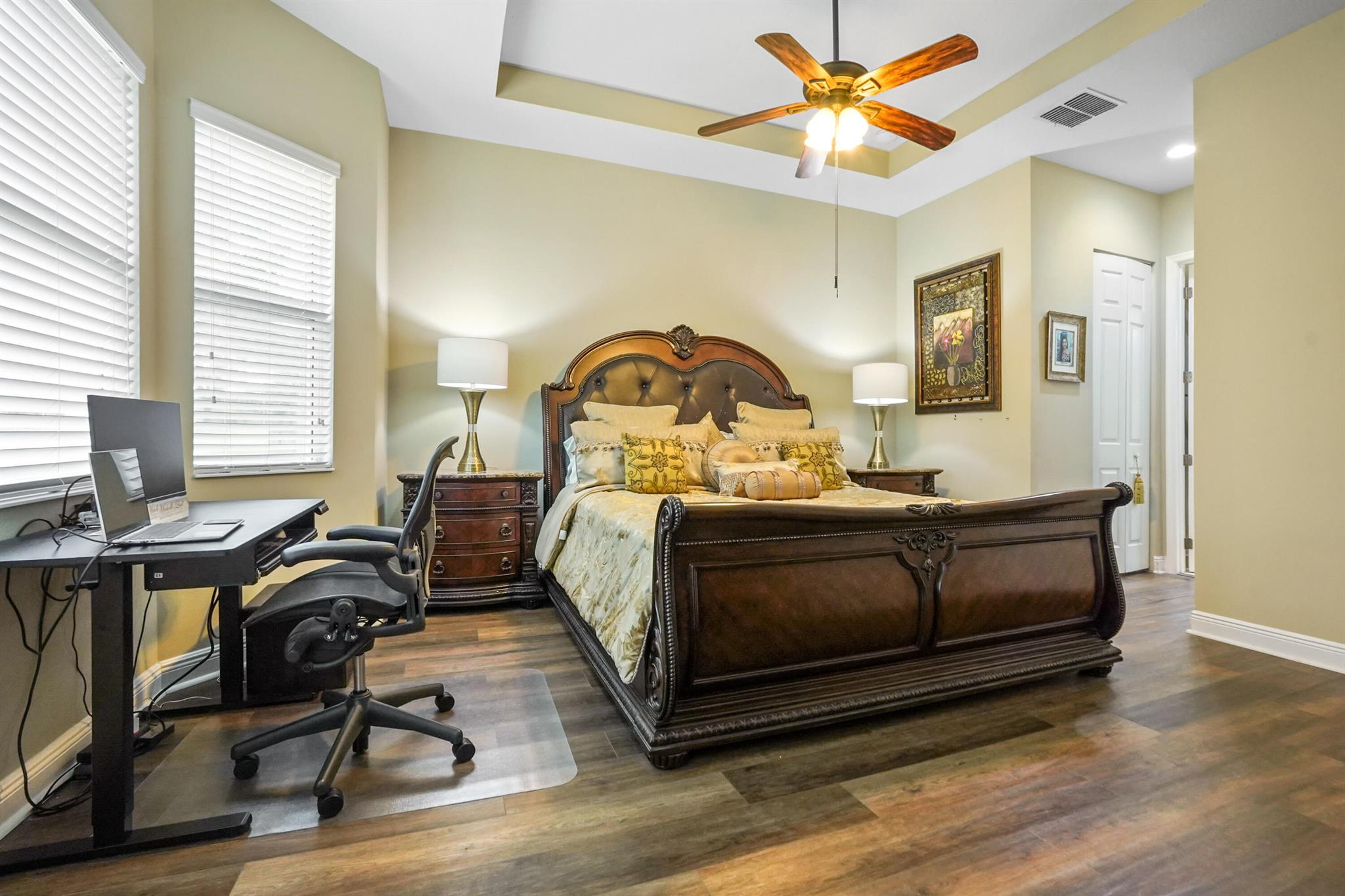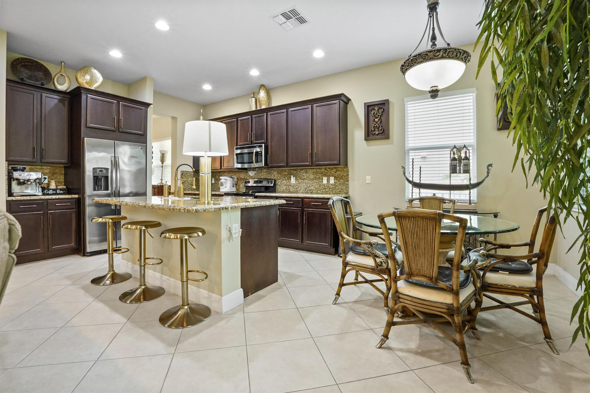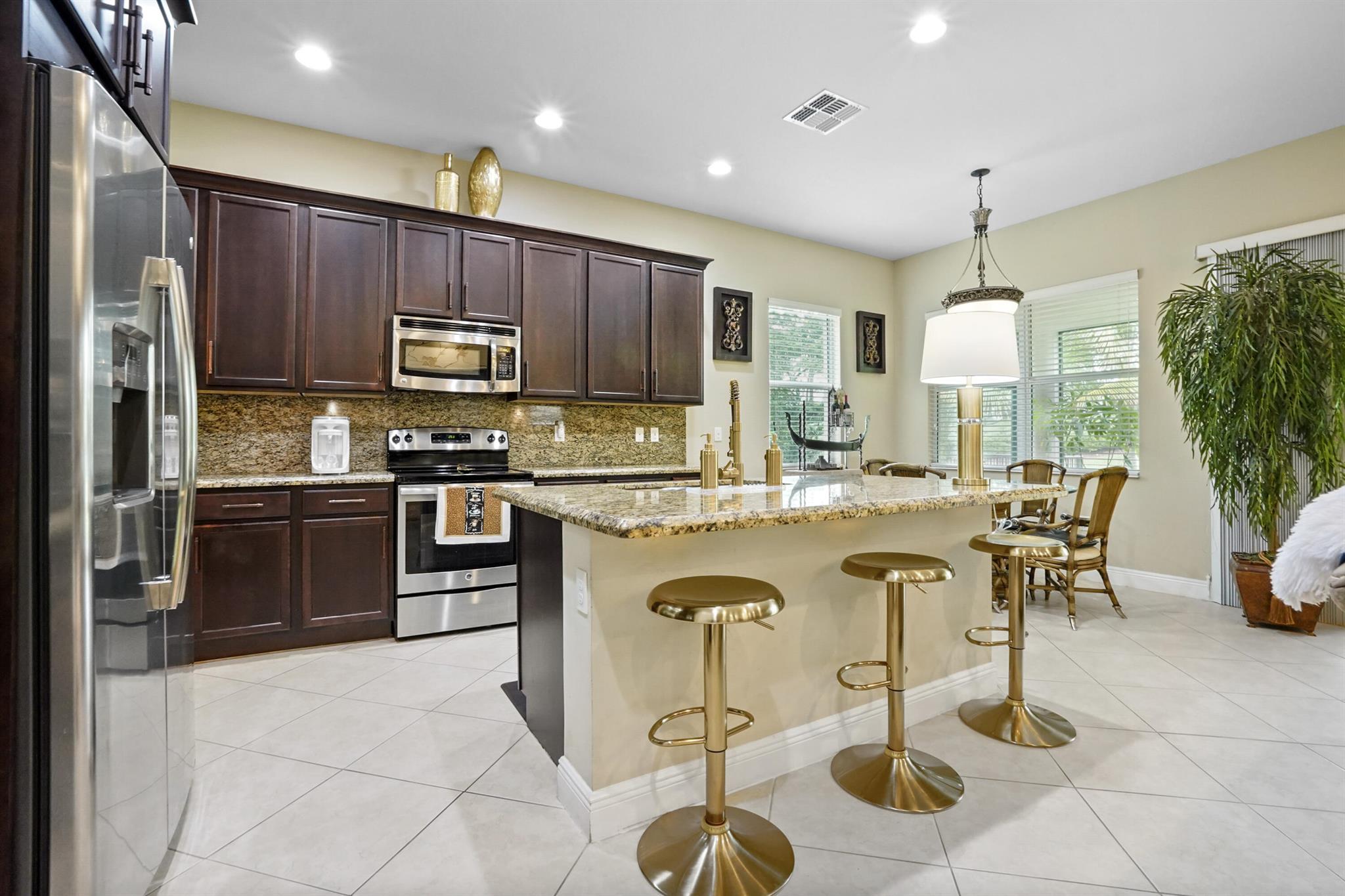 Welcome to this stunning single-family home, perfectly situated on a quiet circle in the desirable gated community of Portosol in Royal Palm Beach. The residence offers 3 bedrooms and 2 bathrooms with exceptional curb appeal, featuring attractive Mediterranean architecture with a tile roof, impact windoews a paver driveway, and lush tropical landscaping. A spacious, arch-covered entry leads to an elegant dark wood front door, setting a sophisticated tone from the moment you arrive.