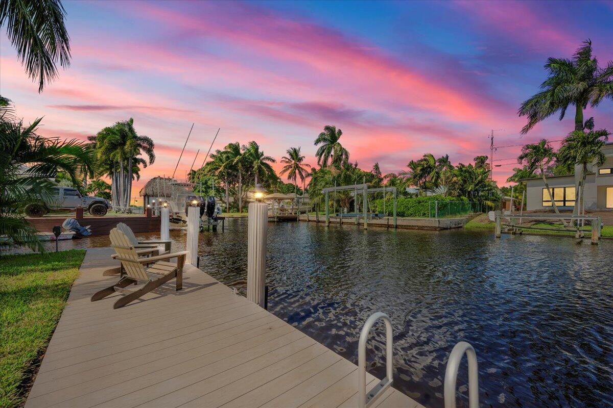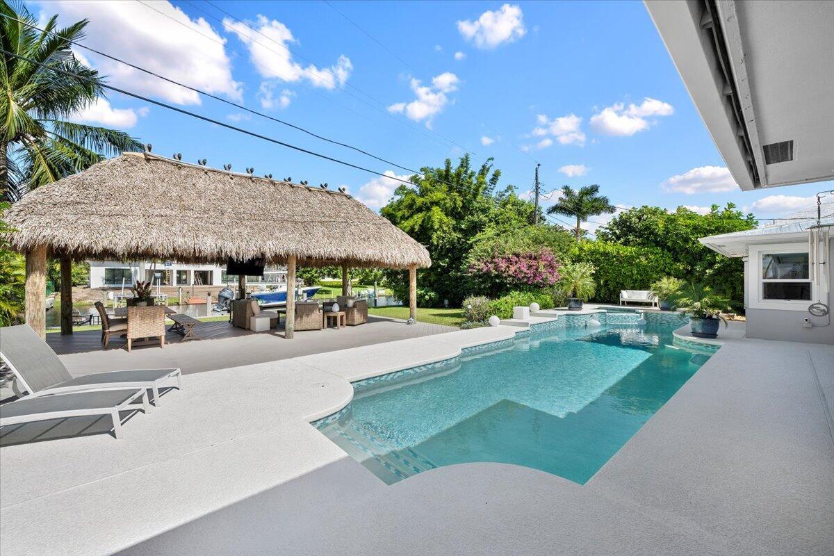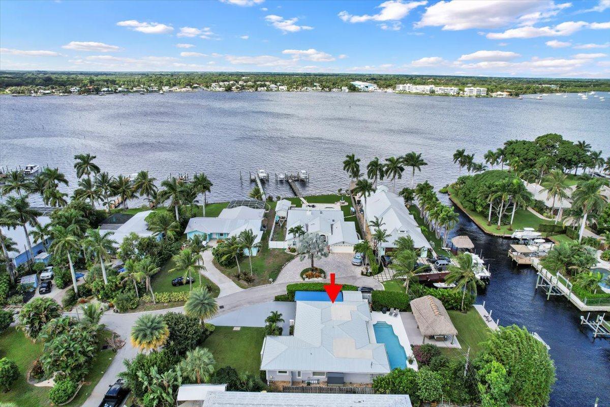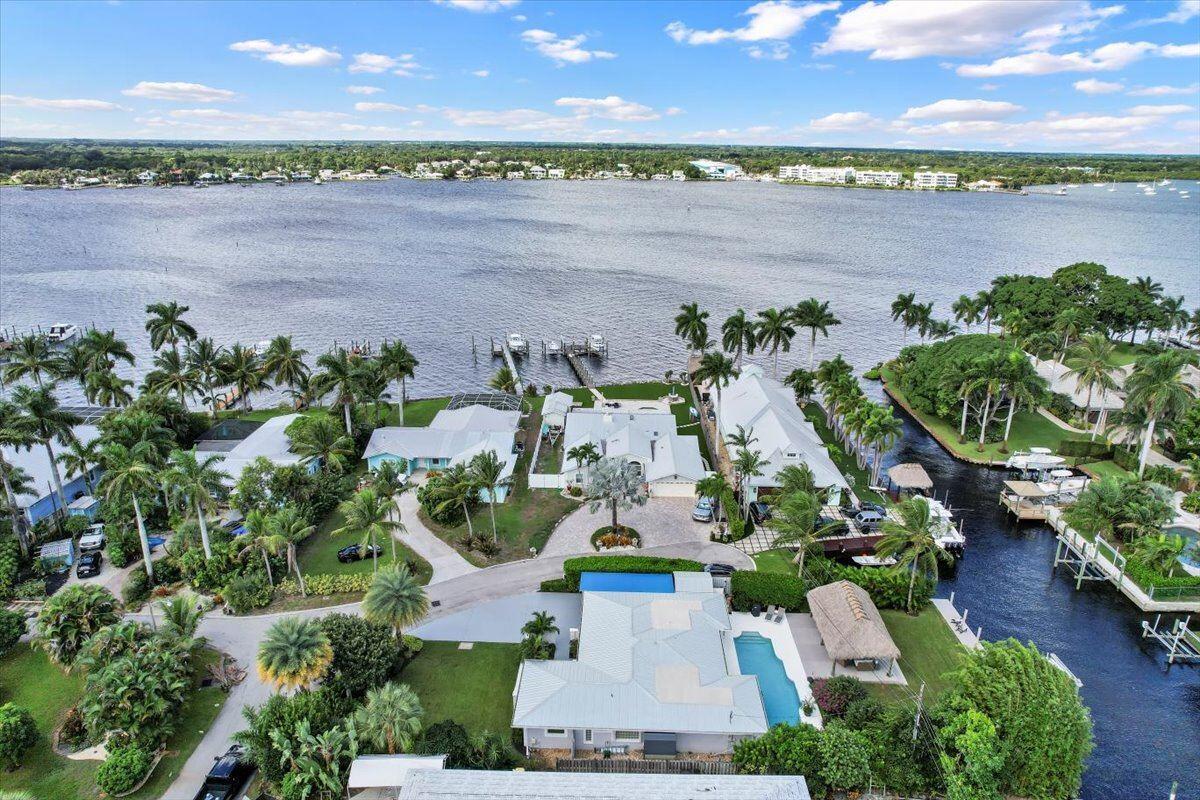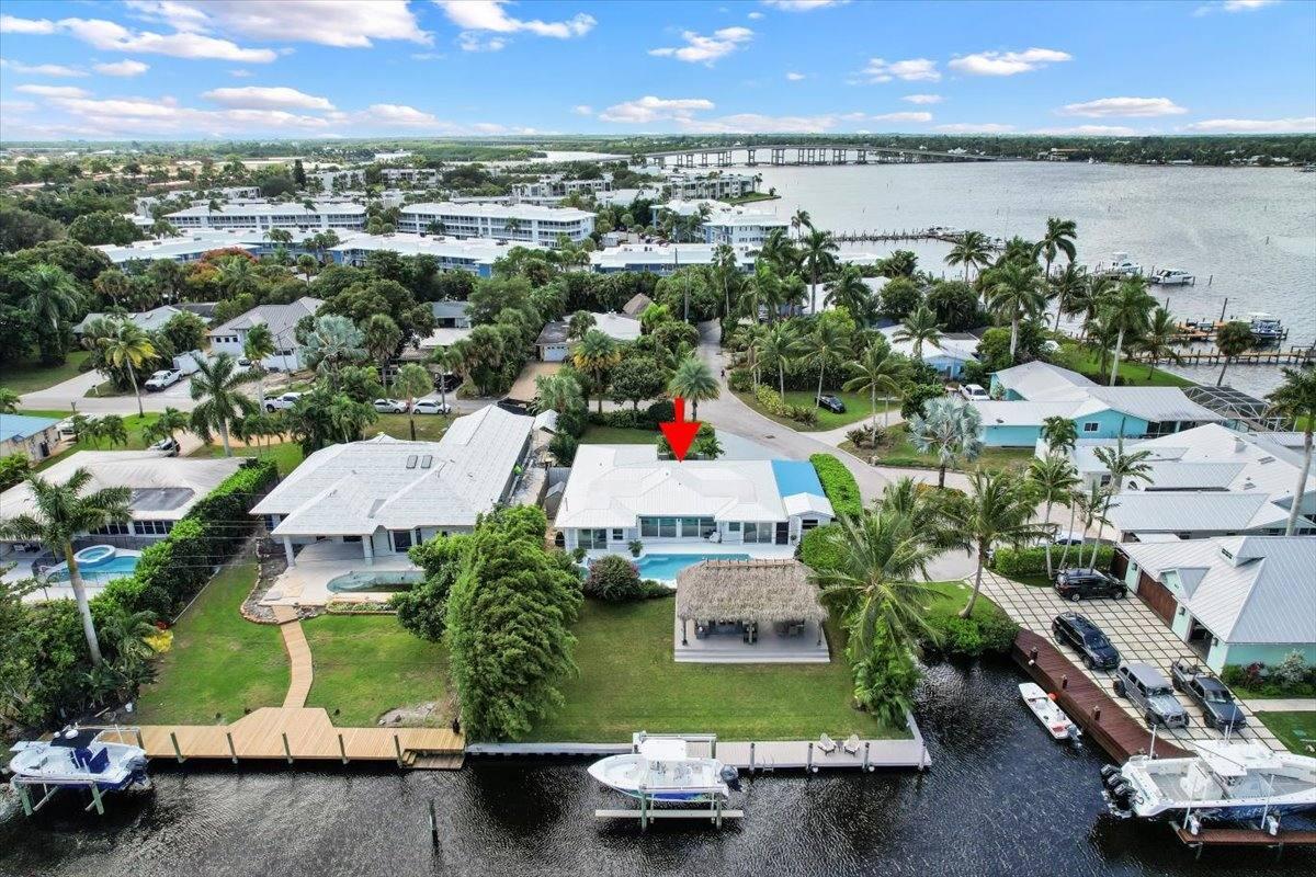 Waterfront paradise Awaits! Escape to your beautiful renovated home featuring a 52' boat dock/14000 lb lift, pool, tiki hut and minutes from downtown Stuart. The open-concept, 3 bedroom 2.5 bath floor plan is designed for entertainment. Gourmet kitchen and appliances with quartz and thermador wine cooler. Unattached bonus office. Impact windows and doors with 2020 metal roof.