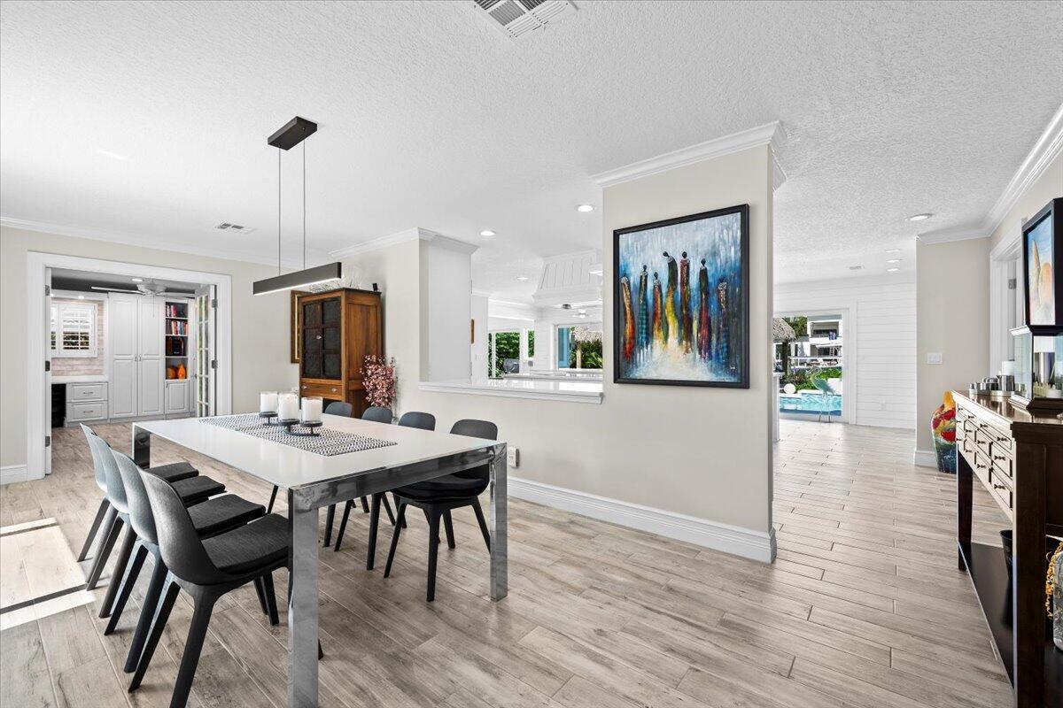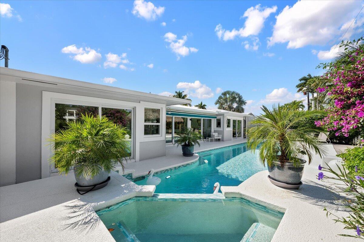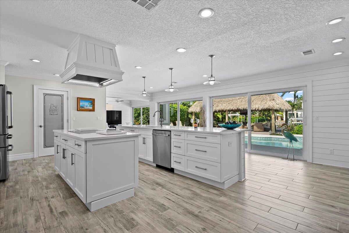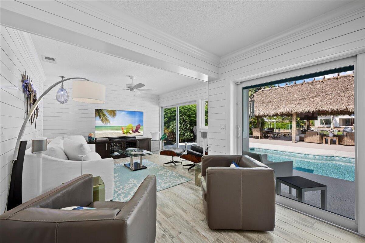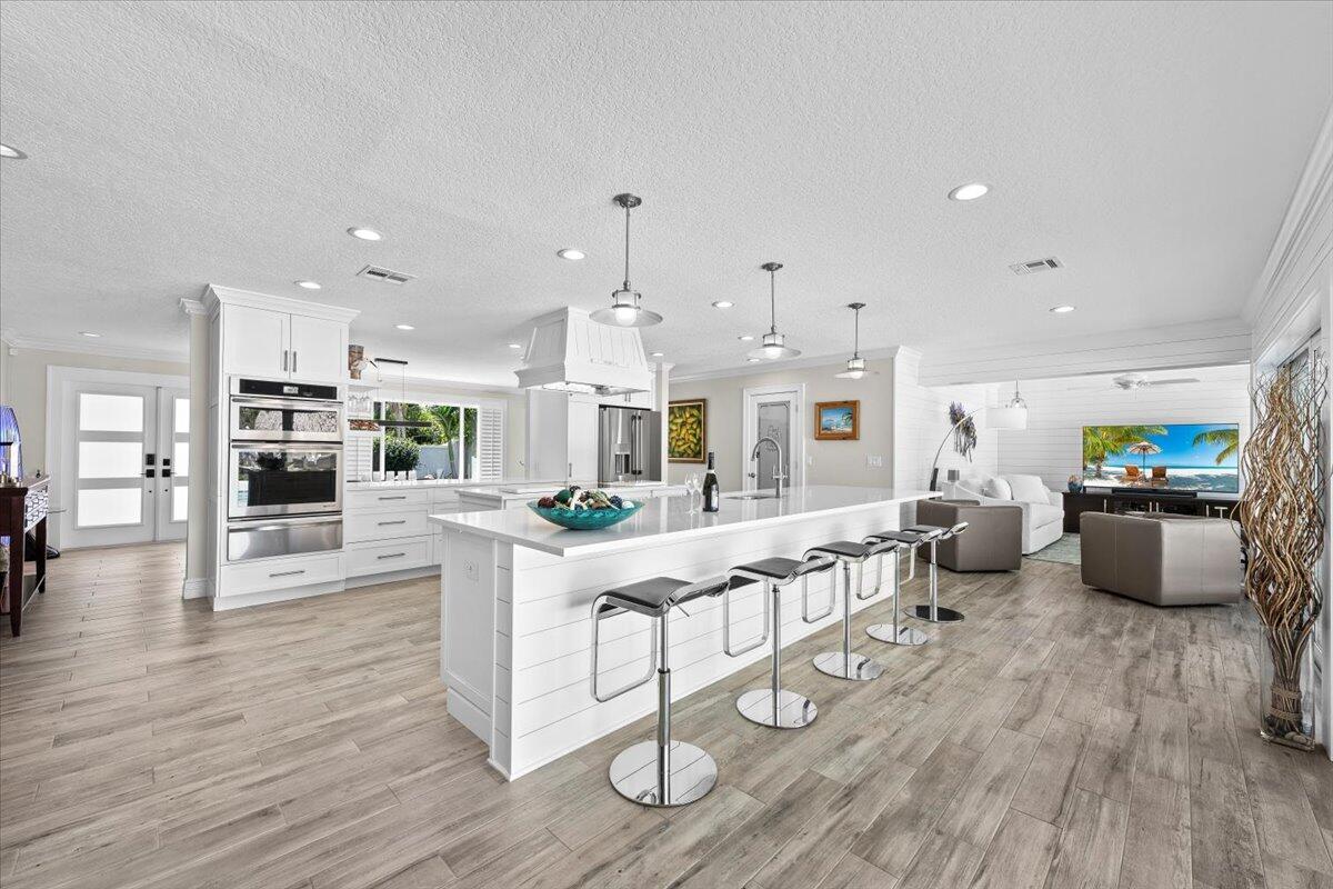Waterfront paradise Awaits! Escape to your beautiful renovated home featuring a 52' boat dock/14000 lb lift, pool, tiki hut and minutes from downtown Stuart. The open-concept, 3 bedroom 2.5 bath floor plan is designed for entertainment. Gourmet kitchen and appliances with quartz and thermador wine cooler. Unattached bonus office. Impact windows and doors with 2020 metal roof.