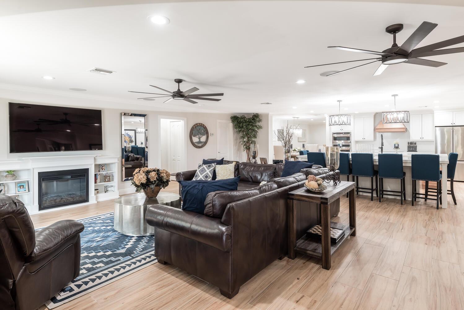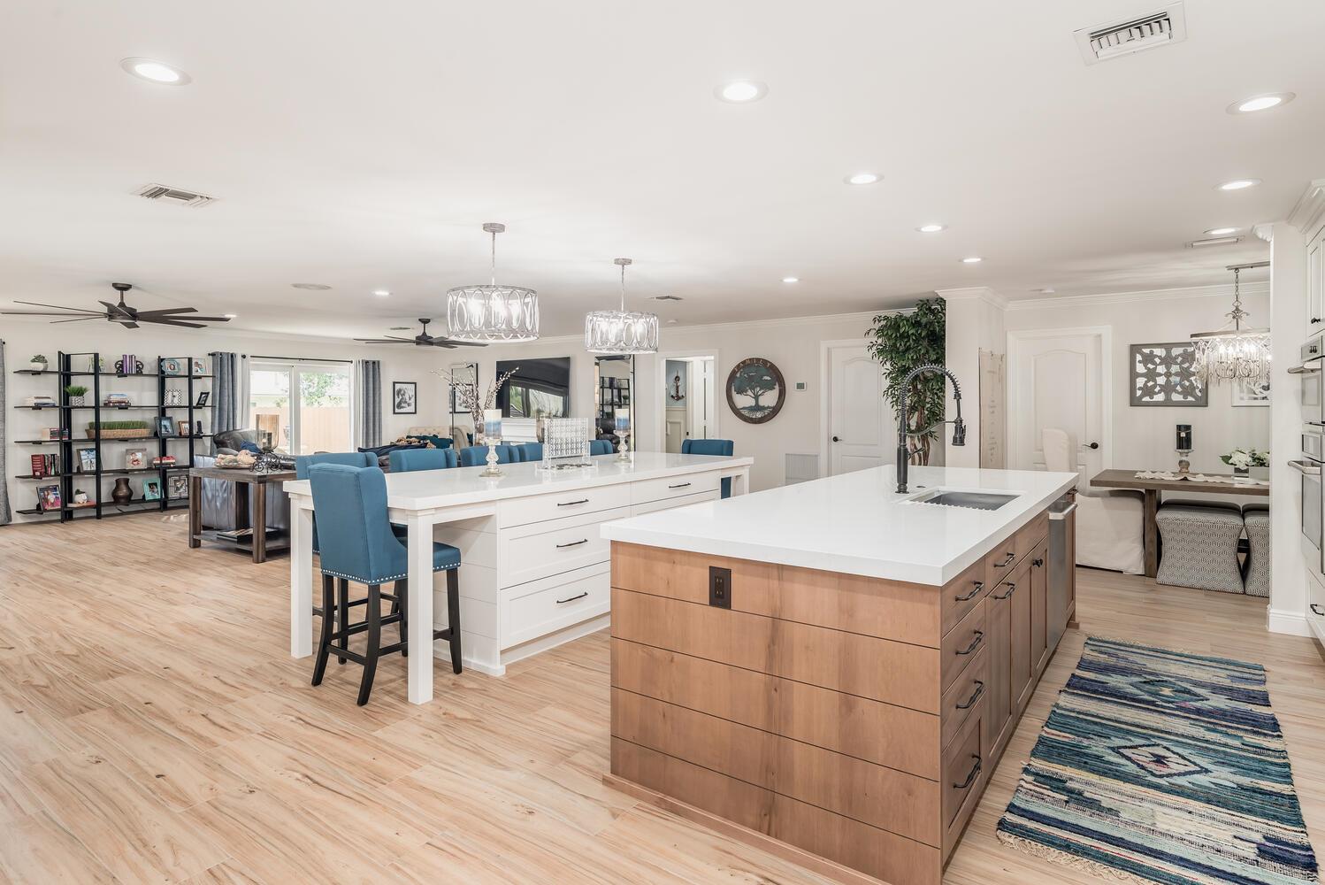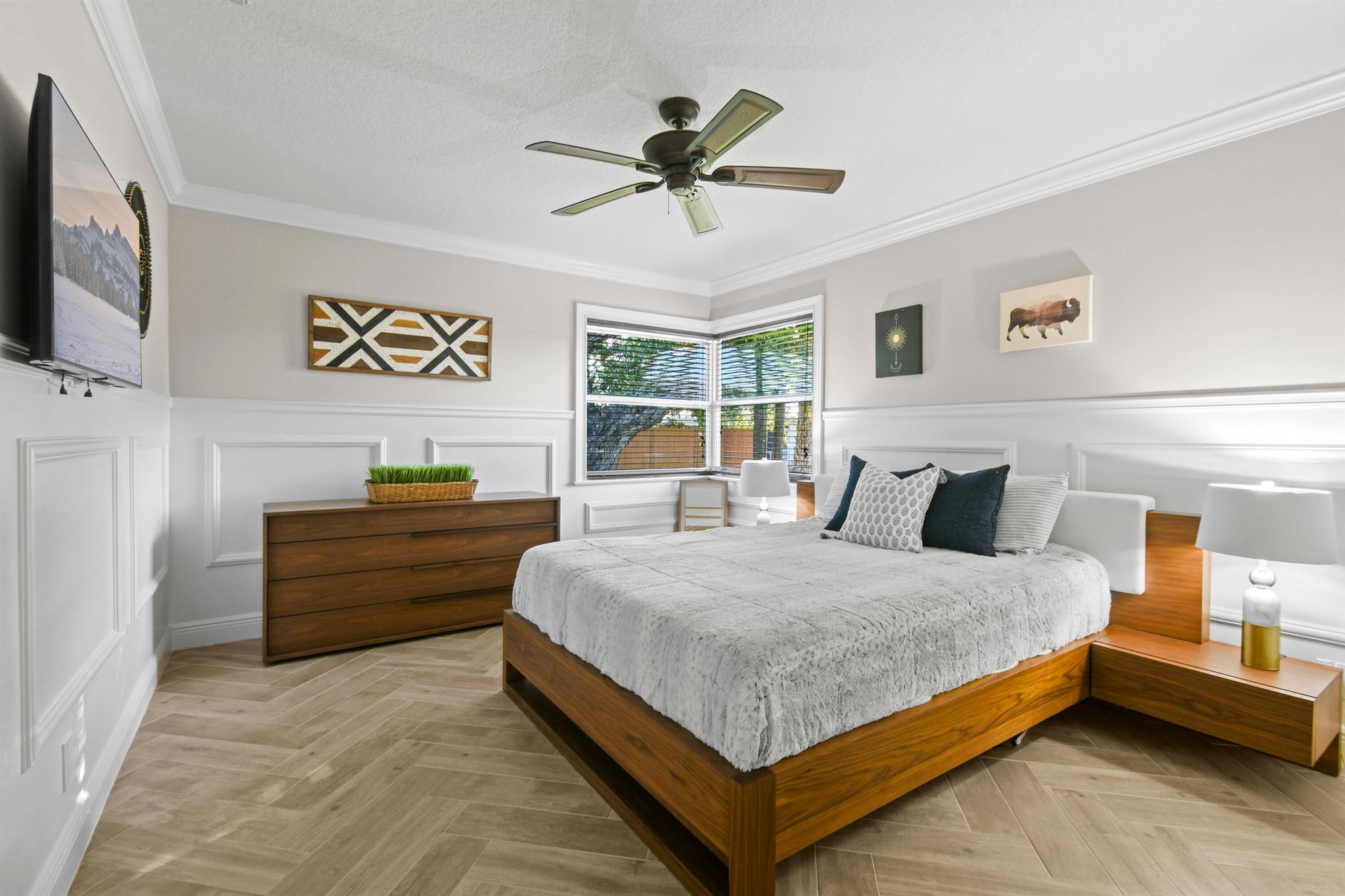 Welcome to your Palm Beach Gardens paradise--where modern design, comfort, and location come together in perfect harmony.Completely reimagined in 2020, this stunning 5-bedroom, 4-bathroom CBS home spans over 3,200 square feet of light-filled, open-concept living. Every detail has been thoughtfully curated to deliver both style and function, creating a residence that feels as luxurious as it is livable.Step inside and be immediately captivated by the home's clean, modern lines and airy flow. The heart of the home is the custom chef's kitchen, featuring dual marble-topped islands, shaker cabinetry, and premium Cafe appliances--including a wine fridge--ideal for both entertaining and everyday living. The open living and dining spaces are unified by modern wood-look tile floors,