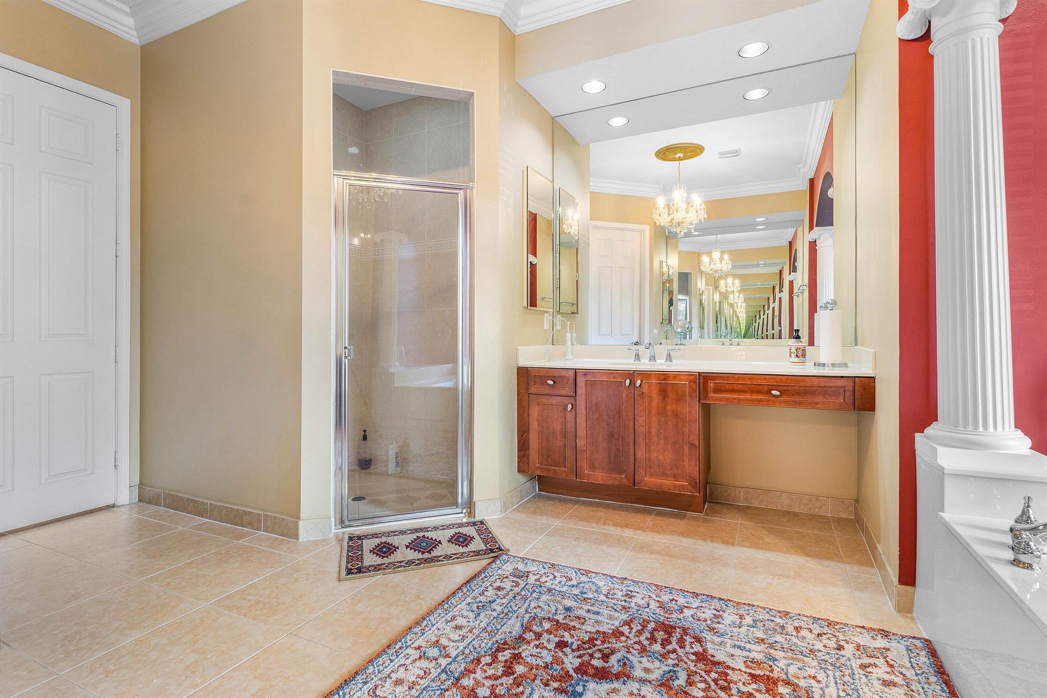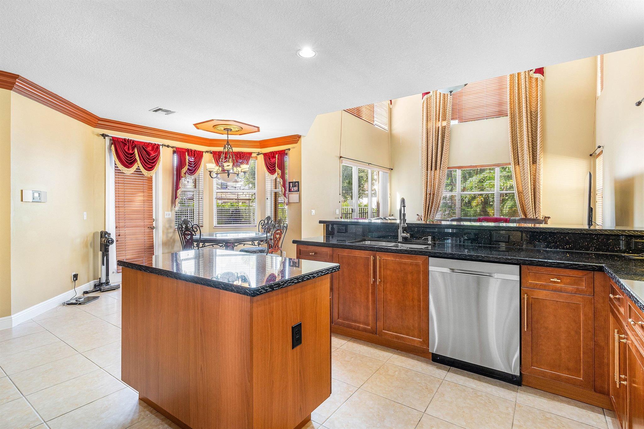 Welcome Home! This immaculately maintained 5-bedroom, 4-bathroom pool home with a 3-car garage is what you've been looking for. Enjoy soaring high ceilings, upgraded crown molding, partial water views, and a spacious 3-way split floor plan. The primary suite, located on the first floor, features a cozy sitting area, his-and-hers walk-in closets, and a luxurious en-suite with dual vanities, a soaking tub, and a separate walk-in shower. An additional full bedroom and bathroom are also conveniently located on the main level as well as a den that could be a 6th bedroom. Upstairs, you'll find a loft, plus 3 additional bedrooms and 2 additional full bathrooms. The kitchen offers newer stainless appliances and beautiful dark granite countertops.