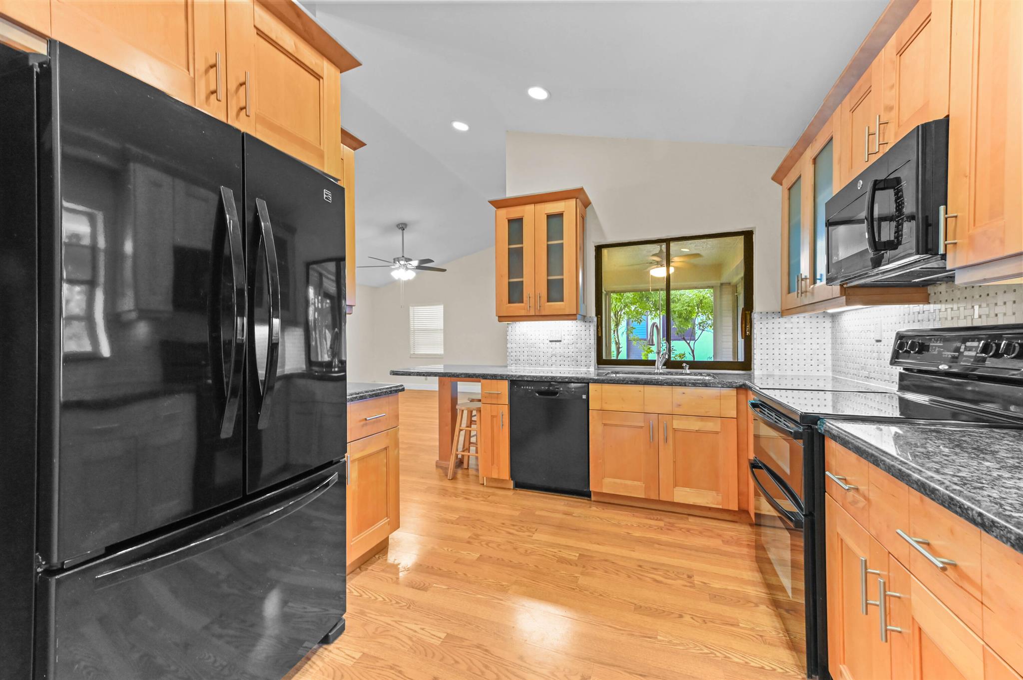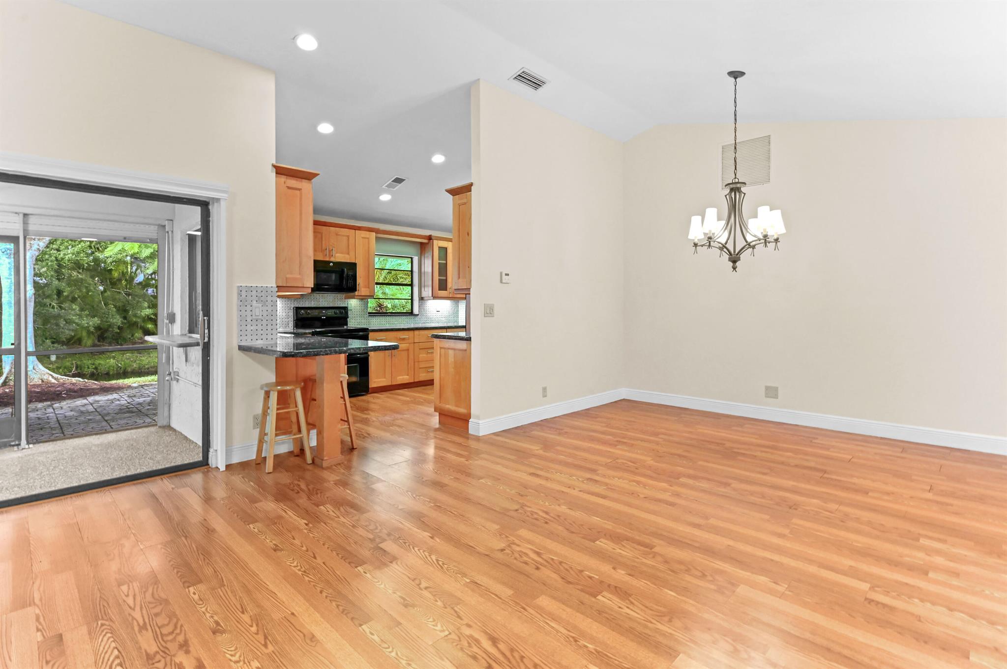 Welcome to this charming 1-story home in Ramblewood Villas, offering 1,456 sq. ft. of comfortable living space on a beautiful waterfront lot. This residence features 3 bedrooms, 2 bathrooms, and a 1-car attached garage.Step through the double main doors that fill the entryway with natural daylight and into a bright, open living area with laminated flooring throughout. The kitchen is designed for both style and function, featuring granite countertops, high-end appliances, and ample cabinetry. The primary bedroom offers a relaxing retreat, featuring a large walk-in closet and an upgraded en-suite bathroom with a walk-in shower and dual vanities. Additional highlights include a full-size washer and dryer conveniently located in the garage.