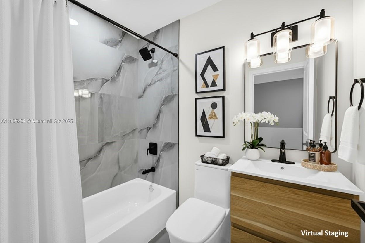 Imagine Sunday mornings in your stunning new kitchen, custom cabinets gleaming as sunlight streams through impact windows onto luxurious porcelain floors. Kids laugh in your private Zen garden while coffee brews. This exquisitely remodeled 5-bed, 3-bath, 2054 sf Hammocks sanctuary is where your story begins. Grandparents thrive in the downstairs suite, a spa retreat with brushed gold fixtures offering total independence. Upstairs, four cozy bedrooms give everyone their own sanctuary. Enjoy dinners under soft recessed lights, then gather in the living room where a gorgeous chandelier casts a magical glow. Walk to A-rated schools, explore lakeside parks, or ice skate on hot Miami days. This Hammocks oasis wraps you in resort-style serenity. Ready to make this luxury beauty your forever home?