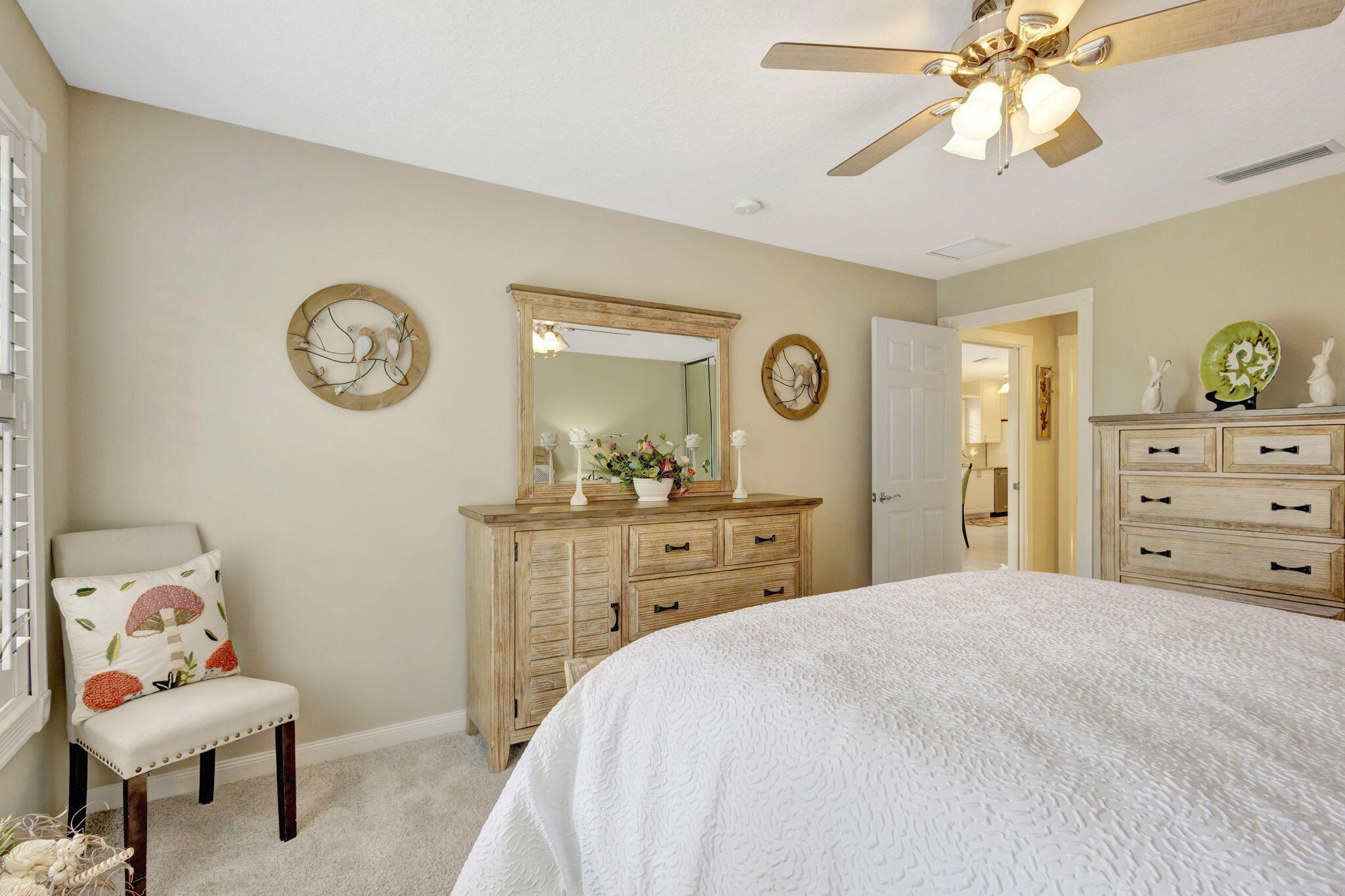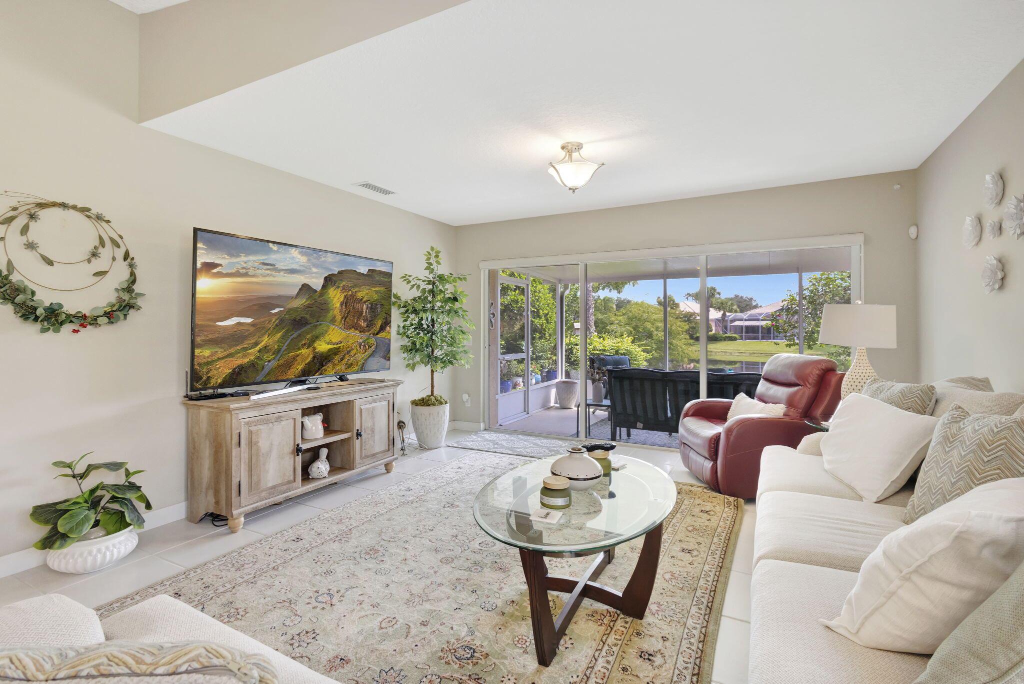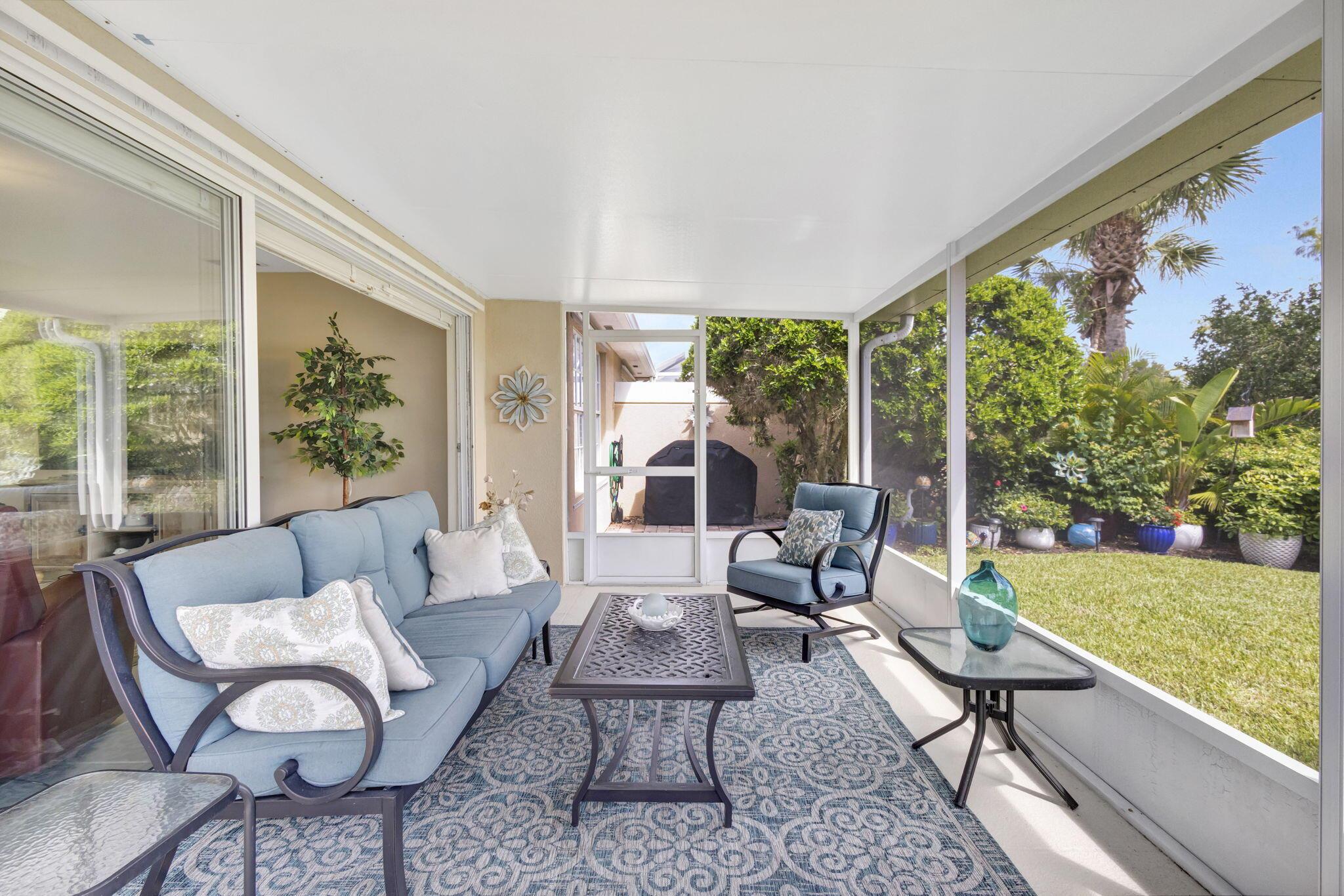 Move right in and embrace the Tradition lifestyle! This beautifully maintained and tastefully updated 2-bed, 2-bath extended villa combines comfort, style, and convenience--all just a short stroll from Tradition Square's vibrant shopping, dining, and parks. Both bedrooms are generously sized, each with ensuite baths, walk-in closets, and a smart split layout that ensures privacy for owners and guests. The updated kitchen serves as the heart of the home, featuring beautiful granite countertops, a sleek tile backsplash, and a breakfast bar that opens seamlessly to the light-filled living and dining areas--perfect for both everyday living and entertaining. Notable upgrades include custom landscaping, plantation shutters, a mix of tile, laminate, and carpet flooring, and a spacious laundry roo
