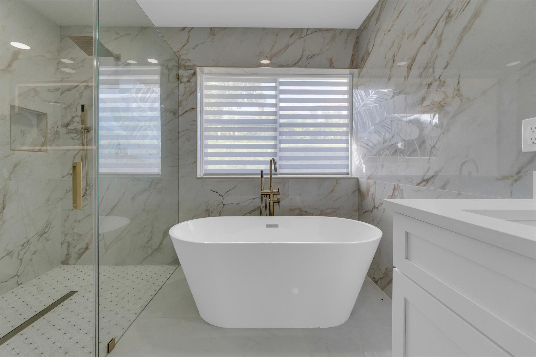 Fully renovated 4BR/3BA home in West Boca Raton with canal views and modern finishes! Features include new exterior paint, hurricane-impact front double door, an open floor plan with high ceilings, and porcelain tile throughout the first floor and patio. The kitchen boasts quartz countertops, 42'' shaker cabinets, and new Kitchen Aid stainless steel appliances. Spacious downstairs primary suite with walk-in custom closets, spa-style bath with large shower and stand-alone tub. Upstairs has waterproof laminate flooring and custom walk-in closets. New AC (2025), roof (2022), and new LG washer/dryer. Prime location near Whole Foods, Sprouts, Home Depot, restaurants, West Boca Library, and A-rated schools. Move-in ready and beautifully upgraded!