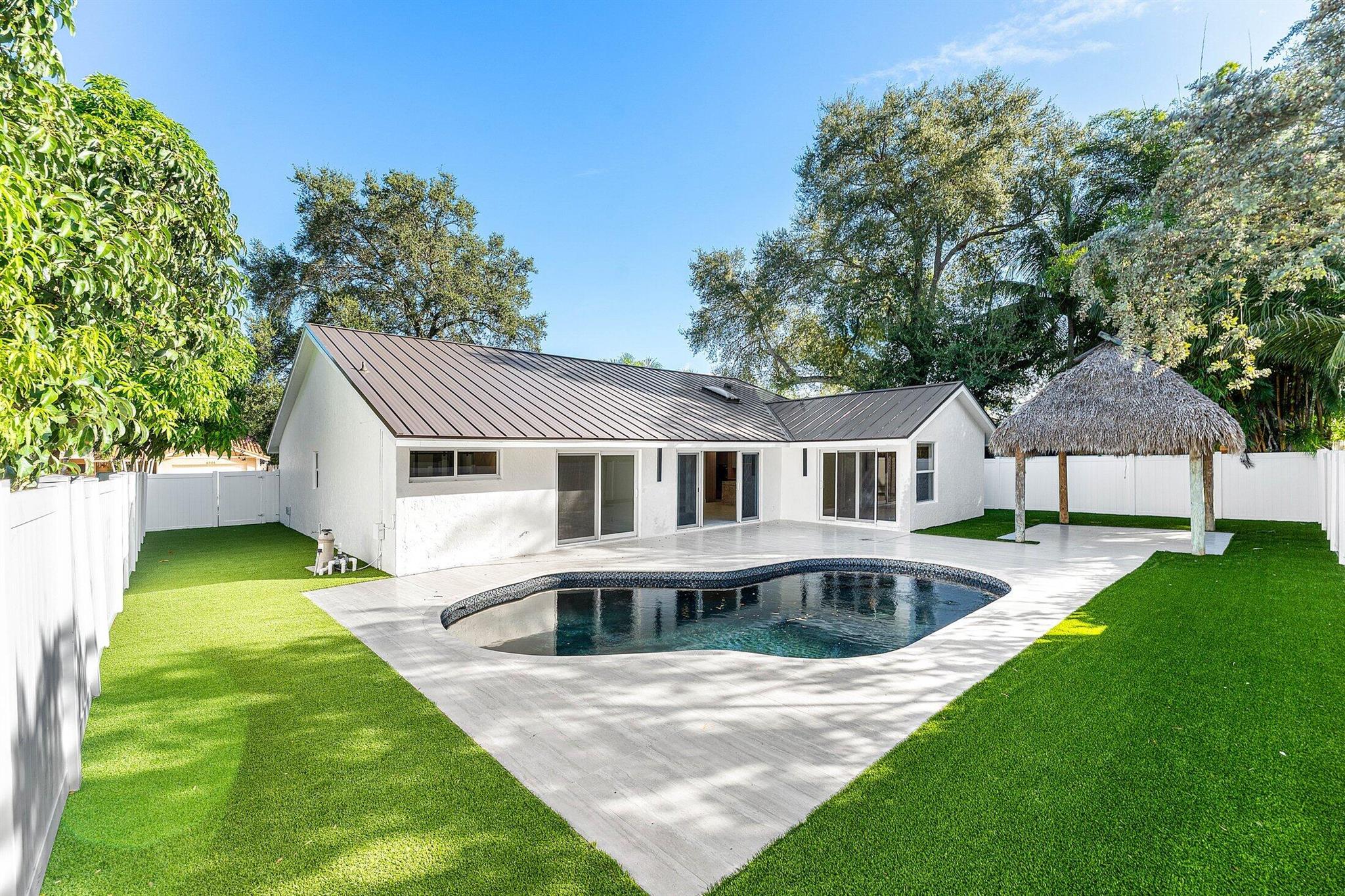 Fully remodeled 4 bedroom 2 bath home with A schools. This house has designer kitchen with all brand new Dacor Appliances, extra large island. Brand new turf in the backyard, pool was remarcited in 2025. Windows are impact, new metal roof.