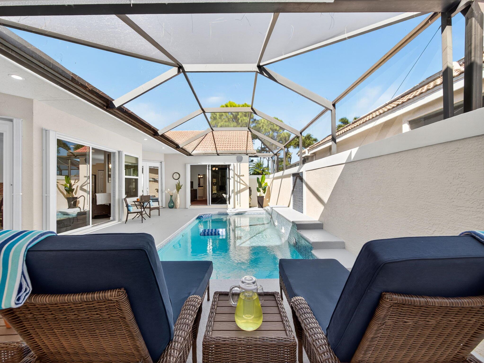 Welcome to Lake Charles, where serene lakes, sprawling preserves, and resort-style amenities meet the convenience of St. Lucie West living! This meticulously maintained 3-bedroom, 3-bathroom courtyard pool home, featuring a 2-car garage, is move-in ready and packed with upgrades. The home features a renovated kitchen, fresh exterior, and upgraded landscaping. For peace of mind, the entire house has been updated with accordion shutters or hurricane impact windows, complemented by a whole-house generator and tank to power it. Inside, enjoy the open floor plan that looks out onto the private and peaceful courtyard pool. The pool heater has recently been replaced, and the pool has also been resurfaced. From the open floor plan to the five sets of French doors or sliders overlooking the