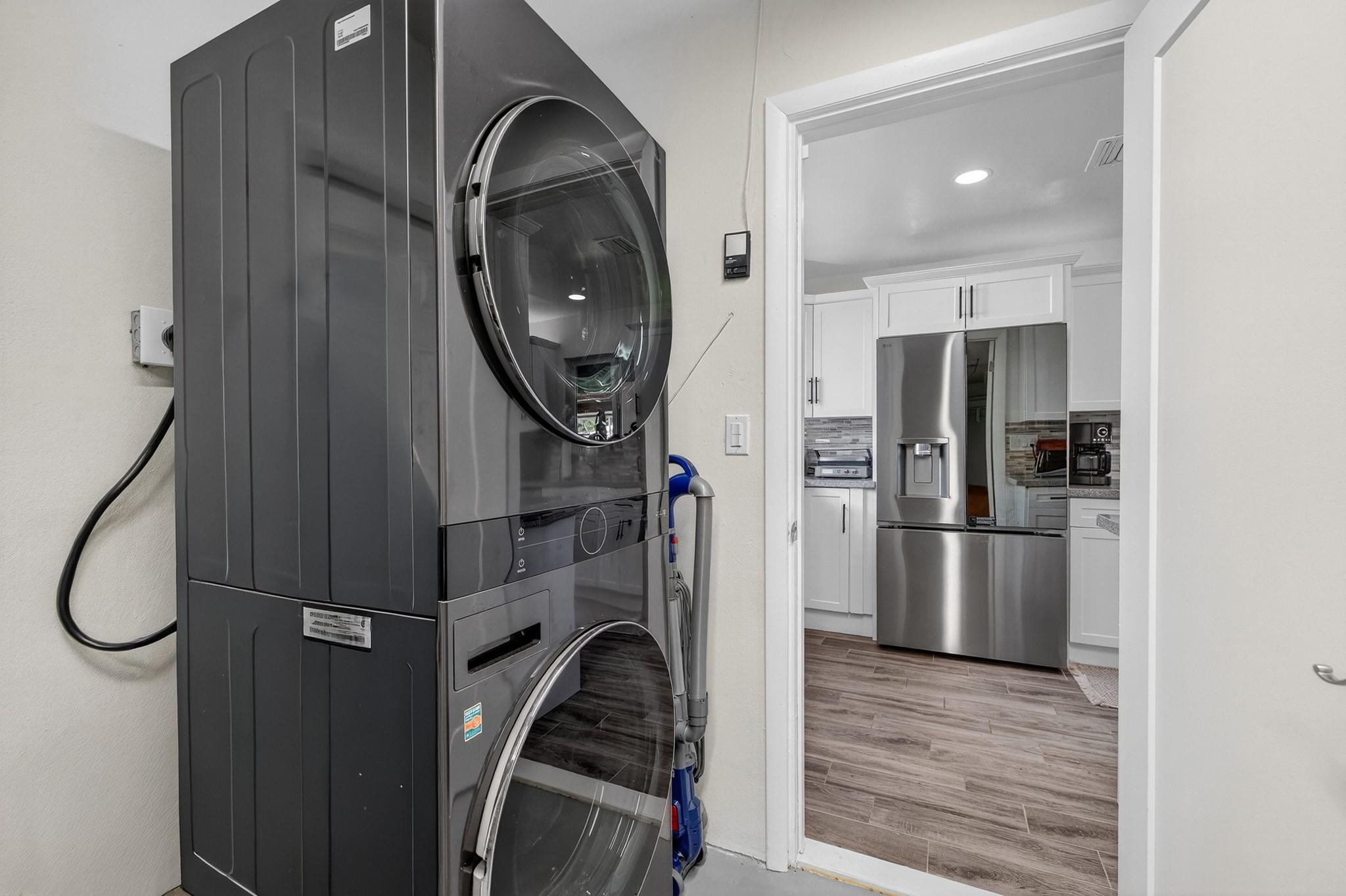 Beautifully renovated 2BR/2BA single-family home with NEW solar on a corner lot in Leisureville! Move-in ready with open, bright floor plan and wood-grain porcelain plank floors throughout. Stunning new kitchen with stainless steel appliances and renovated bathrooms. New washer/dryer, impact windows and doors, updated electrical, roof 2024, AC 2021. Enjoy the enclosed Florida room for relaxing or entertaining. Leisureville offers free 9-hole par-3 golf, 2 pools, 2 clubhouses, shuffleboard, billiards, game room, library, and shuttle bus. Pet-friendly 55+ community (one resident must be 55+). Truly turnkey and ready to enjoy!