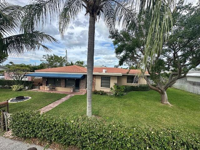 A Florida style home tucked away in a friendly Intracoastal boating neighborhood east of Federal Hwy. & steps from the spillway. This single-family home is on a corner lot, NO HOA, pet friendly neighborhood, fenced yard, Lots of green space and extended patio great for entertaining plenty of room if you would like a pool. and room to accommodate your boat. A mile away launch your boat @ the Boynton boat ramp, which is located across from the Boynton Inlet, prime fishing spots, enjoy waterfront . Updated Kitchen with SS appliances and granite counter tops , Barrel roof 4/2003-electric panel 8/2004, awnings 2019 Tile throughout the home, dining & Boynton Beach's up & coming downtown redevelopment, Has a security system abd 4 zone lawn irrigation system.