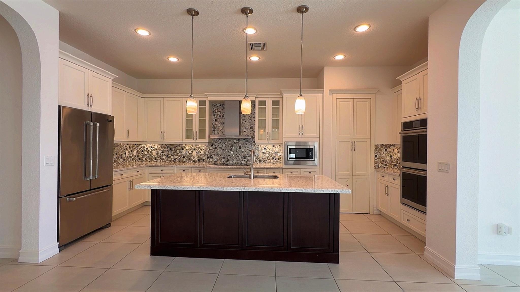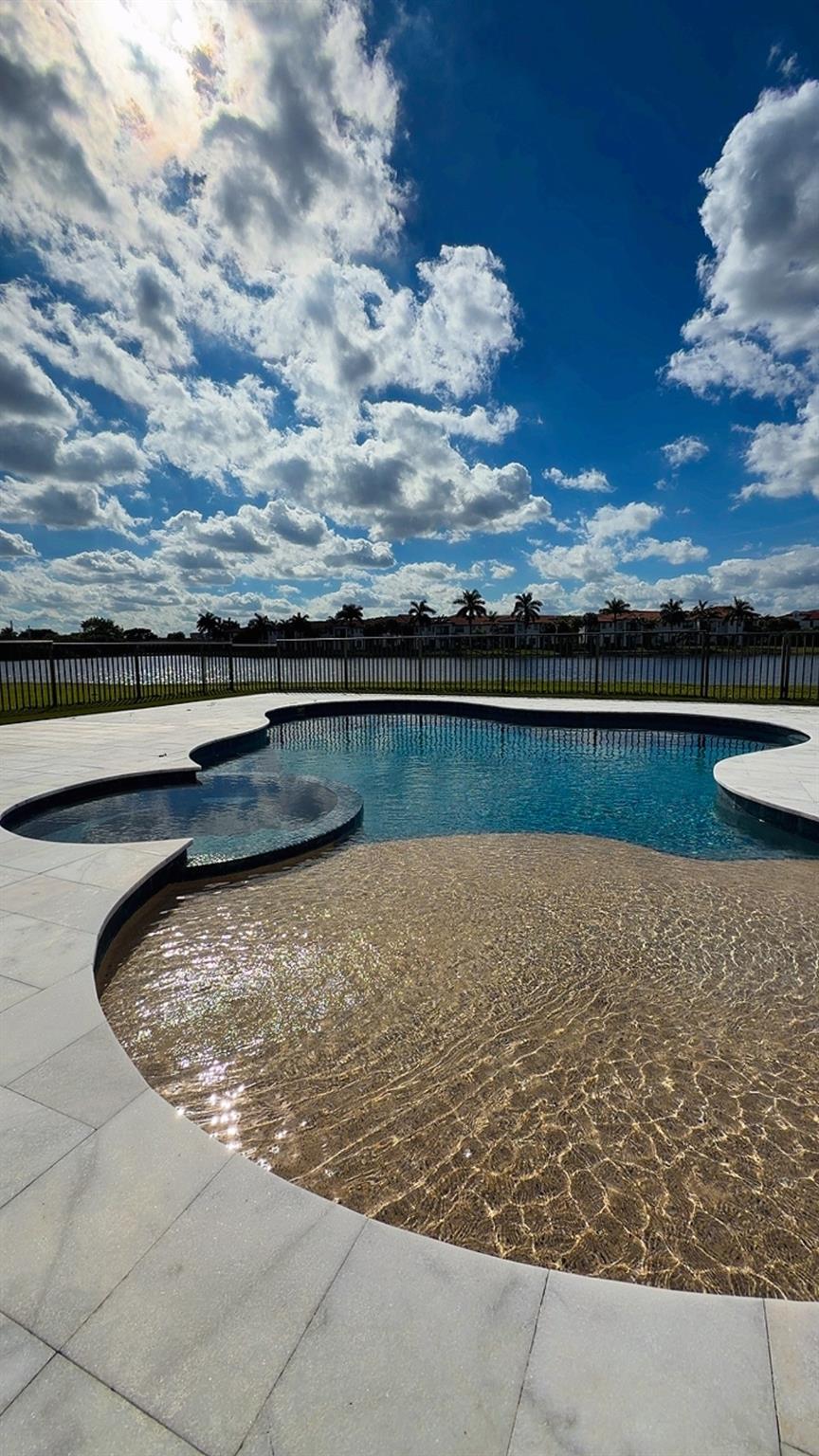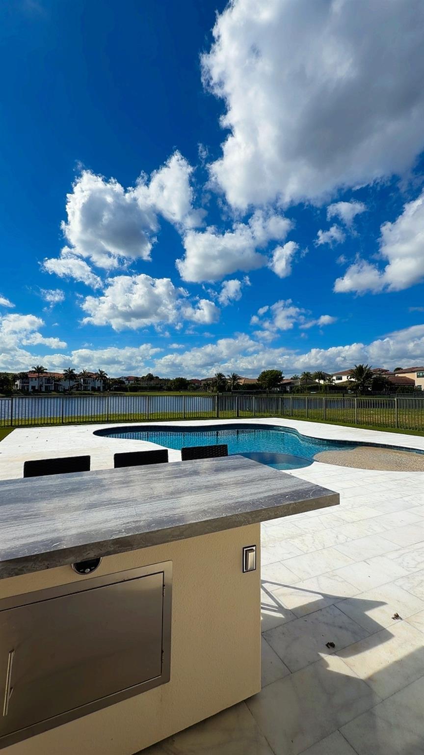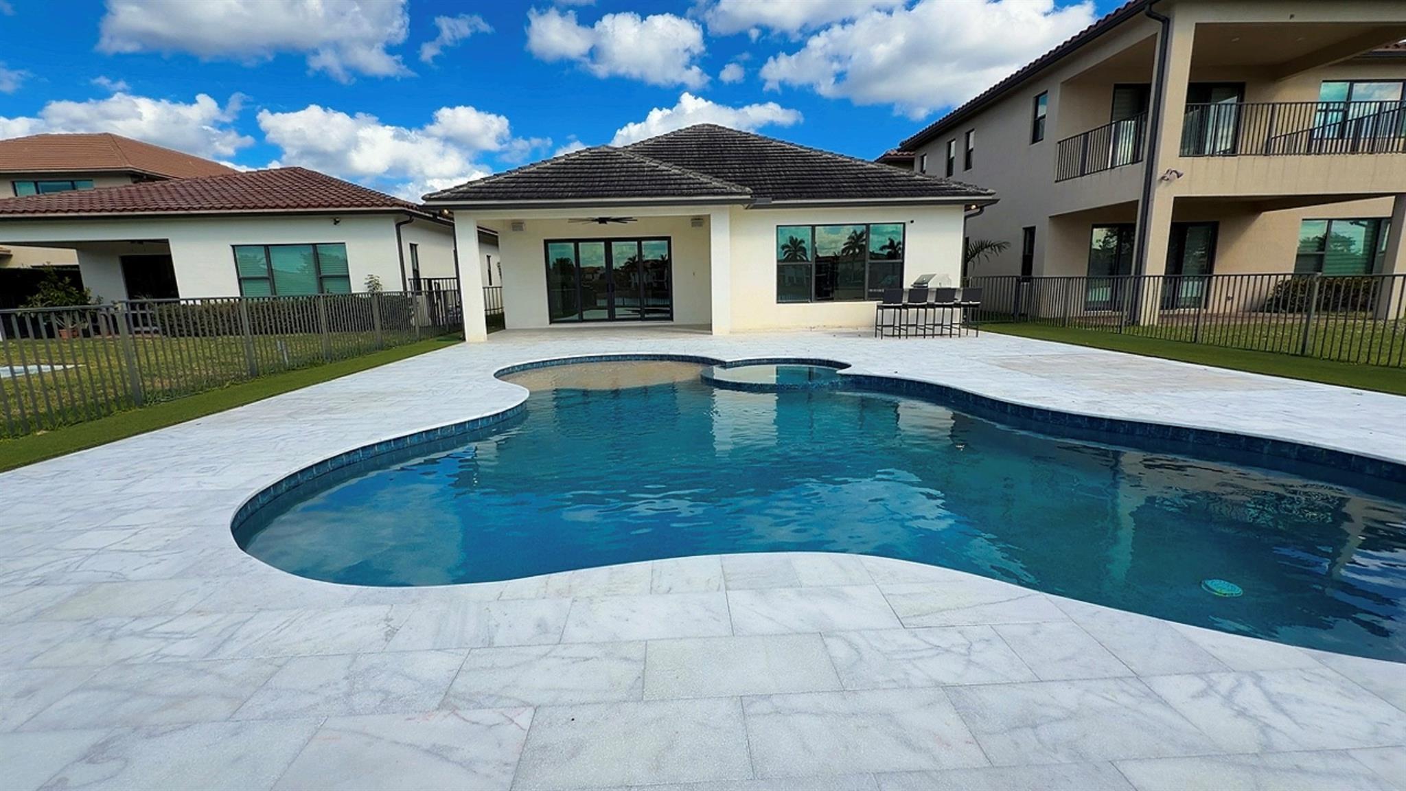Experience modern luxury in this exquisite 3-bedroom, 2.5-bath residence with an open-concept design that seamlessly blends contemporary elegance with comfort, offering breathtaking vistas of the pool and tranquil lake beyond. Fully equipped with SOLAR PANELS, it maintains average electricity costs under $70 per month. A newly installed Vivint smart security system provides peace of mind with advanced home monitoring and seamless smart-home integration. Beautiful gourmet kitchen with premium Jenn-Air appliances, speckled white quartz countertops, a sleek cooktop, double wall ovens, and a spacious center island with custom cabinetry. stunning master bathroom spa-inspired bath with an upgraded soaking tub and jacuzzi. The backyard has been transformed into an entertainer’s paradise.