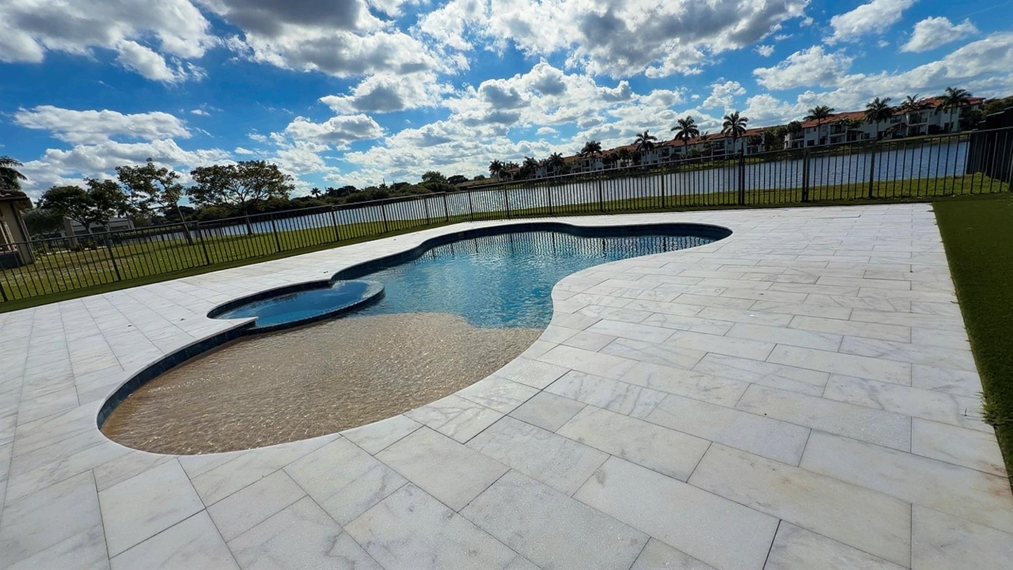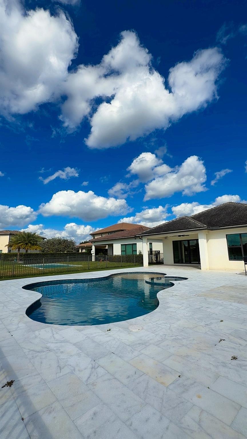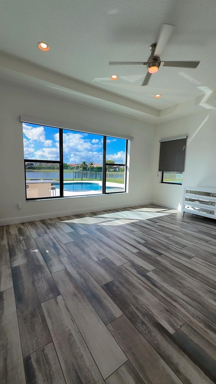 Experience modern luxury in this exquisite 3-bedroom, 2.5-bath residence with an open-concept design that seamlessly blends contemporary elegance with comfort, offering breathtaking vistas of the pool and tranquil lake beyond. Fully equipped with SOLAR PANELS, it maintains average electricity costs under $70 per month. A newly installed Vivint smart security system provides peace of mind with advanced home monitoring and seamless smart-home integration. Beautiful gourmet kitchen with premium Jenn-Air appliances, speckled white quartz countertops, a sleek cooktop, double wall ovens, and a spacious center island with custom cabinetry. stunning master bathroom spa-inspired bath with an upgraded soaking tub and jacuzzi. The backyard has been transformed into an entertainer’s paradise.