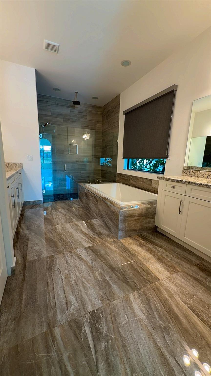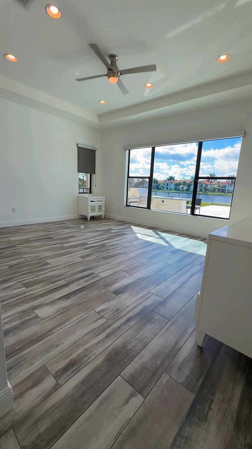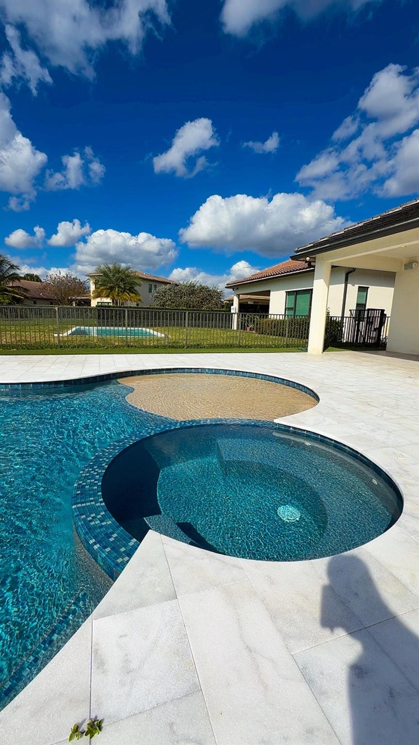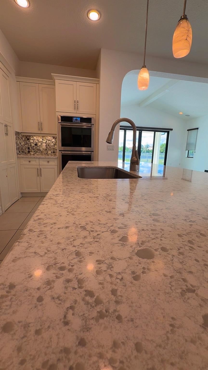 Experience modern luxury in this exquisite 3-bedroom, 2.5-bath residence with an open-concept design that seamlessly blends contemporary elegance with comfort, offering breathtaking vistas of the pool and tranquil lake beyond. Fully equipped with SOLAR PANELS, it maintains average electricity costs under $70 per month. A newly installed Vivint smart security system provides peace of mind with advanced home monitoring and seamless smart-home integration. Beautiful gourmet kitchen with premium Jenn-Air appliances, speckled white quartz countertops, a sleek cooktop, double wall ovens, and a spacious center island with custom cabinetry. stunning master bathroom spa-inspired bath with an upgraded soaking tub and jacuzzi. The backyard has been transformed into an entertainer’s paradise.