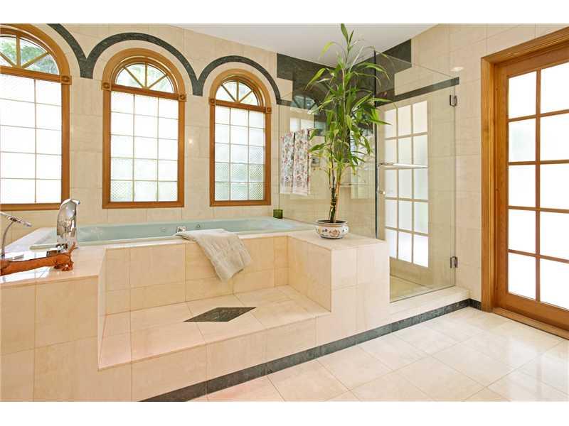 Tropical Paradise with 3 Outdoor Entertainment Areas surrounded by Privacy Wall. Guest house with Steam Sauna, Elegant Entrance with Rectified Porcelain Tile throughout home. Wood French Doors,Crown Molding, Four Inch Base Boards, Hunter Douglas Custom Bl inds, Custom Drapery, Gourmet Kitchen with Breakfast area & Walk-in Pantry, Large MB & 2 custom walk-in closets. All bedrooms have adjoining baths, Six Sky Lights, Electric Overhead Hurricane Shutters and Accordian, New Roof in Main Home