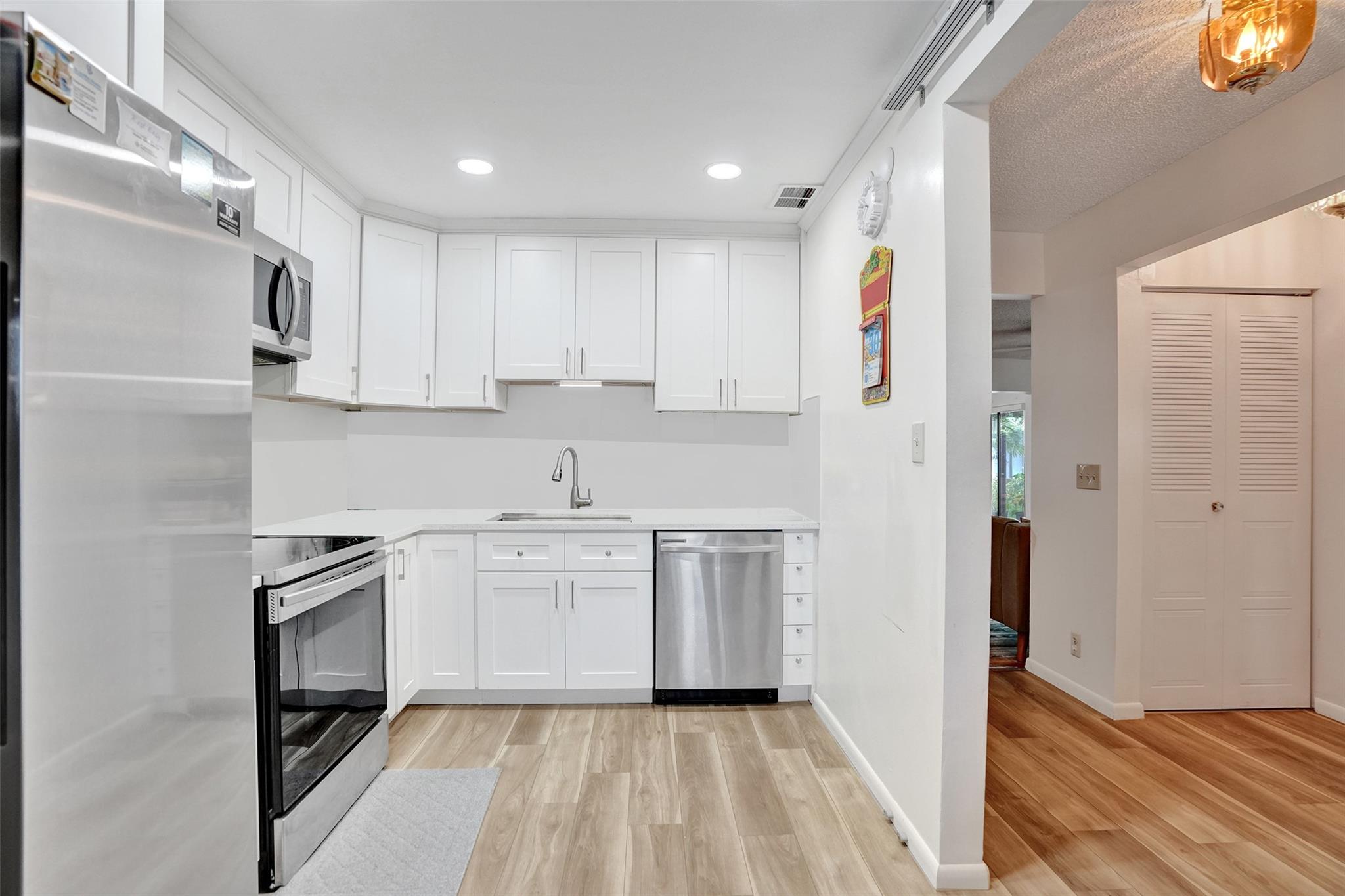 Beautifully updated Sable 1 model, 2-bedroom, 2-bath home in The Meadows of Crystal Lake, an active 55+ community! 1,559 sq. ft. with a brand-new kitchen featuring white shaker cabinets, quartz countertops, and stainless steel appliances. Vinyl flooring throughout. Large primary suite with updated bathroom and walk-in closet; spacious secondary bedroom in a split floor plan with its own updated bath. Open living/dining area flows to a bonus room for den or office. Located along the community’s privacy wall, offering peace and seclusion with gentle background sounds for added character. 2016 roof and 2014 AC. Community amenities include clubhouse, pool, tennis, pickleball, billiards, game room, and library—perfect active adult living!
