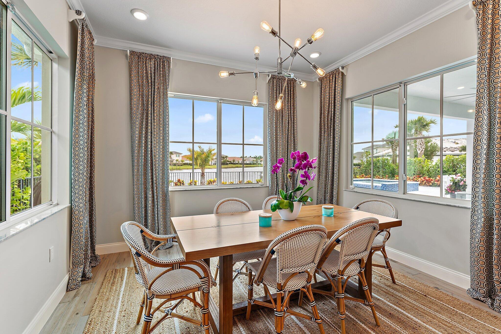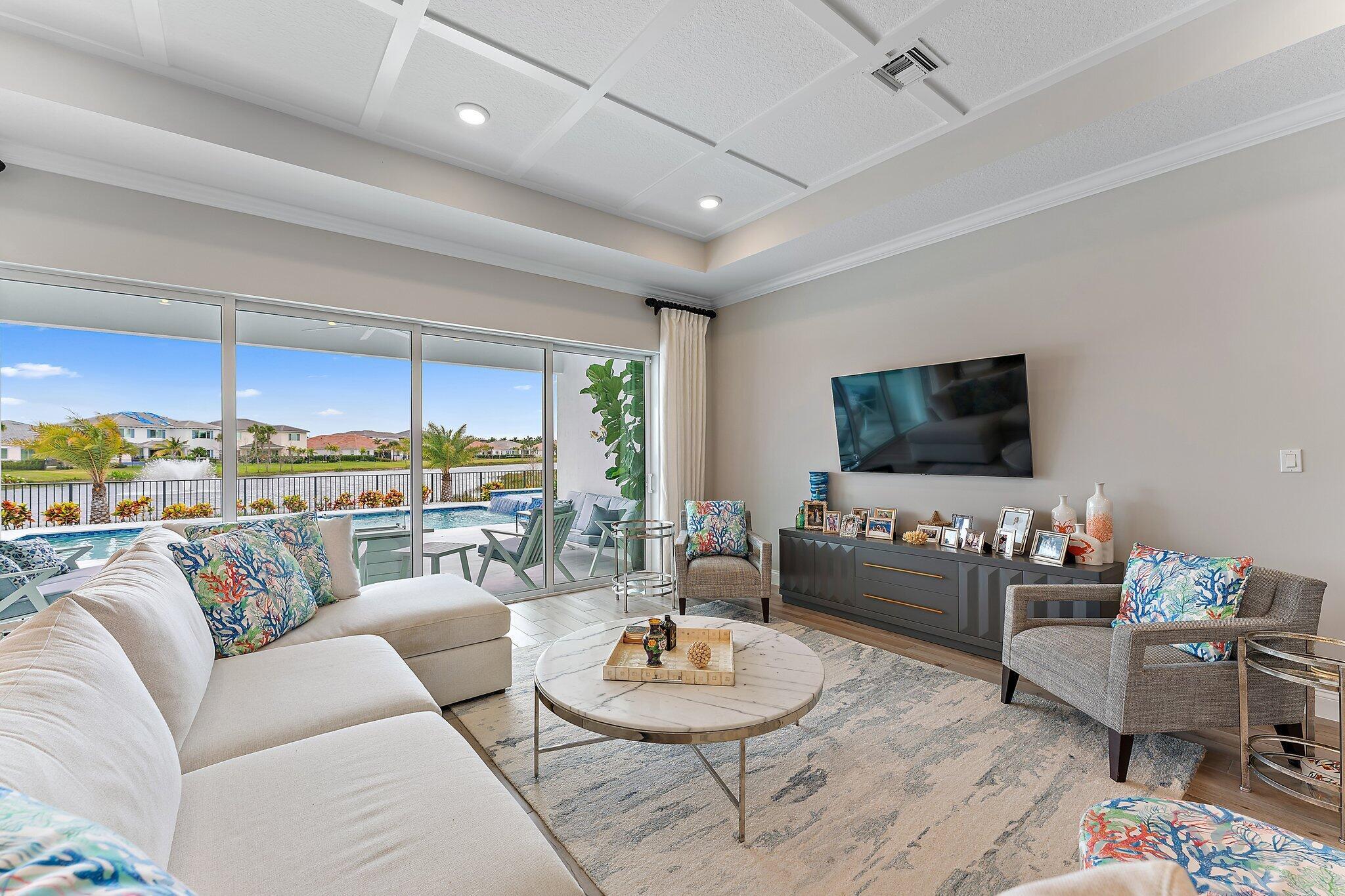 Enjoy stunning wide lake views from the back yard of this professionally decorated home built by K. Hovnanian Homes in 2023. Avenir is conveniently located near Sand Hill Crane Golf Club, an 18-hole championship course, PBIA, shopping and fine dining. Community amenities include resort-style pools, spa, pickleball, tennis, two fitness rooms, indoor/outdoor lounge, outdoor game area, playground, community club house, and much more.