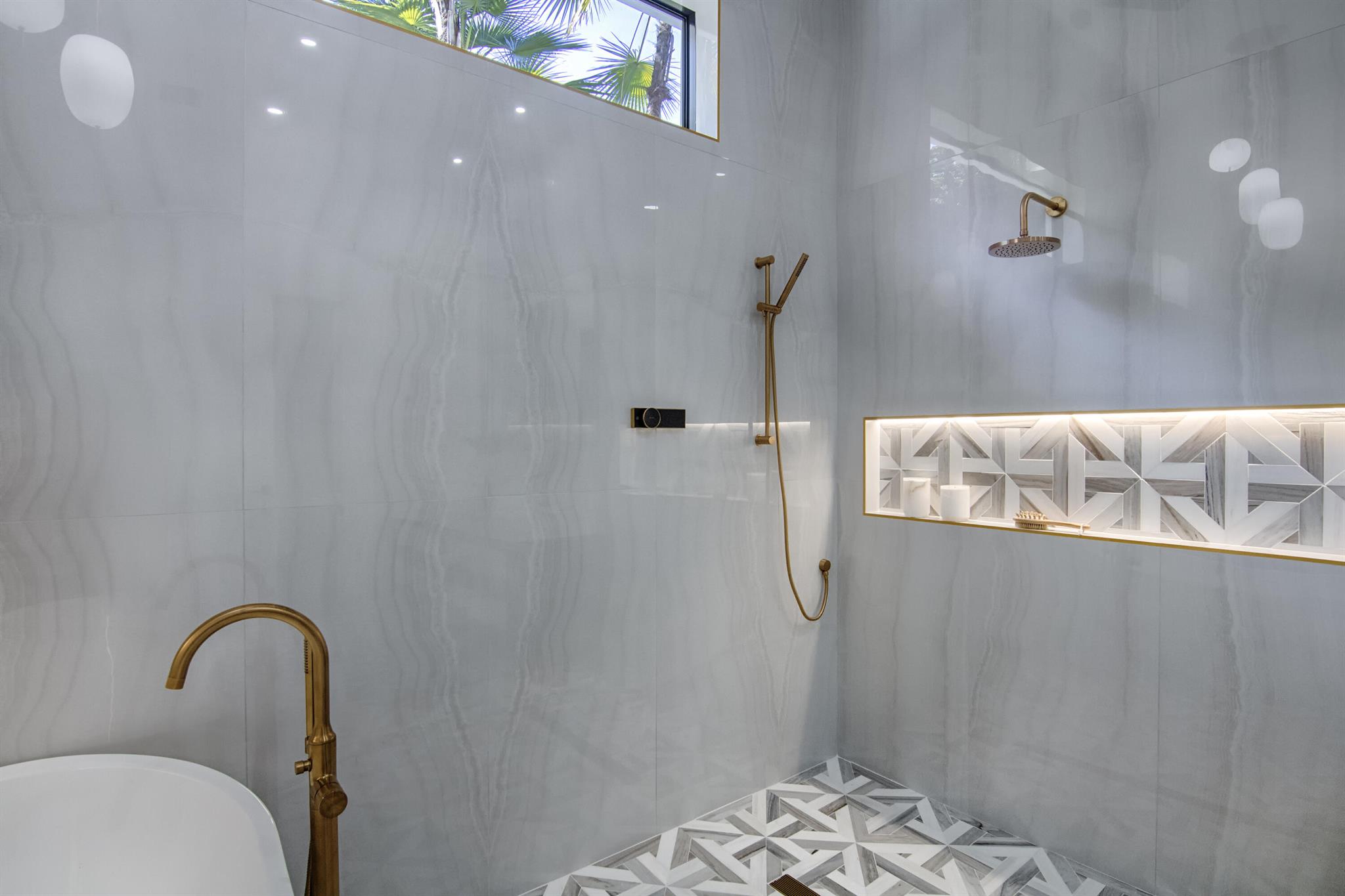 Step into this newly constructed residence that transcends the ordinary, a home where architectural artistry meets effortless livability. Every space has been curated with exquisite attention to detail, blending natural textures, timeless materials, and cutting -edge design. A show -stopping kitchen anchors the home with rich wood finishes, quartz countertops, & floating shelves framed against a soft porcelain back splash. The dramatic island with custom wood inlay invite both gathering and gourmet creation. Integrated professional grade appliances & statement lighting complete this sophisticated culinary space.