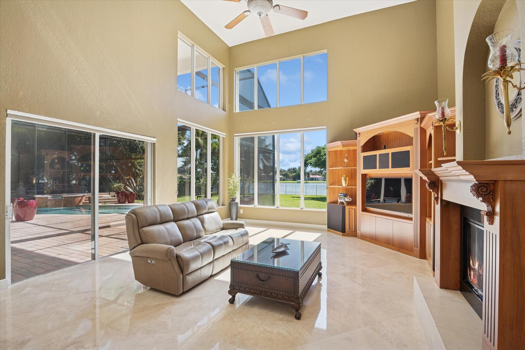Experience breathtaking lake views from this elegantly designed residence offering refined finishes and spacious living. The grand foyer welcomes you with polished marble floors and a sweeping staircase w/custom wrought-iron railings. A sophisticated living area features a cozy fireplace and multiple custom built-ins, flowing into a chef-inspired kitchen beautifully appointed w/premium wood cabinetry and granite countertops. The 1st floor primary suite provides tranquil water views, complemented by a private den/office and an additional guest bedroom. Upstairs, find 3 generous bedrooms, 2 full baths, and a large open loft offering panoramic lake vistas perfect for additional living or work-from-home space. Roof was completed in 2024. Full house generator.