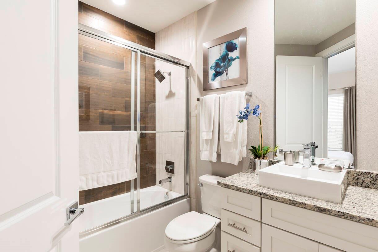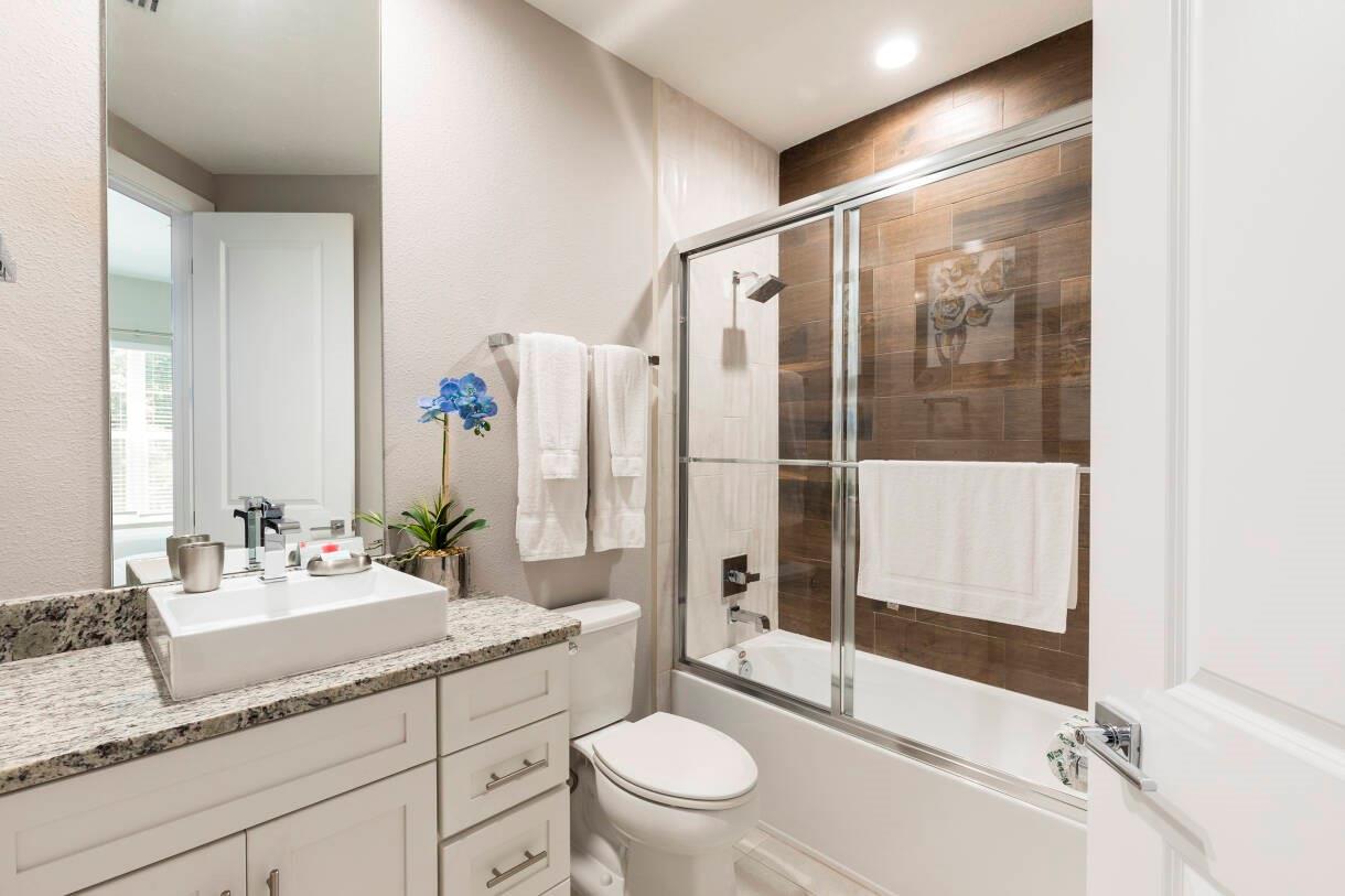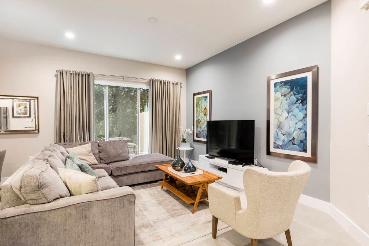 Turnkey 5-bedroom townhome just 10 minutes from Disney! Beautifully furnished and designed for comfort and investment potential. Ready for immediate use as a vacation home, full-time residence, or short-term rental. Features a bright open plan, granite kitchen, stainless-steel appliances, tile floors upstairs, and a private patio with built-in grill—perfect for relaxing or entertaining. Proven rental performer with strong occupancy and potential returns of $60K–$70K annually. Enjoy resort-style amenities including heated pool, fitness center, clubhouse, playground, and 24-hour gated entry. All info and measurements deemed reliable but not guaranteed; buyers to verify.