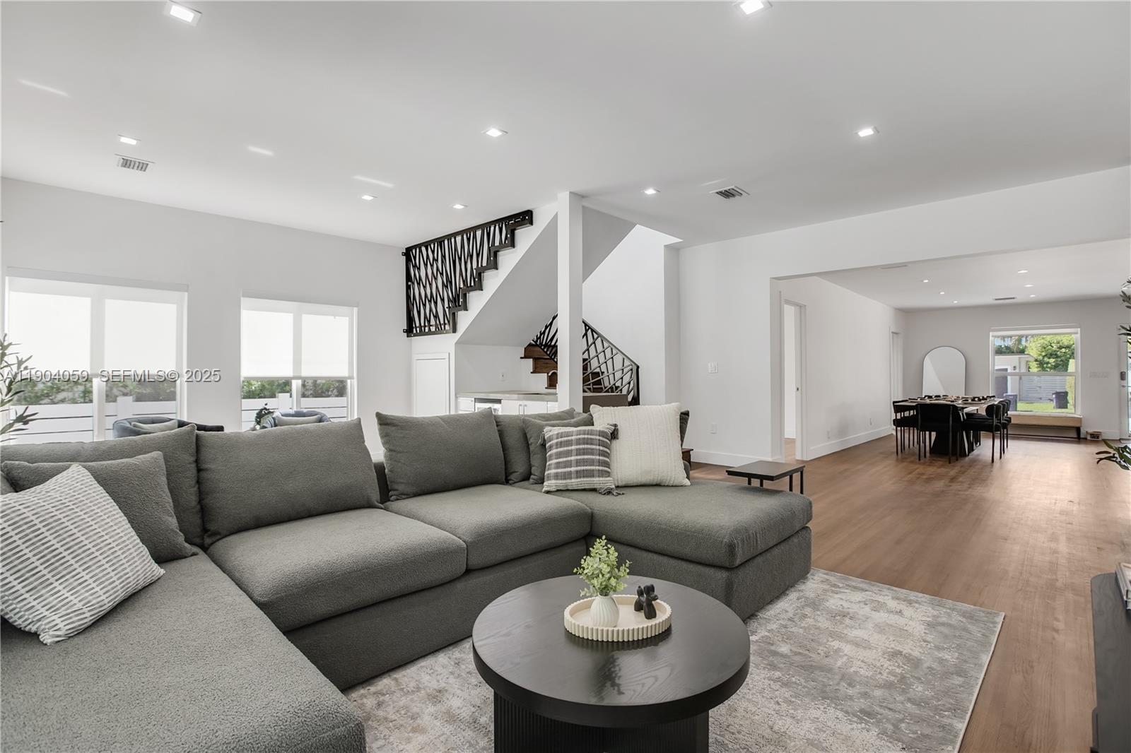 This completely renovated gem offers 5 spacious BR's & 5 Baths across 3,100 SF of luxurious living space. Step inside to find hi-ceilings & wood flrs leading to a chef's kitchen fully equipped w/ Thermador appliances, a gas stove, double ovens, 2 DW's, 2 Sinks and a breakfast bar. The open concept provides an eat-in kitchen and a butler's pantry for ultimate convenience. Relax in the expansive private yard featuring a below-ground pool, perfect for entertaining w/ a built-in barbecue, outdoor kitchen & gas grill. The hurricane impact windows & smart thermostat enhance your comfort. With both eastern and western exposures, enjoy breathtaking sunrises and sunsets. The home boasts energy-efficient features like central AC & heating, ensuring comfort year-round. Don’t miss out!