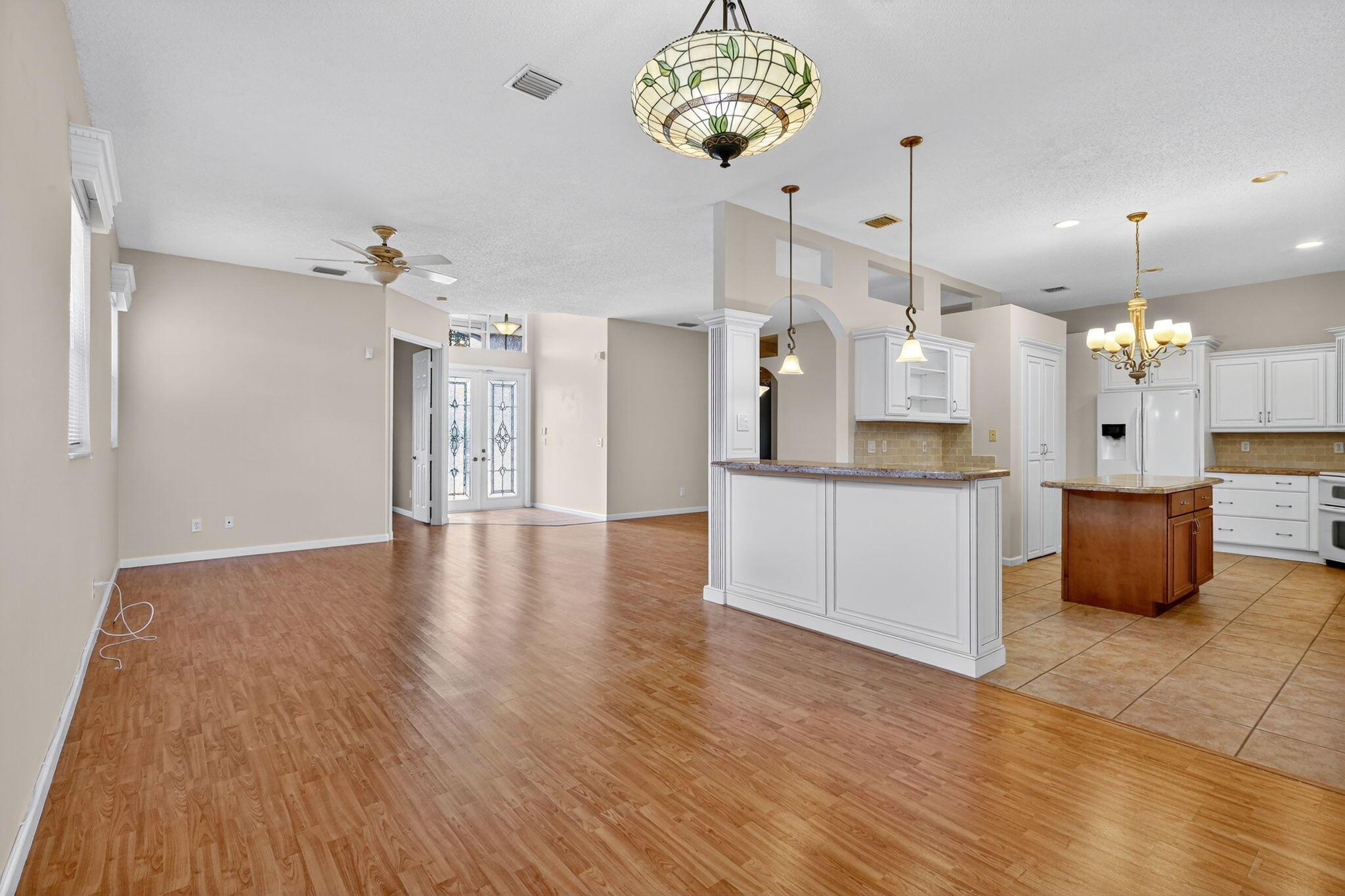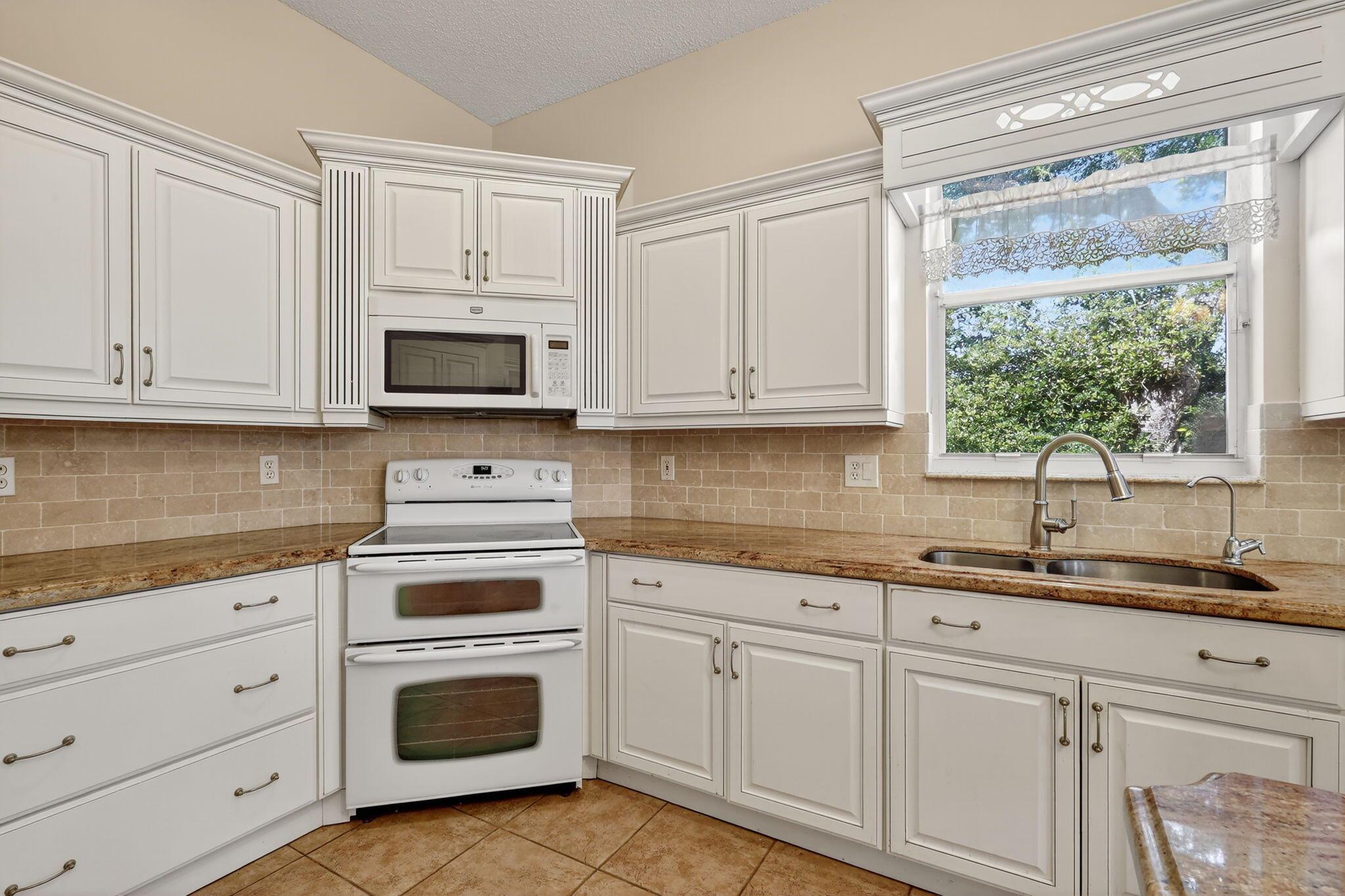 Beautifully maintained home located in a gated 55+ community. Filled with archways & light the interior features include newer baths and a gorgeous country kitchen with an open floor plan upgraded cabinets, granite counter tops, double oven, separate bar area and great storage. In addition to the 2 bedrooms, there's a den just off the living room, which can be used as an office/guest bedroom. There's also a 2 car garage along with a full set of accordian shutters & an interior laundry room. The community amenities inlude a pool, club house, tennis courts and gym. Low HOA monthly fee, that includes cable, lawn service, and security. This exceptional community is convenient to shopping , major roadways, and a short distance to the airport.