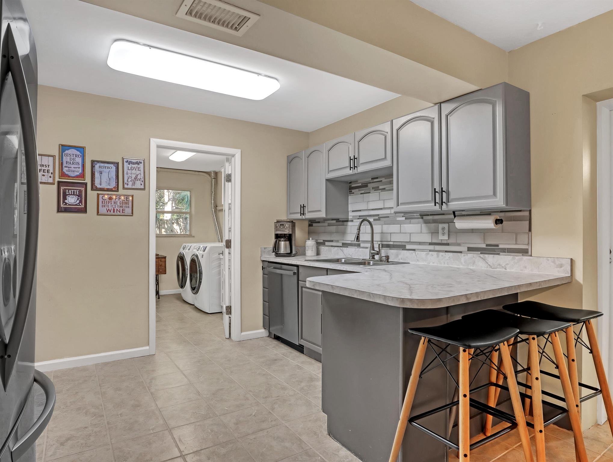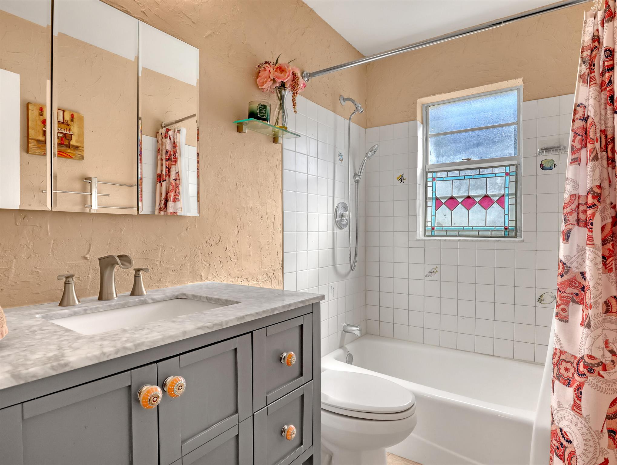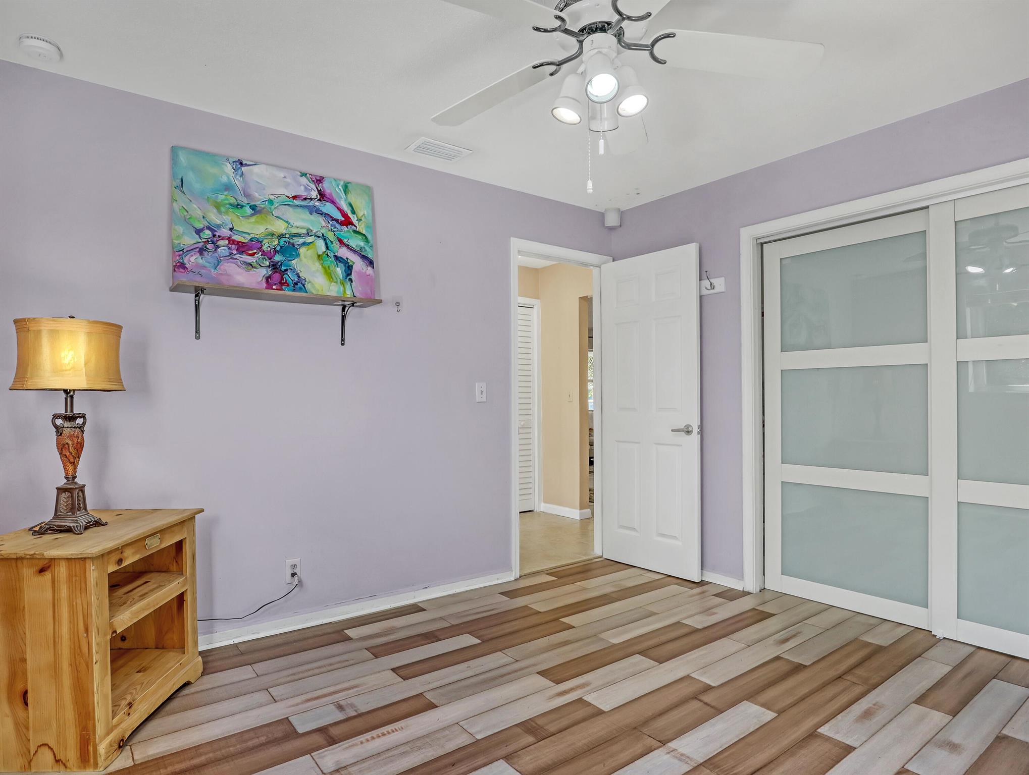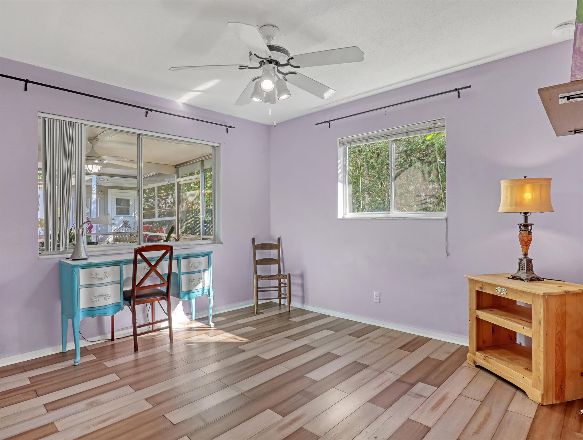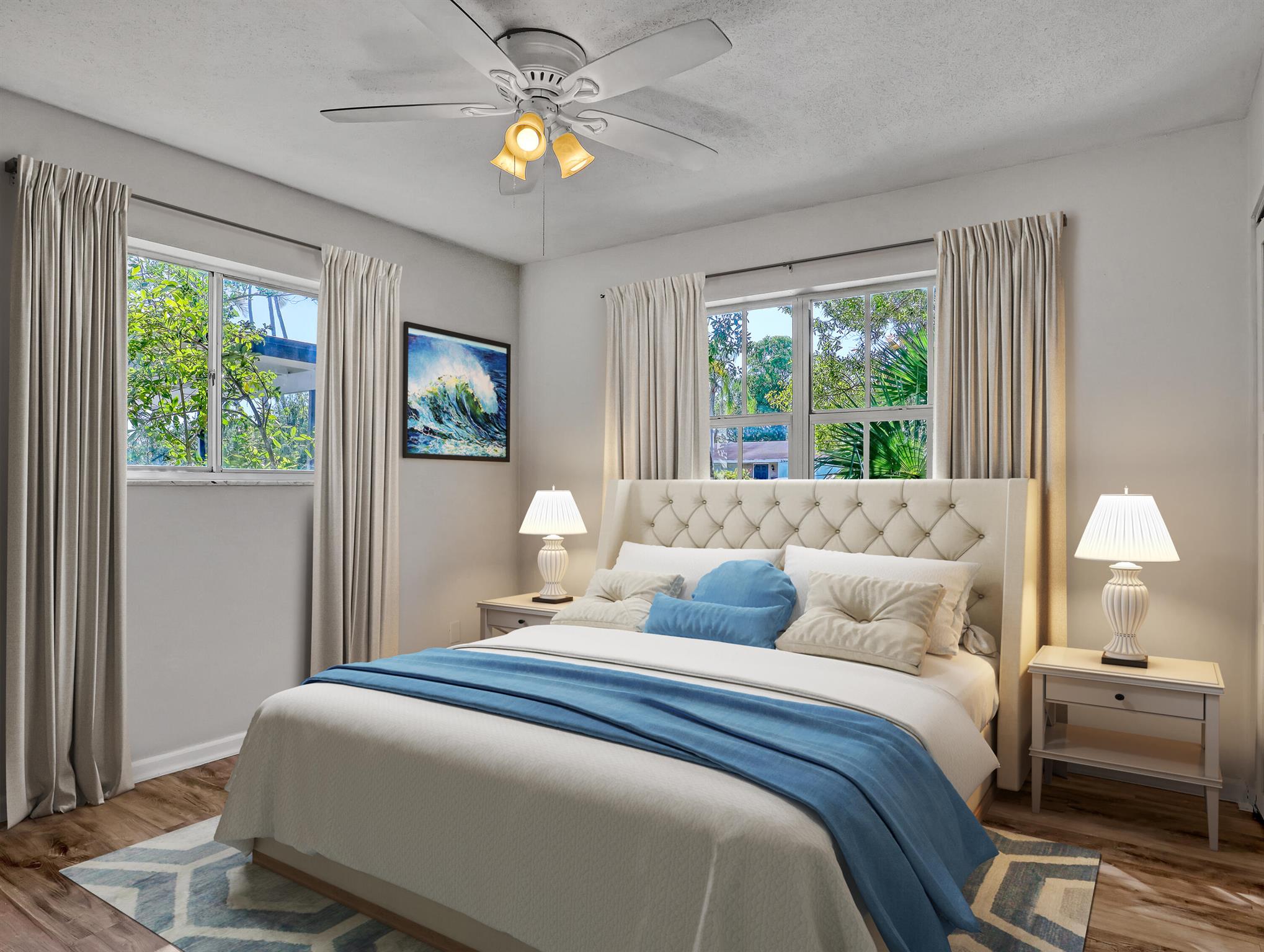 Welcome to Cabana Colony an established neighborhood of SF homes with NO HOA or HOPA. Conveniently located in PB Gardens off Alt A1A close to shopping & beaches.This 3/2 at 1672sq ft living space. New shingle roof ('23) with new low-slope roof over rear addition. New AC handler ('22). Generous LVNG room and family room. Sliders to screened Lanai for outdoor dining to private fenced backyard and seating areas. She-Shed for storage or projects with AC & fans. Attached garage plus covered carport with gate. Tile floors living areas .Ensuite Primary bedroom w full BTR features walk-in closet w/ natural bamboo flooring.Mature landscaping with xeriscape concept. Area for fire pit. Platform overlooking canal. Solar assisted water heater ('22). Supplemental info available