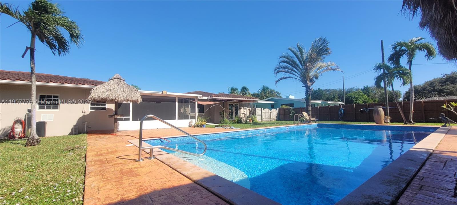Spacious remodeled home in quiet suburban neighborhood just west of Downtown Hollywood. Huge lot with a Tiki, pool, screened patio and storage room. The garage has been partially converted into an additional room with it's own bathroom and entrance. Features a carport for 2 vehicles and a circular driveway that fits plenty of cars. Completely redone kitchen with top tier appliances, granite countertops and custom cabinetry with plenty of storage space. Gorgeous porcelain floors throughout and real wooden floors in all the bedrooms. It has high impact windows and doors, new AC and water heater, new roof and many more details you'll love. A must see!