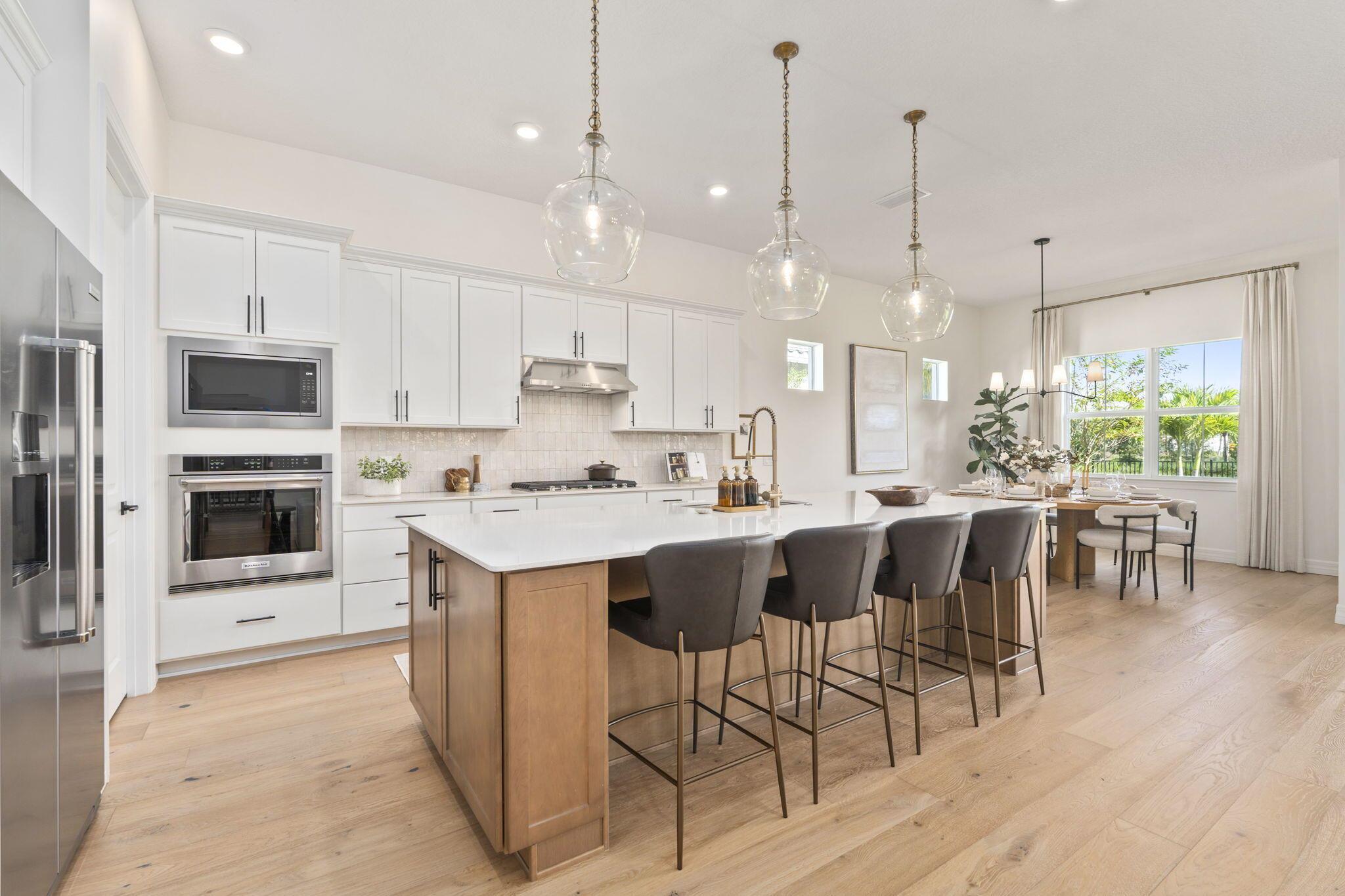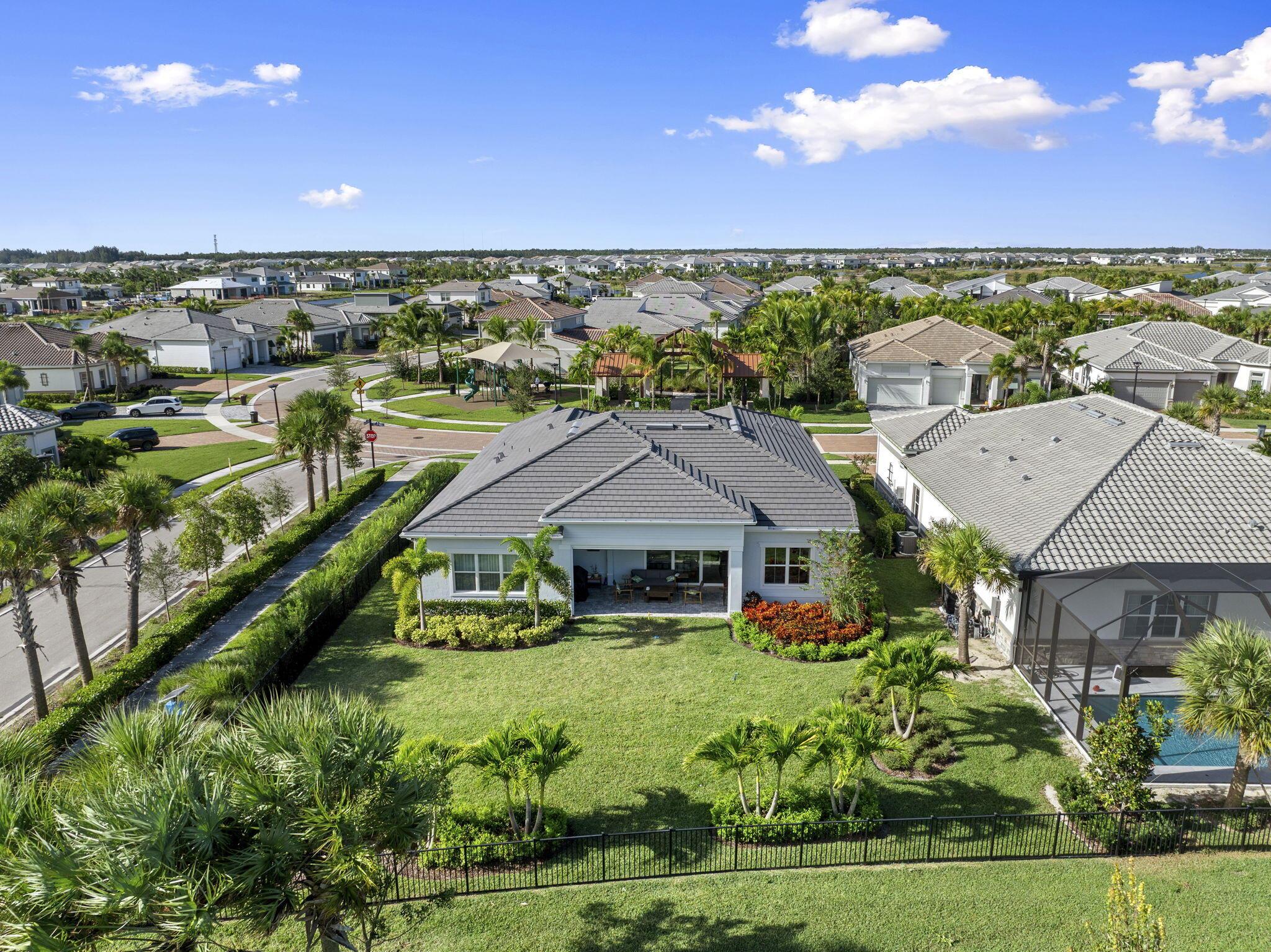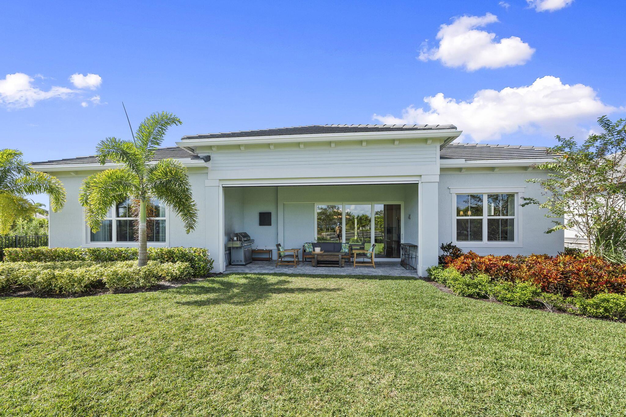 This 2024 newly built residence in Palm Beach Gardens offers the perfect blend of modern luxury and elegant design. Situated on a desirable corner lot with tranquil lake views, this 3 bedroom, 3 bath home with a 3 car garage showcases 2,478 square feet of refined living space. Thoughtfully enhanced by the current owner after completion, upgrades include Zellige tile kitchen backsplash, European white oak engineered hardwood flooring, and 24x24 Brazilian cement tiles in all bathrooms. Additional features include custom closets, designer window treatments, retractable screened patio, and oversized glass French doors leading to the home office. The kitchen is equipped with premium KitchenAid appliances complemented by elegant lighting throughout. Don't miss this opportunity.