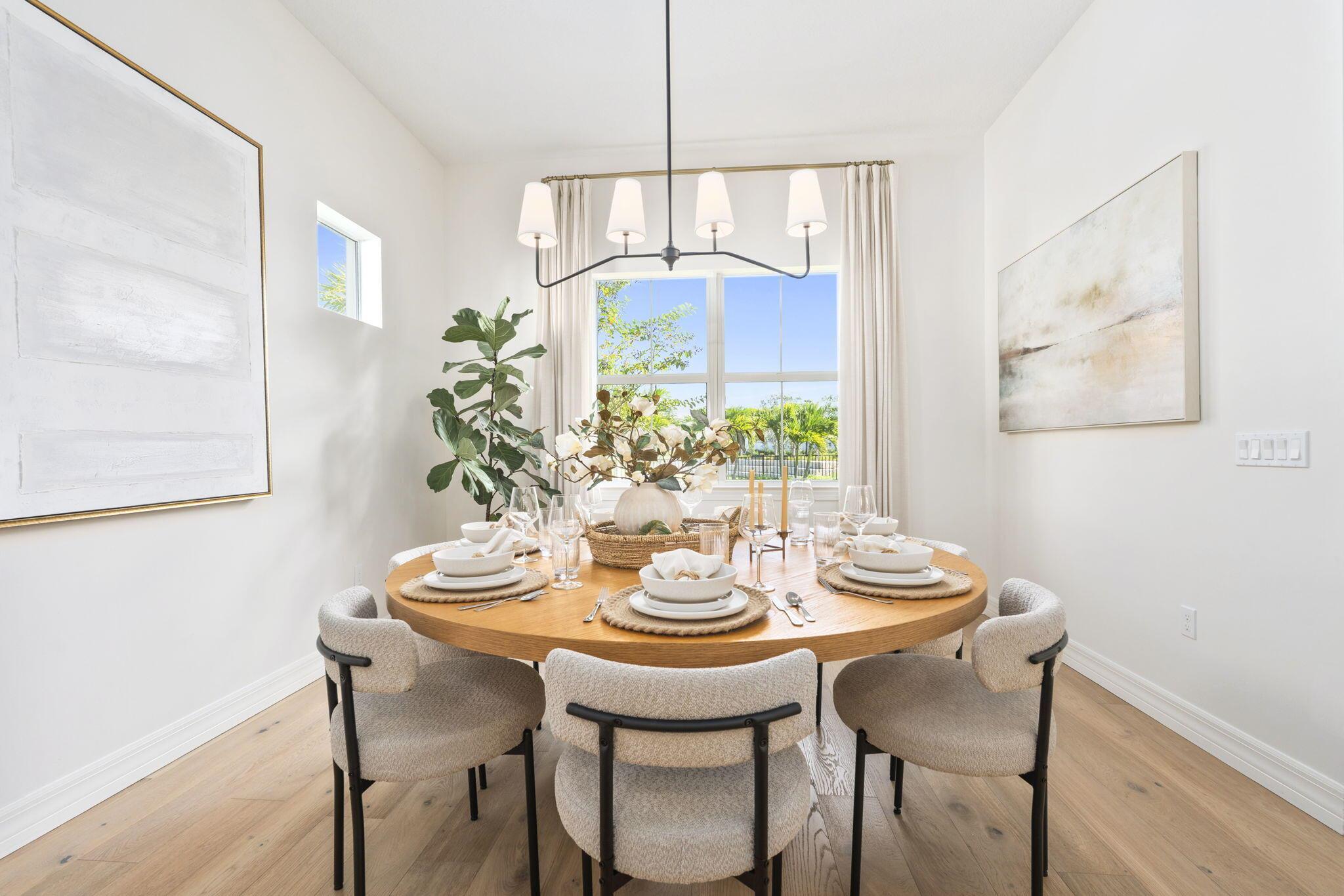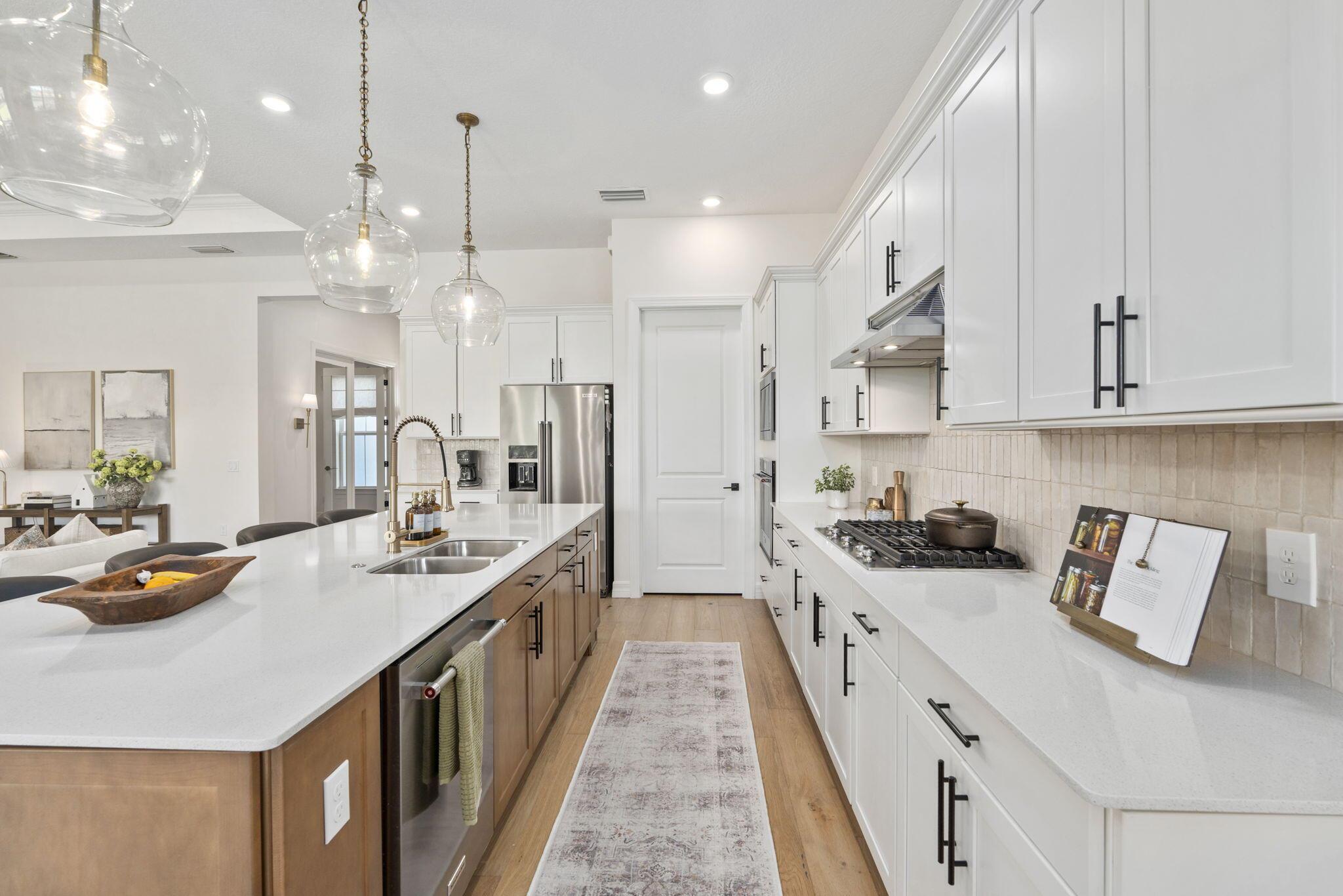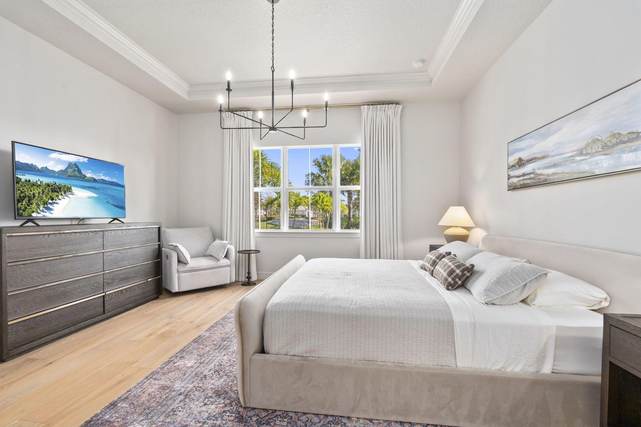 This 2024 newly built residence in Palm Beach Gardens offers the perfect blend of modern luxury and elegant design. Situated on a desirable corner lot with tranquil lake views, this 3 bedroom, 3 bath home with a 3 car garage showcases 2,478 square feet of refined living space. Thoughtfully enhanced by the current owner after completion, upgrades include Zellige tile kitchen backsplash, European white oak engineered hardwood flooring, and 24x24 Brazilian cement tiles in all bathrooms. Additional features include custom closets, designer window treatments, retractable screened patio, and oversized glass French doors leading to the home office. The kitchen is equipped with premium KitchenAid appliances complemented by elegant lighting throughout. Don't miss this opportunity.