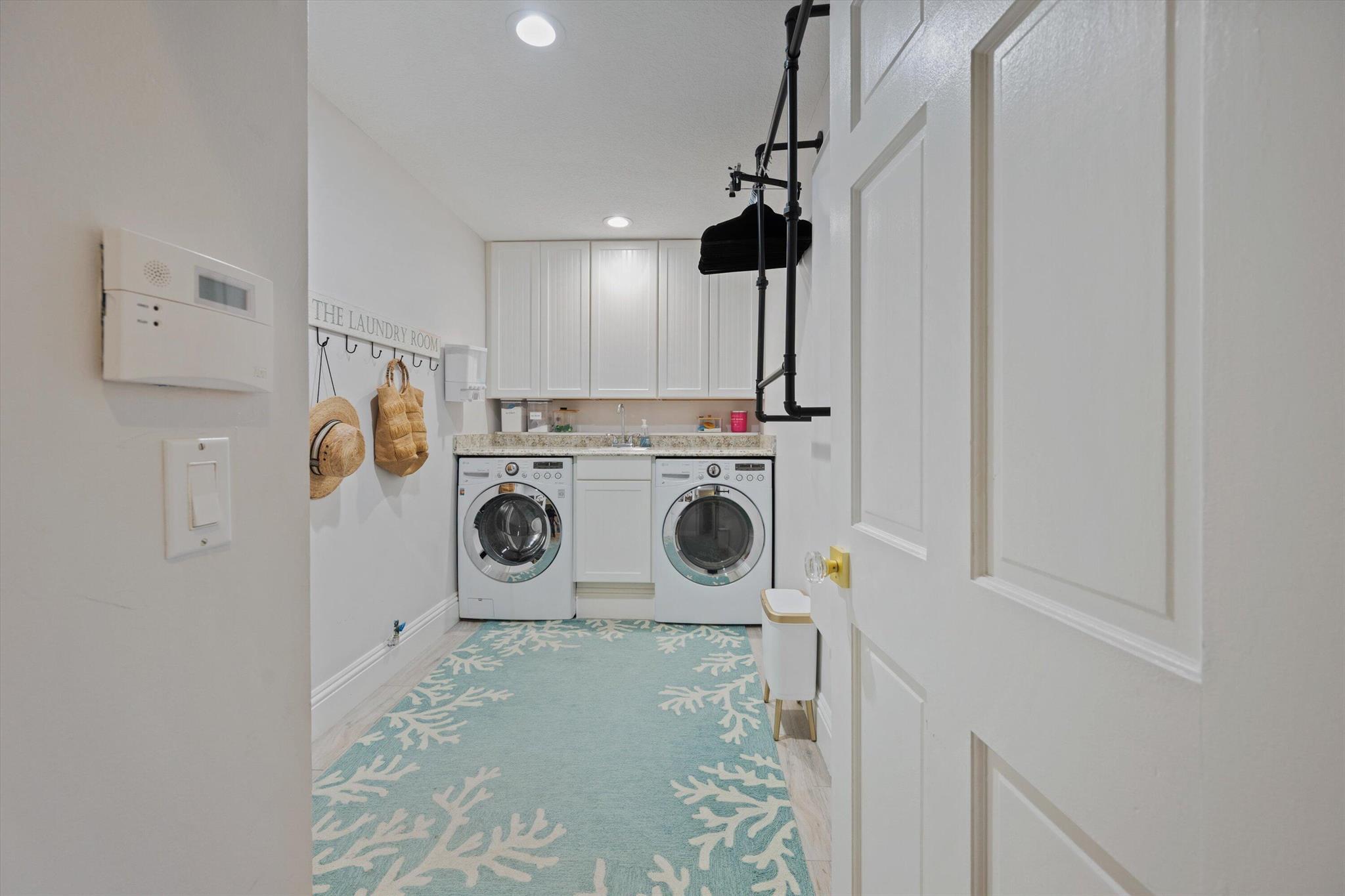 Resort-style living in Heritage Oaks.Located behind the 24-hour manned gates of one of Jupiter's most picturesque neighborhoods, this completely renovated single-story home blends elegant design with relaxed coastal living. Just minutes from the beach and across from the river, the residence features a new double front door, all-new designer lighting, plantation shutters, custom closets, and wide-plank flooring.The kitchen shines with a full-height vent hood, new hardware, and added island outlets. Expansive glass doors retract into the wall, opening to a private , fenced backyard with travertine pool deck, heated pool & spa, upgraded outdoor kitchen, and covered lanai with remote screens. With new landscaping, lighting irrigation, and a tiled roof, this home delivers turnkey luxury.