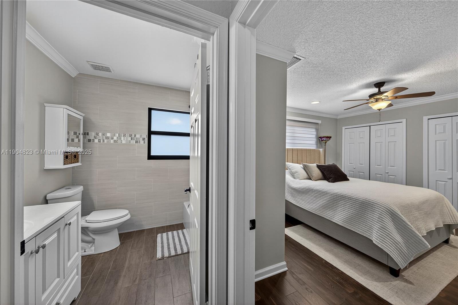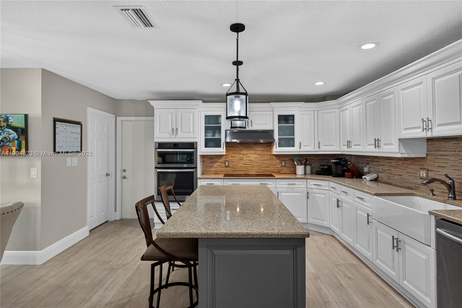 Absolute Gem in the Gated Community of La Joya. Welcome to this beautifully updated home located in the exclusive La Joya gated community, featuring only 67 residences in a highly sought-after area. This stunning property has been meticulously maintained and upgraded throughout, offering modern comfort and exceptional style. Step inside to discover soaring 18 foot ceilngs, brand-new flooring, elegant baseboards, and freshly painted interiors that create a bright and inviting atmosphere. Downstairs large master suite. The redesigned kitchen is a showstopper, complete with custom cabinetry and a thoughtfully organized pantry — perfect for both everyday living and entertaining. Upstairs, the renovated bathroom adds a touch of luxury with contemporary finishes and quality craftsmanship.
