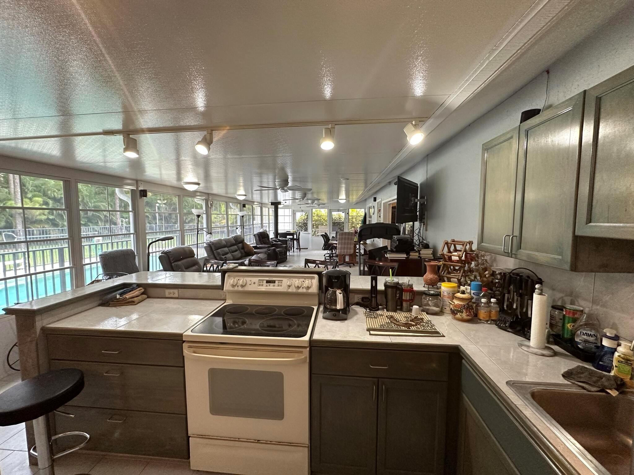 Country Living in the Middle of Everything -Your very own resort!! Over an acre of fully fenced & VERY private property, you will not want to leave! Why would you? Two full kitchens to entertain, two separate living areas for the largest of family gatherings, custom heated (cooled) pool, an entirely separate 1600SF structure perfect for a business facility (or Ultra Man Cave/She Shed, future in-law home or huge storage with plenty of room for RV, boat or antique/exotic cars)! Move right in and enjoy the Florida lifestyle! The property has tons of upgrades, with a perfect floor plan with large rooms, a 700+SF added room (including wood burning stove), tons of cement driveway and you can walk to Grocery/Dining! EZ access to highways and beaches!! A one-of-a-kind Florida Gem ready for you!!