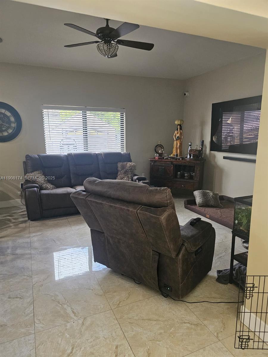This stunning home has been extensively upgraded with high-end finishes throughout! Features include brand new tile flooring, a complete privacy fence, and a freshly resurfaced pool perfect for entertaining. Enjoy peace of mind with full-impact windows, doors, and sliding doors, a whole-house generator, and a newer A/C system. The kitchen and bathrooms have been beautifully remodeled, complemented by new stainless steel appliances. Truly move-in ready—every detail has been thoughtfully updated for modern comfort and style! Embrace South Florida living at its finest with a side yard designed to fit a 30 foot boat and an additional garden area flourishing with guava, mango, and palm trees, the ideal balance of convenience and natural beauty.